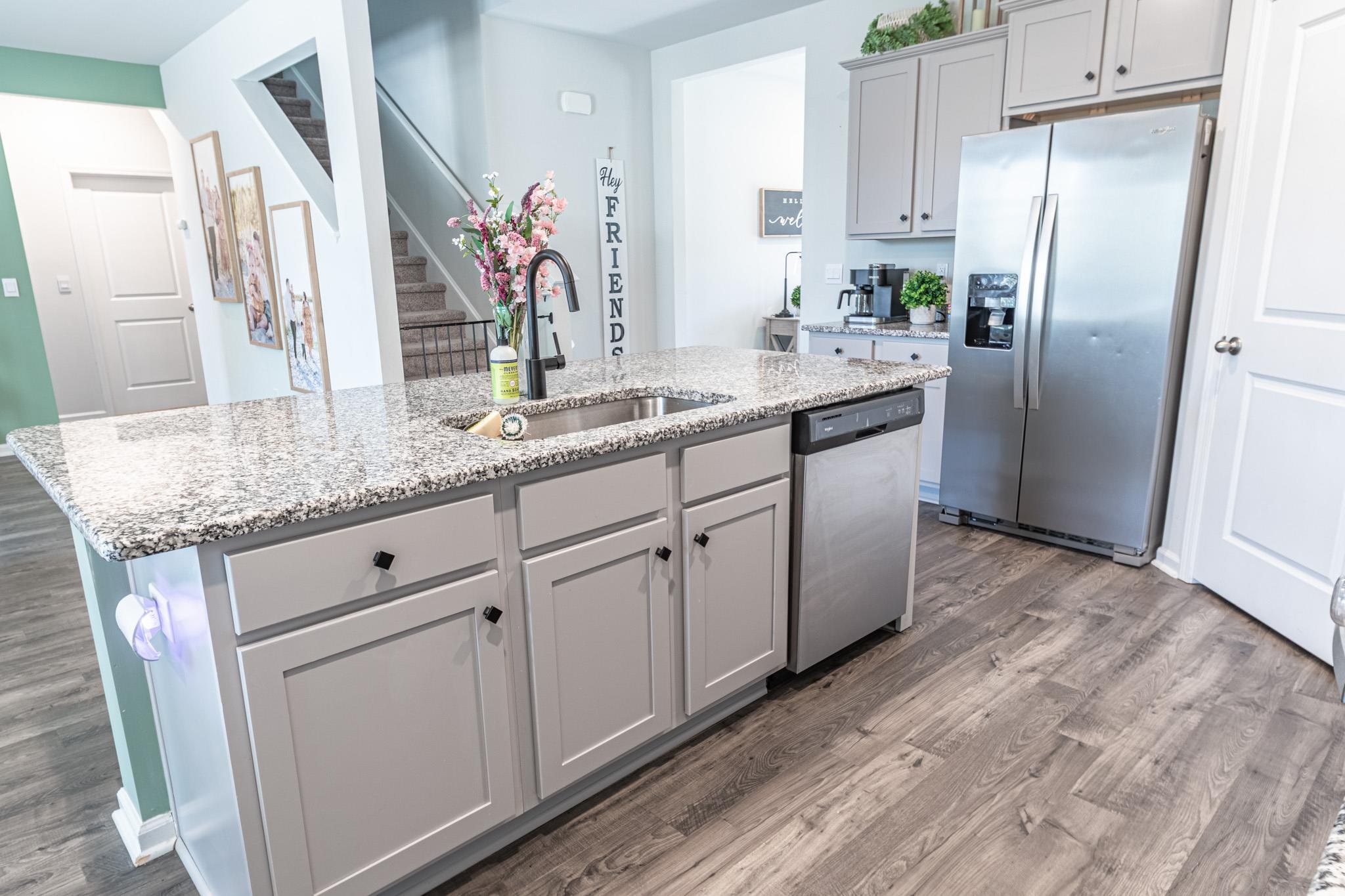 Welcome to The Landing at Astoria Park, offering thoughtfully designed homes in a prime location near International Drive, Highway 31, and Highway 22. The Hayden floor plan provides an expansive and highly functional layout, perfect for modern living. The heart of the home features a massive open-concept great room and a gourmet kitchen equipped with granite countertops, a large island with a breakfast bar, stainless steel appliances with a gas range, and a walk-in corner pantry. Durable wide-plank laminate flooring flows seamlessly through the main level, including the versatile front flex room—ideal for a home office or formal dining. A standout feature of the main floor is the spacious guest bedroom and full bathroom, providing comfort and privacy for visitors. Step outside to enjoy the added privacy and security of a fully fenced-in backyard, perfect for pets, play, or outdoor entertaining. Upstairs, the owner's suite serves as a true retreat with a private en suite bath and two walk-in closets. A versatile loft space, dedicated laundry room, and well-appointed additional bedrooms complete the second level. Combining style, space, and a move-in-ready outdoor space, this home is a must-see. Square footage is approximate; buyers are encouraged to verify.