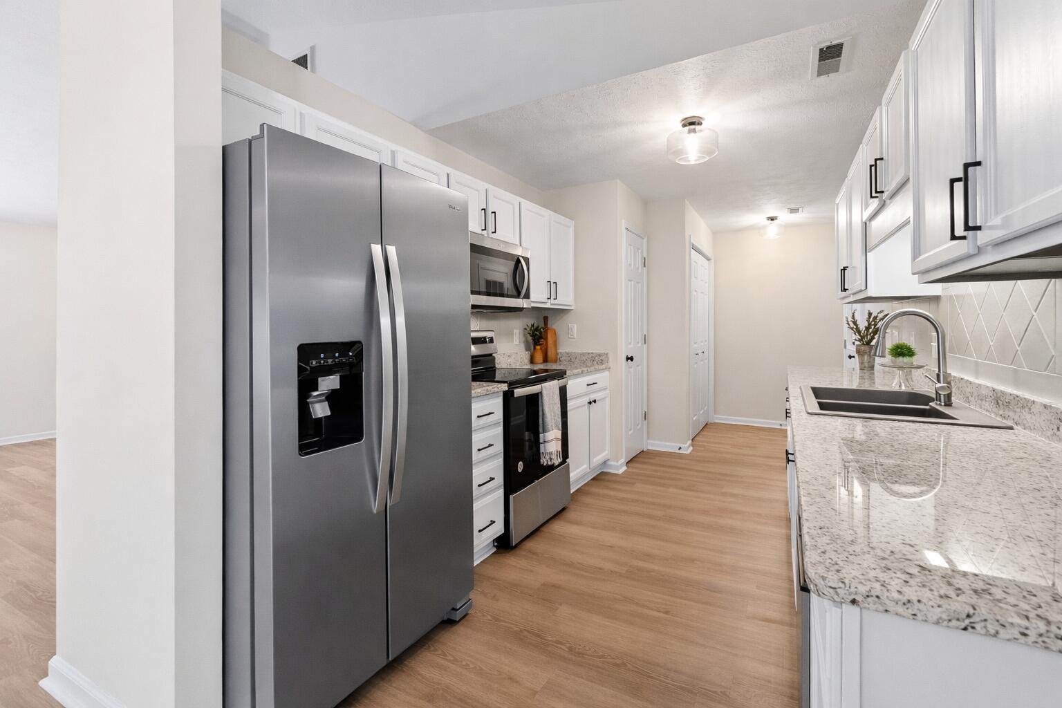 NO HOA! Fully updated and move-in ready 3BR/2BA home located in the established St. Anne’s Oaks community in Conway with major upgrades already completed. Extensive 2023 improvements include luxury vinyl plank flooring throughout, fresh interior paint, baseboards and trim, modern fixtures and ceiling fans, and refreshed bathrooms with new vanities. The kitchen features new stainless steel appliances, refinished cabinets, updated hardware and lighting, and a granite sink. The main living area had vaulted ceilings and an open layout, creating a bright, spacious feel that flows seamlessly into the kitchen. Major systems have been addressed with a new roof (2021) and recent water heater replacement, providing added value and peace of mind. Exterior highlights include new gutters, an extended driveway, and a fully fenced backyard that is flat, usable, and easy to maintain. The screened-in porch extends the living space and is great for relaxing or entertaining. Additional features include an attached garage with freshly painted walls, offering a clean, versatile space suitable for storage, a workshop, or flexible use. Conveniently located just minutes from downtown Conway, Coastal Carolina University, shopping, dining, and medical facilities, and approximately 15 miles to Myrtle Beach. Set in a quiet residential setting with flexible use potential.