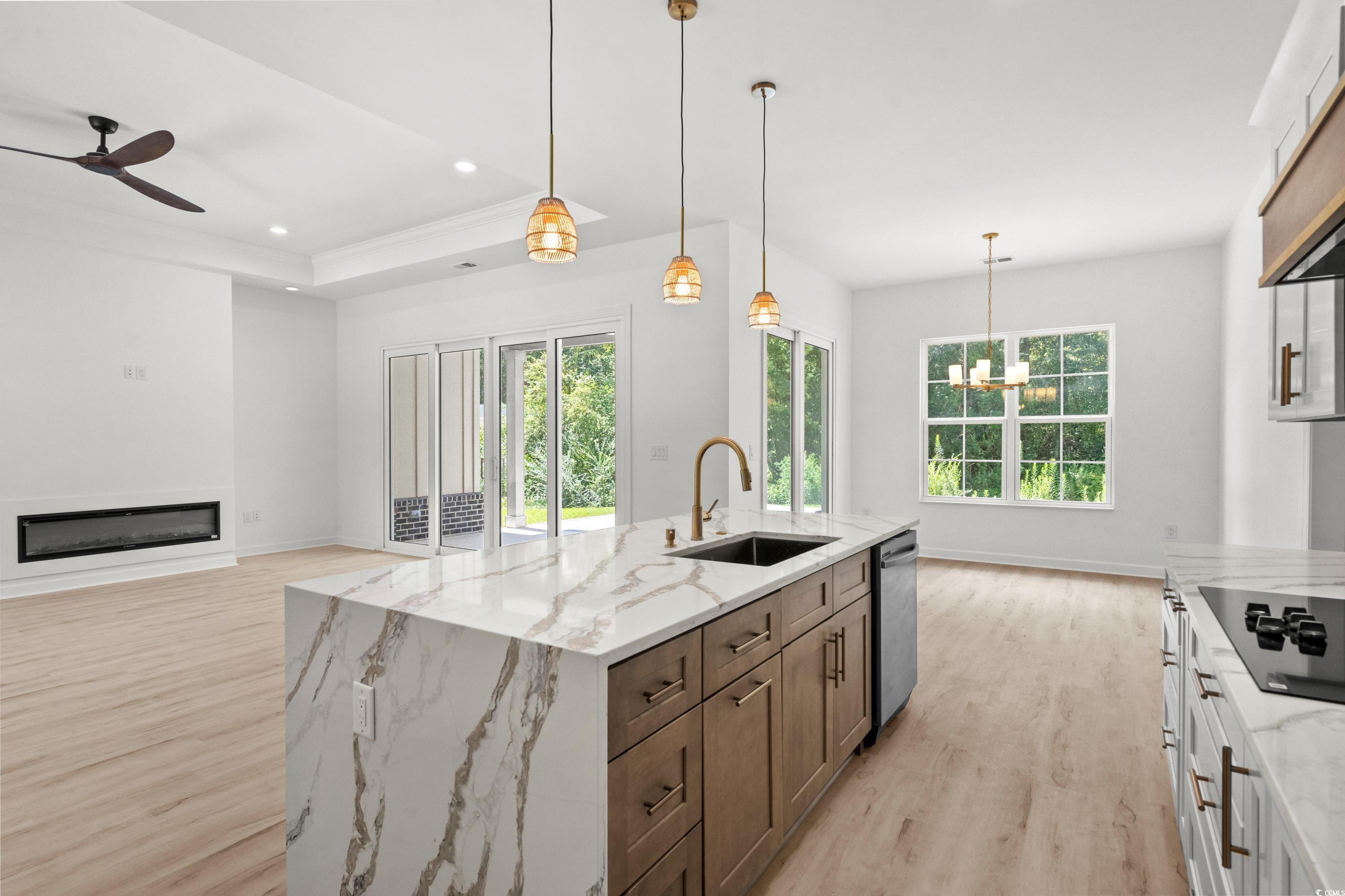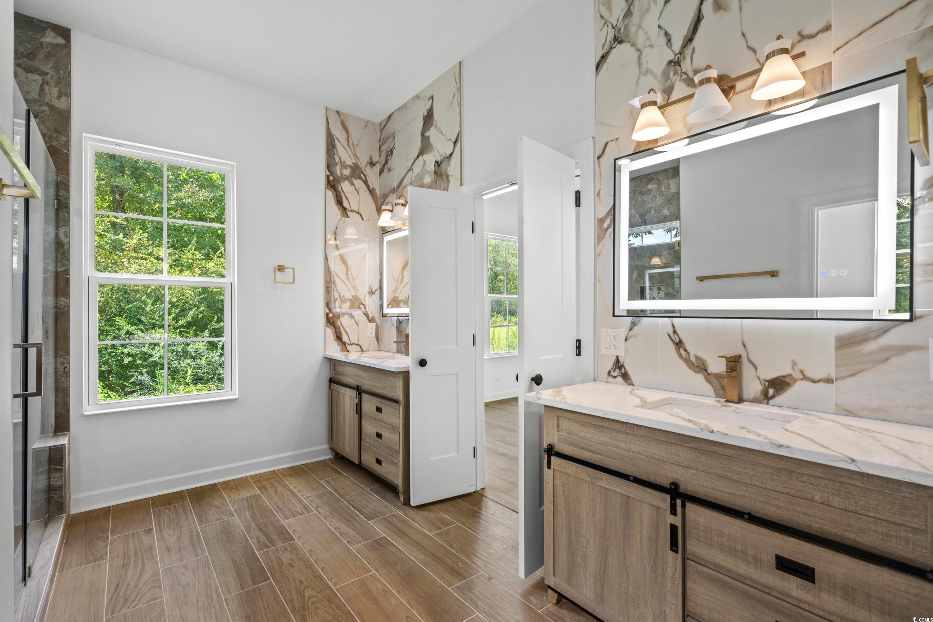 Let me introduce you to this well built new custom home located with no HOA on the generous 0.65 acres lot where not one thing was overlooked while building this beautiful 3 bedrooms 2 bathrooms and office, bright and airy home. The home will greet you with 20' wide round driveway with double entrance for plenty of car access, front porch with 6 glass panel mahogany wood double entrance door. Light oak color luxury vinyl flooring throughout, high 9’3 feet ceilings throughout, a trey ceiling and 4 panel patio sliding door, fireplace makes living room one spacious space to enjoy families special occasions. A spectacular kitchen with all Samsung appliances wall microwave/oven combo unit, 5 burners 36" cooktop, dishwasher, copper under-mount kitchen sink, Level 4 golden lace kitchen countertop with waterfall bar, champagne gold trim plumbing fixtures, KCD wood hood with accent gold laces. One of a kind owners suite with Neptune Gold porcelain stone tile shower backsplash walls, Mix river rock quartzite mosaic shower base and niche shower, Maui Honey floor tile installed in the owners suite and partial shower for wood pattern look, champagne gold trim in shower including but not limited to towel racks and plumbing fixtures, all vanities backlight framed LED mirrors, Calacatta aurous polished porcelain marble look wall tile in vanities backsplash and 2nd bathroom walls, Level 4 golden lace bathroom vanities countertops. Every homeowner would appreciate the structural upgrades this home has to offer: 90 Loads of fill dirt were brought to ensure proper drainage away from home, Sunderslab termite treatment (10 year warranty) and termite bait stations installed for added protection (1 year warranty) per Terminix, all exterior black mountain queen size brick by triangle brick, all exterior hardie siding board and batten style with hardie shake siding installed on gables, 20 year Onyx owens corning asphalt shingles, Artic Belgard Cambridge Cobble patio pavers outdoor grill area, 80% interior partition walls insulation with R13 insulation for soundproofing, all ceiling insulated with R38 insulation, 8 sectors landscape irrigation system, commercial grade masonry anchoring system (Homman and Bernand Quality products). Do not wait to call this home your where country living at it’s finest. Virtually staged photos.