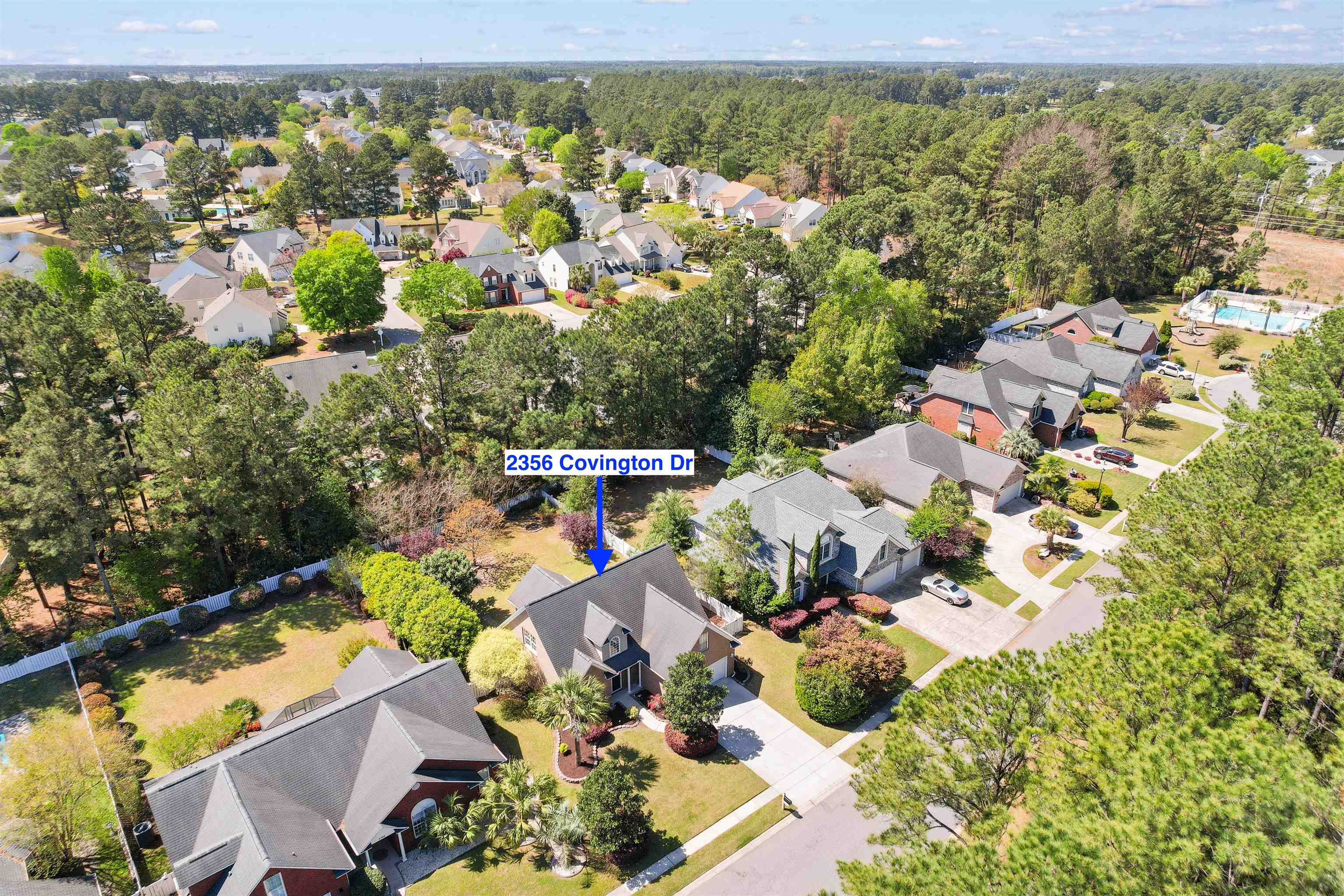 This 4 bedroom, 2.5 bathroom all-brick home offers great potential and is ready for updates and improvements. Tucked away in the back section of the neighborhood, the home sits across from protected wetlands, providing added privacy with no house directly in front, and is within close proximity to the community pool and playground. The exterior features a fenced backyard, established landscaping, and multiple patio areas for outdoor enjoyment. In addition to the two-car garage, there is an attached storage or workshop space at the rear of the home with electricity and a garage door, large enough to accommodate a golf cart or extra equipment. Inside, the layout includes a first-floor primary suite with a private ensuite bathroom. A half bath is also located on the main level for guests. Upstairs, you’ll find three additional bedrooms, including the fourth bedroom located over the garage, and a full bathroom. The main level offers a formal dining room or flexible space off the foyer, a living room with vaulted ceilings, and a kitchen with ample cabinet storage and an adjoining breakfast nook. A laundry room with direct access to the garage adds everyday convenience. Enjoy a great location in Covington Lake in Carolina Forest, close to shopping, dining, schools, and just a short drive to area beaches and attractions. Being sold as is, it’s a great opportunity to make it your own. An excellent opportunity for updates and added value!