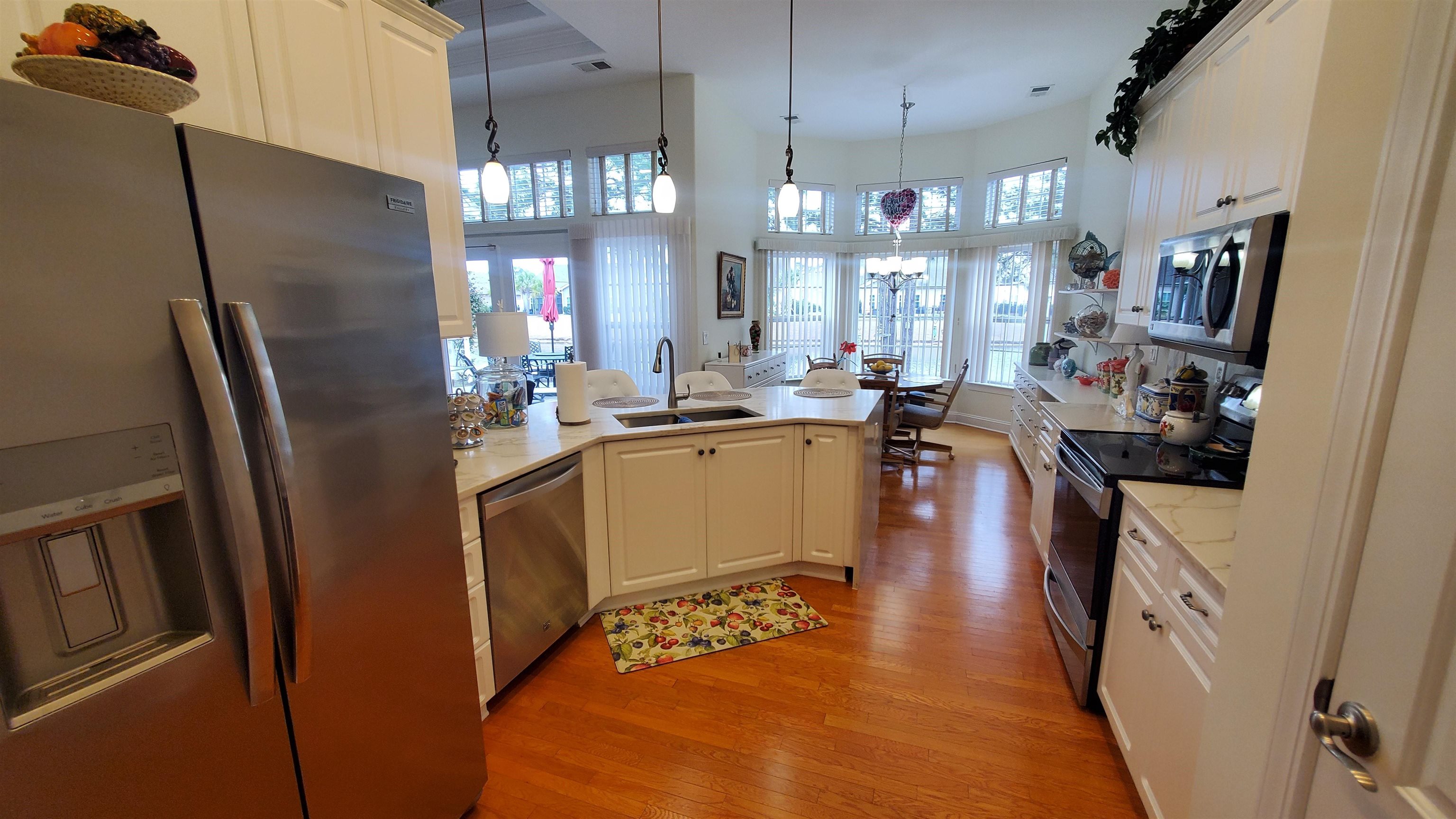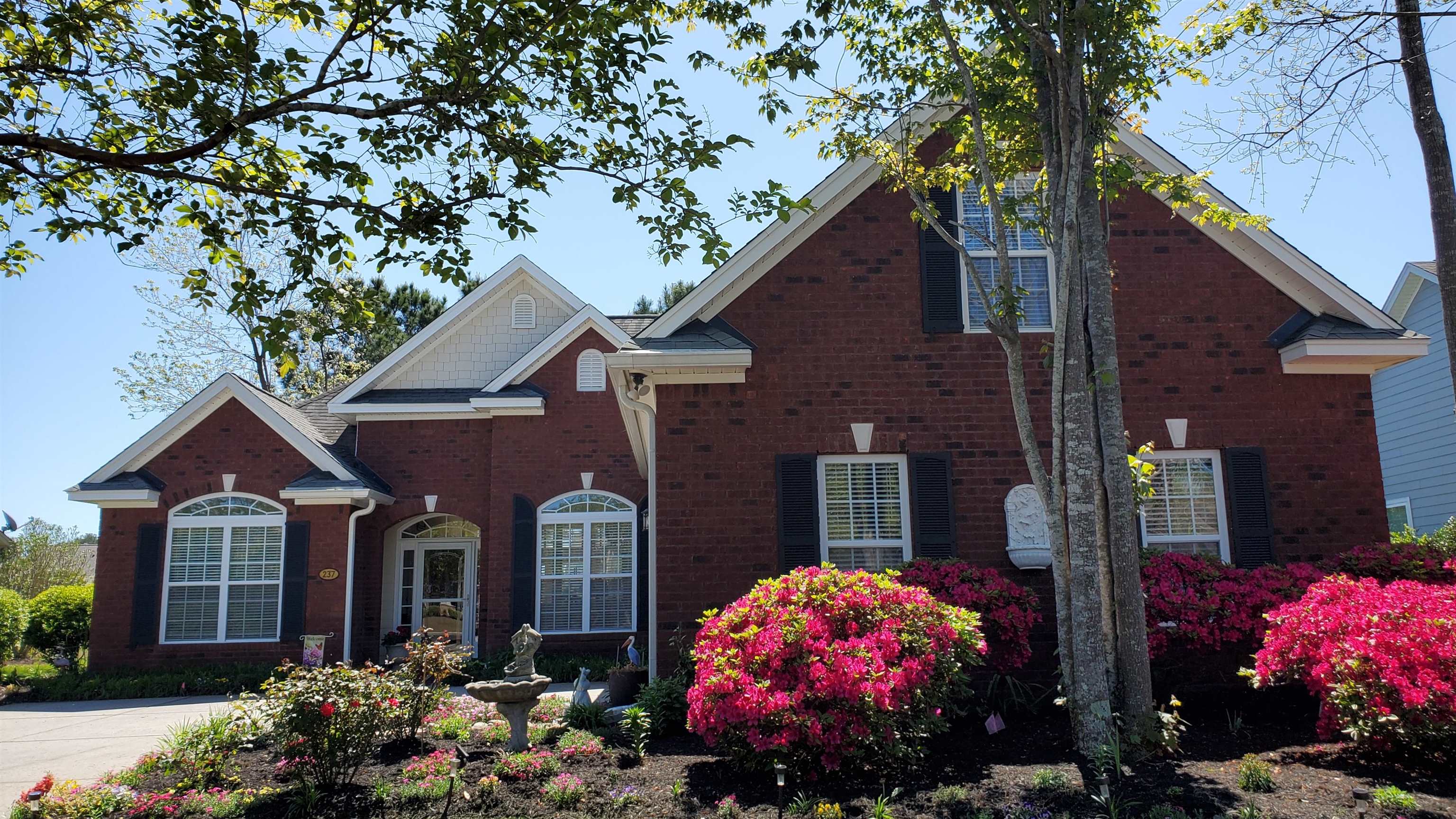 Beautifully landscaped & fountain-lined entrance leads to the gated Saint David's section of Windsor Plantation. This brick front 3BR/3Bath home has it all! Fresh Paint inside & out, Pond view & numerous perennial garden landscaped areas thru-out property. Upgrades thru-out this lovely home include French Doors, Transom, Side-Light & Eyebrow-Arch windows, Cathedral & Presidential Tray ceilings, columns, bullnose corners and extended square footage of climate-controlled Garage, Bonus Room & Kitchen Breakfast Room w/Bay Window. Upgraded Lighting fixtures, ceiling fans, Hardwood flooring, tile & carpet. Kitchen countertops & backsplash have recently been upgraded to Quartz. In addition to the Breakfast Room there is a breakfast bar, pantry & Stainless-Steel appliances. Formal DR with columns & elegant LR, both have 12'ceilings with double trays. French Door from LR leads to custom designed patio overlooking the pond. Primary BR suite with sitting area has Presidential tray ceiling & full Bath with vanity & double sinks and has floor to ceiling tiled Shower with Bench Seat and a large walk-in closet. This split floor plan offers privacy for guests with the 2nd BR & full Bath with additional linen/closet storage in hallway. Just off entry is the 3rd BR/Office with French Doors & Cathedral Ceiling. Upstairs is the extended Bonus Room & the 3rd full bath with floor to ceiling tile shower with bench seat. Long driveway allows space for multiple vehicles with courtyard entry to heated/cooled garage. Home warranty offered. Across the street is the Community Amenity Center Clubhouse with Fitness room, Kitchen, gathering room w/FP, 3 season Porch, Saltwater Pool, Spa Hot Tub & shallow pool with shade water feature as well as a bath house. Windsor Plantation is a natural gas community and close to major roads, golf and entertainment, shopping, restaurants and the beach!