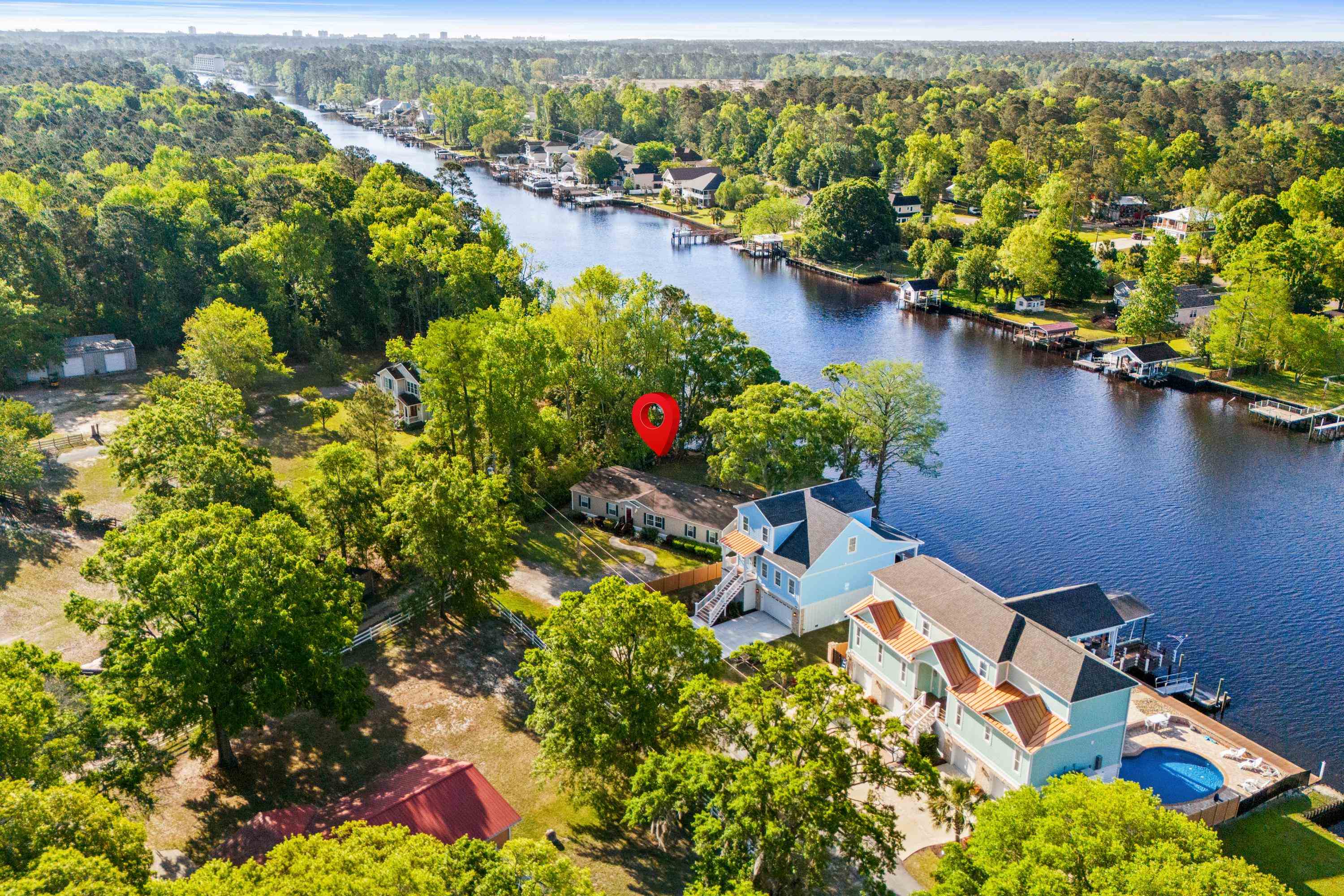Location, Location, Location!! Superior views of the Intracoastal Waterway and no HOA fees!! This is a rare opportunity to own this one of a kind property located directly on the ICW with a. dock as well as a jet ski ramp. This 4 bedroom, 2 bath home sits on a large elevated lot and has many new features & upgrades throughout including a new HVAC unit in 2023. This is an entertainers dream home with so much to offer - fishing, boating, swaying in the hammocks, sitting around the fire pit toasting marshmallows as you enjoy the beautiful sunsets. Relax on the oversized deck watching the boats go by while drinking your morning coffee or evening cocktail. During certain times of the day you can even see Bubbles, the famous Tiger King elephant, splashing around in the water across the ICW. Enjoy soaking in your saltwater spa or preparing dinner on your smoker or grill. This large deck will become your favorite spot to unwind. If you're interested, there is also an approval from the Army Core of Engineers that grants permission to build a home on this site. Whether you're purchasing your full time residence, summer getaway or investment opportunity, this is a property not to miss. Just minutes to all that Grand Strand has to offer including Market Commons, Murrells Inlet, Brookgreen Gardens, Myrtle Beach International Airport, live entertainment, restaurants, golfing, shopping, etc. What are you waiting for' Schedule your showing today!