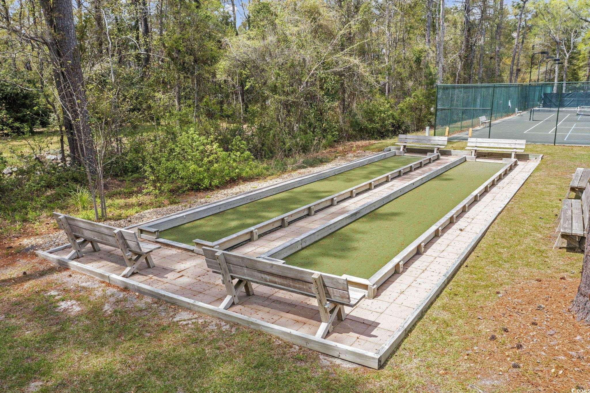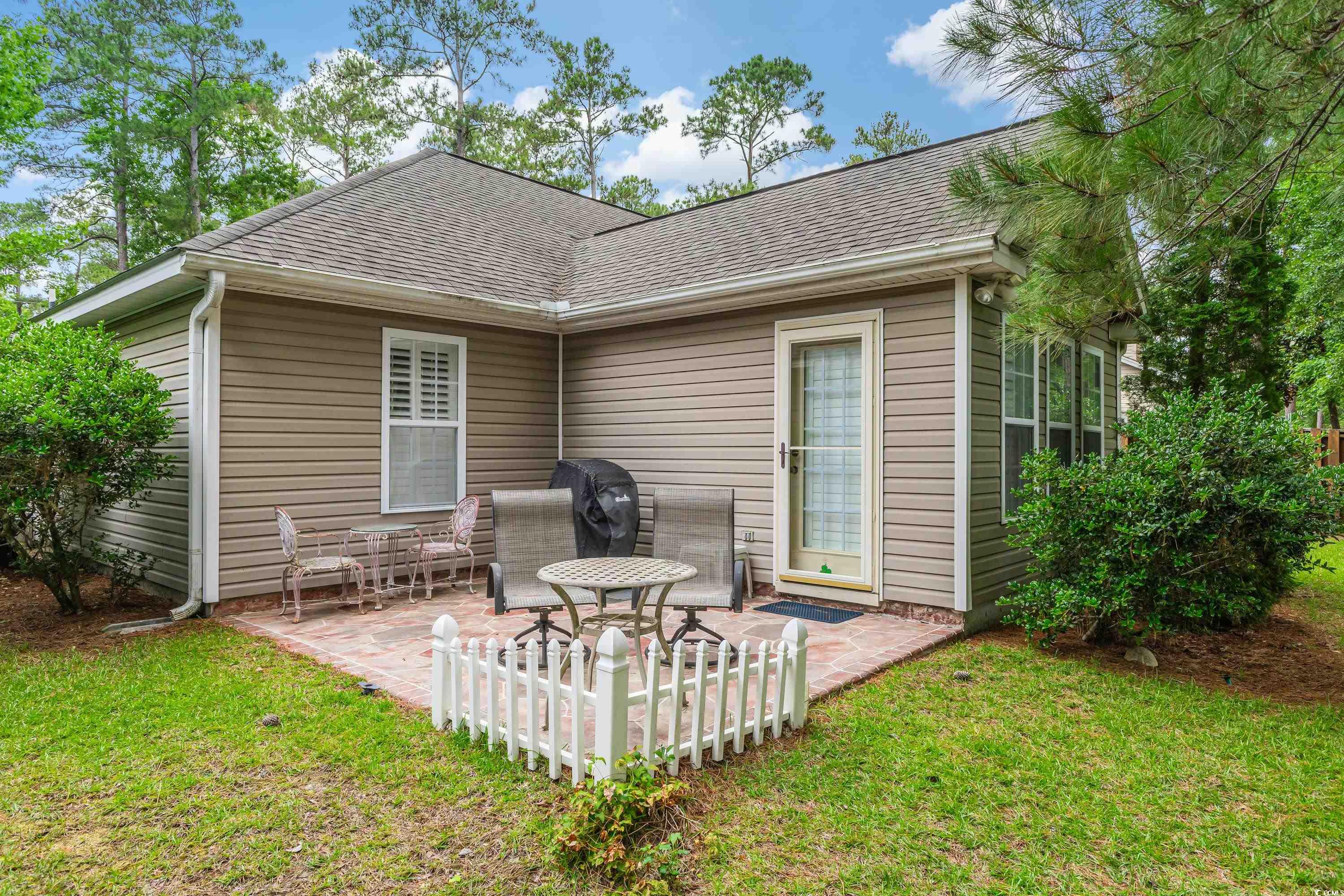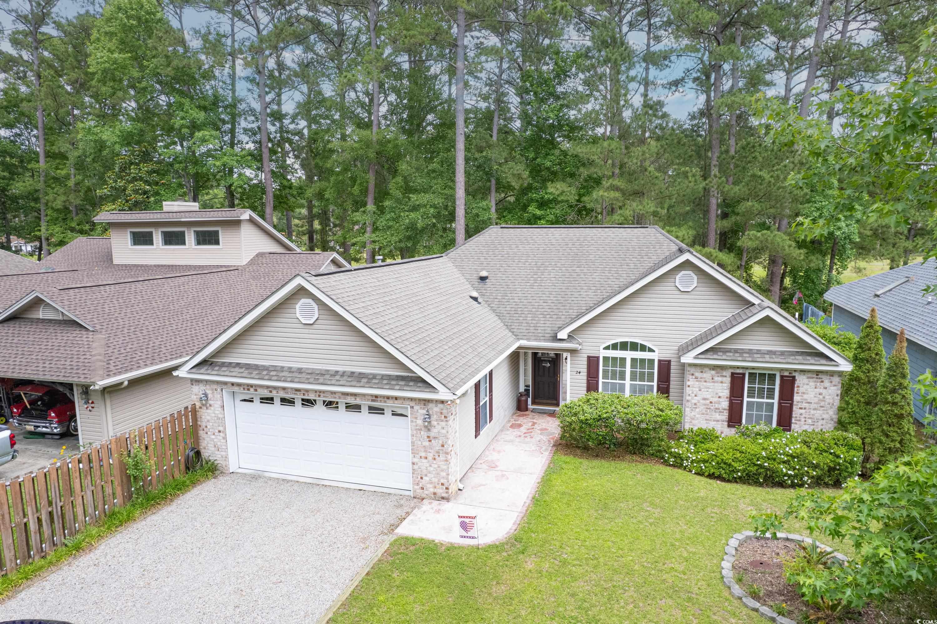 Classic Carolina Shores subdivision split three bedroom floor plan with two full bathrooms, Carolina Room , formal dining room, breakfast nook and two car garage. The living room boasts a vaulted ceiling, gas fireplace and flows into the cozy Carolina Room. The primary bedroom boasts a walk in closet, tray ceiling with a generous master bath with double vanity, whirlpool tub and shower. Comfortable guest bedrooms. The exterior is care free with vinyl siding, brick accent, and a very private patio in the rear of the home. Low POA dues and great proximity to golf, beaches, shopping and all that Myrtle Beach has to offer.