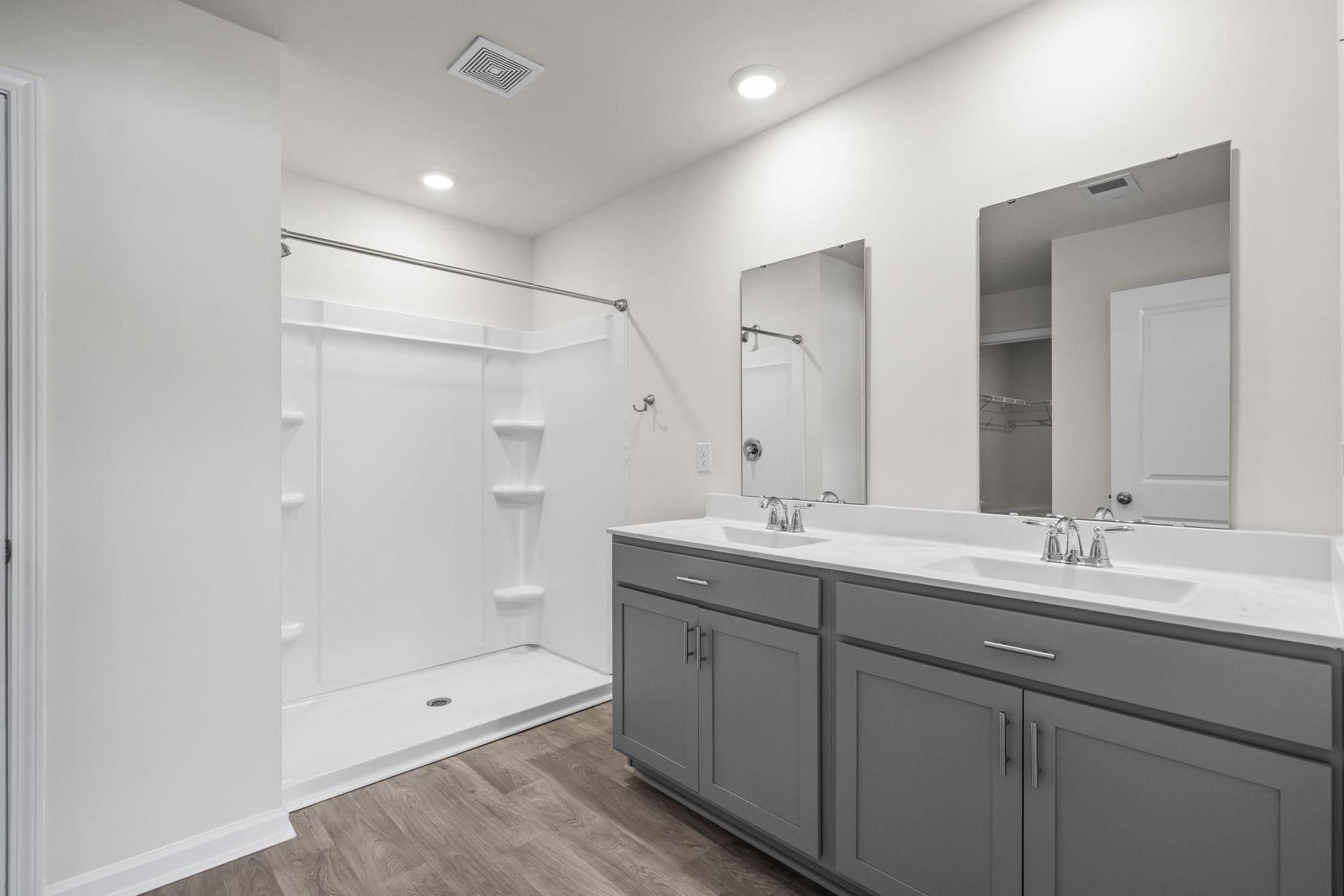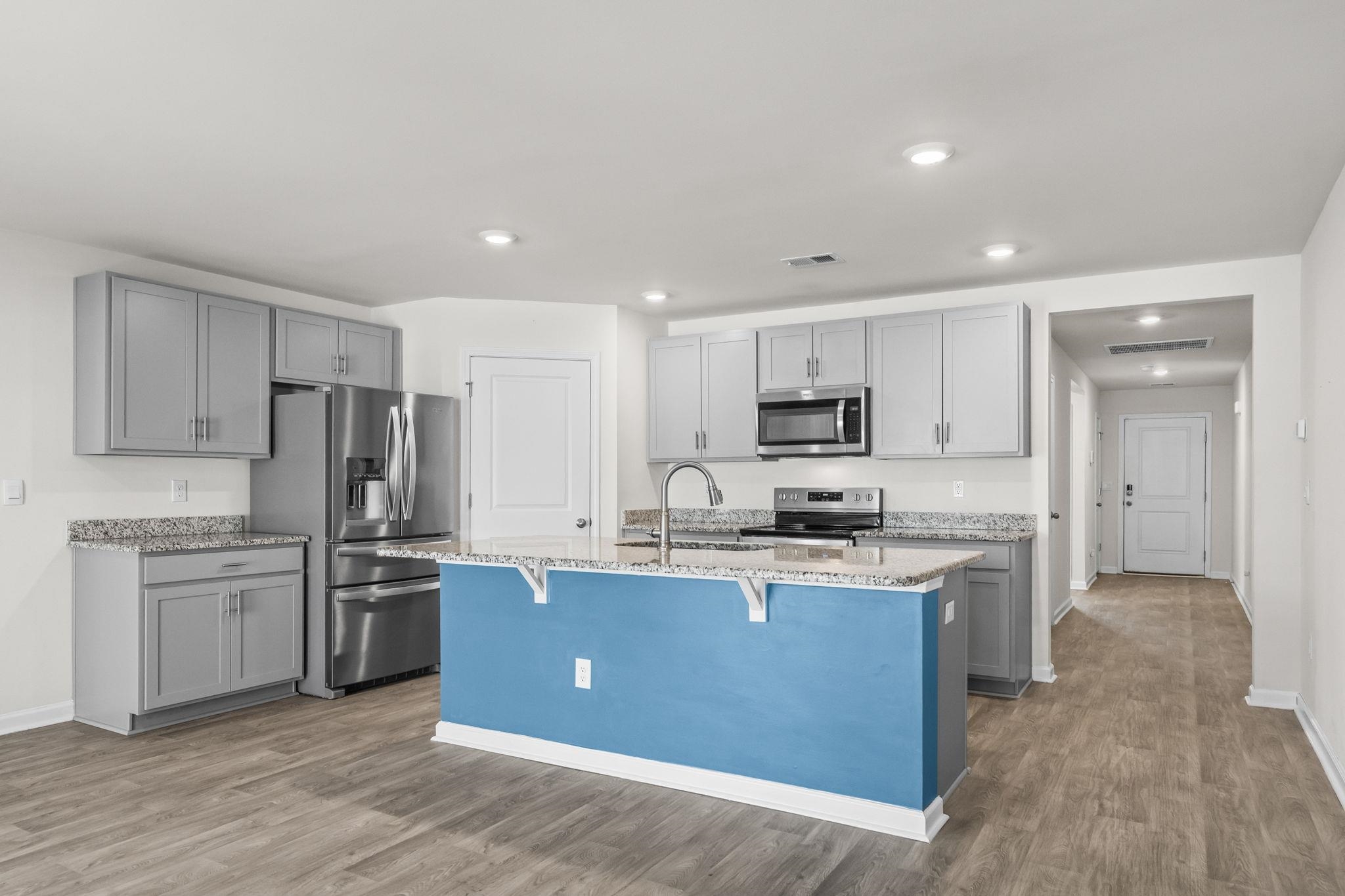 This is a short sale property. Step into the Cali plan, a thoughtfully designed one-level home that blends comfort, style, and convenience. The open-concept living area is perfect for hosting friends or enjoying cozy nights at home, while the kitchen shines with granite countertops, an oversized island ideal for gathering, stainless steel appliances, and a spacious walk-in pantry. The private owner’s suite offers a peaceful retreat with a double vanity and a generous 5' walk-in shower. Start your mornings or unwind in the evenings on the covered rear porch, overlooking a fully fenced backyard with a white vinyl privacy fence and storage shed—perfect for pets, play, or extra storage. This home is smart-home ready, features durable low-maintenance vinyl flooring in the main living areas, plush carpeted bedrooms, and 2" faux wood blinds throughout. A move-in-ready home designed for the way you live today.All measurements and square footage are approximate and not guaranteed. Buyer is responsible for all verification