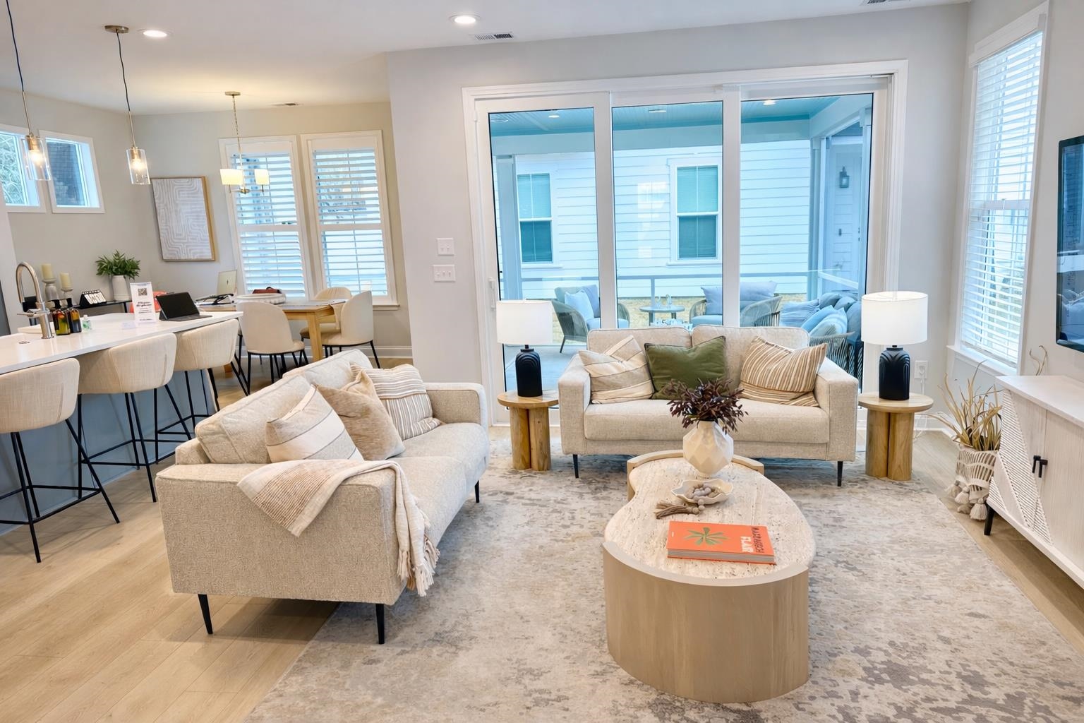 Come enjoy everything Cherry Grove Beach has to offer in the beautiful community of Hill Street Villas! This maintenance-free neighborhood is located approximately 1.4 miles from the sandy beaches, allowing you to easily hop on your golf cart or low-speed vehicle to the beach, restaurants, shopping, and more. This is your last chance to own in Hill Street Villas, as this beautifully appointed home is the community model home now available for purchase. This 3-bedroom, 2.5-bath home spans two stories and offers the perfect blend of luxury and convenience. As you step inside, you'll be greeted by an open floor plan featuring 9-foot ceilings, a spacious kitchen, living area, powder room, and casual dining space—perfect for entertaining or everyday living. The home also includes thoughtful upgrades such as an expanded screened porch, blinds/shutters throughout, and a refrigerator, making it truly move-in ready. When it’s time to unwind, step outside to the screened porch to enjoy your morning coffee or evening drink while taking in the coastal breeze. Upstairs, you'll find an open loft area that can easily be tailored to your lifestyle—ideal for a second living space, office, playroom, or media room. All three bedrooms and two full baths are also located on the second floor. The spacious primary suite serves as the perfect getaway, complete with access to a private porch where you can relax and enjoy the coastal air. Don’t miss this rare final opportunity to live in Hill Street Villas—start living your life in flip-flops today!