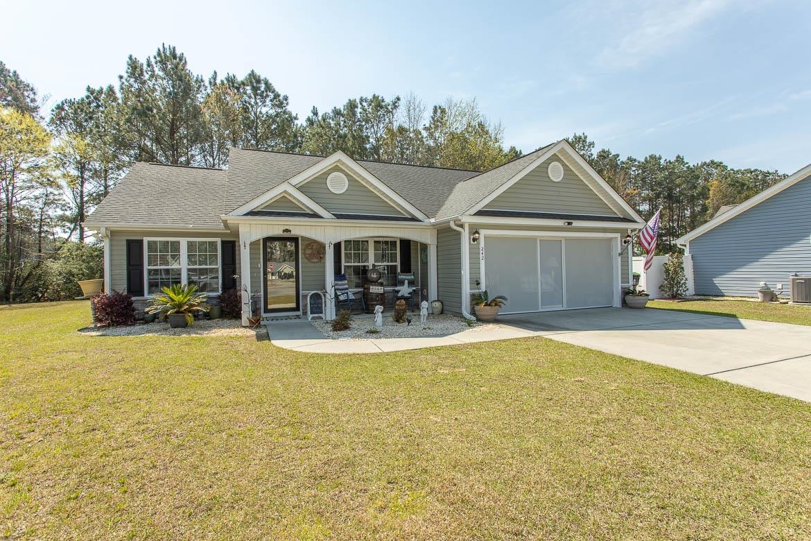 Welcome to 242 Blue Jacket Dr in Galivants Ferry, SC—a charming and well-maintained home offering comfort, space, and peaceful living. This 3-bedroom, 2-bathroom property features a bright, inviting layout filled with natural light throughout. The spacious living area flows seamlessly into the kitchen and dining space, creating an ideal setting for both everyday living and entertaining. The kitchen is accented by a breakfast bar with decorative galvanized steel detailing, adding a touch of rustic character, while a stylish shiplap wall enhances the home’s warm, modern farmhouse appeal. The primary suite serves as a relaxing retreat, featuring a soaking tub, a private full bathroom, and a large walk-in closet. The additional bedrooms offer flexibility for guests, a home office, or growing needs. The garage has been converted for additional usable space but can easily be returned to a traditional garage if desired. Nestled in a quiet setting, this home provides the perfect blend of privacy and convenience. Enjoy the outdoors with ample yard space, complete with a pergola and built-in benches—perfect for relaxing or entertaining. Storage sheds convey, offering added functionality, and a hot tub will convey with an acceptable offer for the ultimate backyard retreat. Located just a short drive from shopping, dining, and schools, you’ll experience the best of rural charm with easy access to everyday essentials. Whether you're a first-time homebuyer, looking to downsize, or seeking an investment opportunity, this home is a must-see!