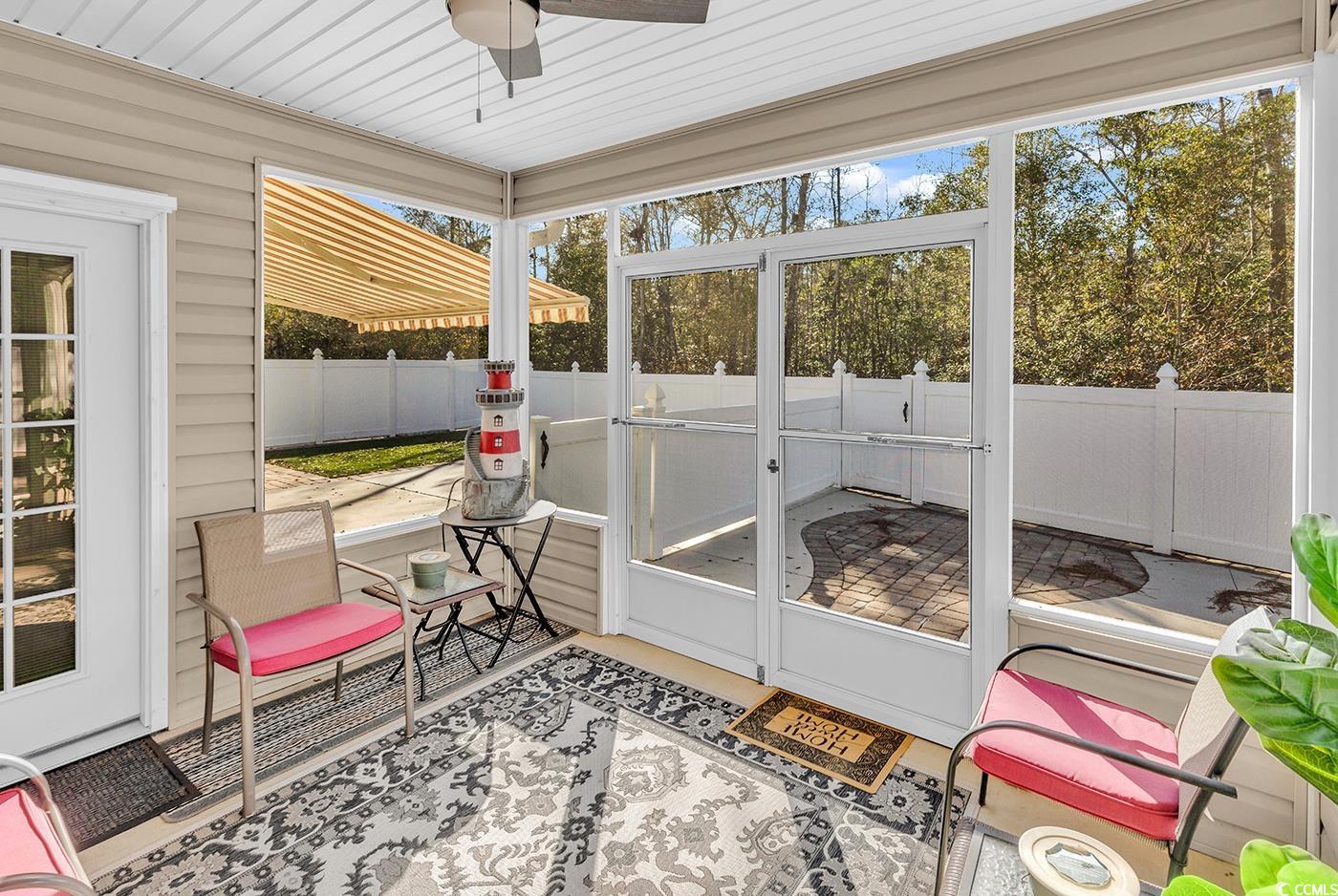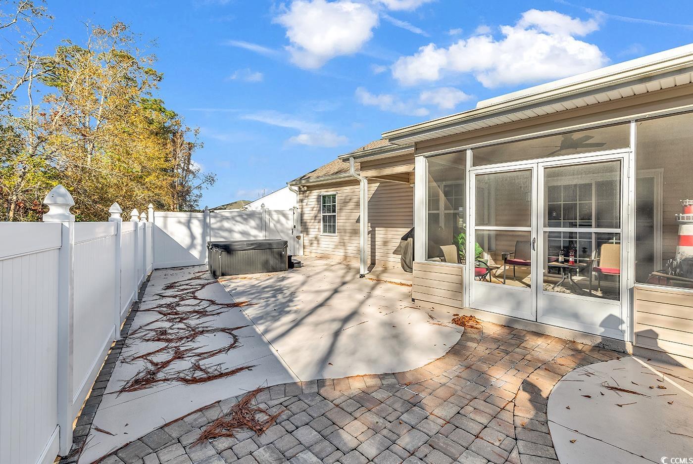 Welcome to this charming 3-bedroom, 2-bath ranch-style home offering 1,569 heated square feet of comfortable, easy living. The home features a desirable 3-car garage—perfect for multiple vehicles, a golf cart, motorcycle, or added storage—plus an oversized driveway ideal for guests. Step inside to an inviting open-concept kitchen and living area highlighted by cathedral ceilings that enhance the spacious feel. The split-bedroom floor plan provides privacy for the primary suite. Just off the dining area, a Carolina room flows seamlessly to a screened-in porch, creating the perfect place to start your morning with coffee or unwind at the end of the day. The private, fenced-in backyard is designed for relaxation and entertaining, complete with expansive pavers and a large patio setup perfect for gatherings, grilling, or outdoor fun. An additional bonus space at the back of the home features a convenient tub area—ideal for pet washing, rinsing off after yardwork, or tackling messy projects before heading inside. This home combines comfort, convenience, and thoughtful features both inside and out—ready to welcome its next owners.