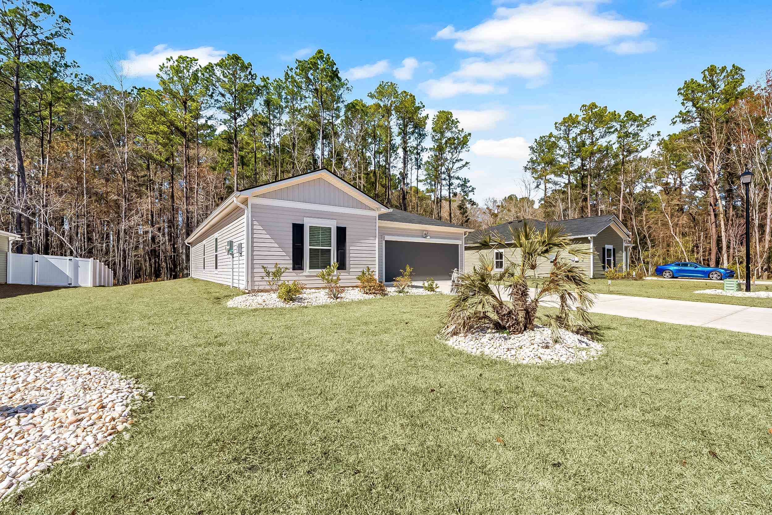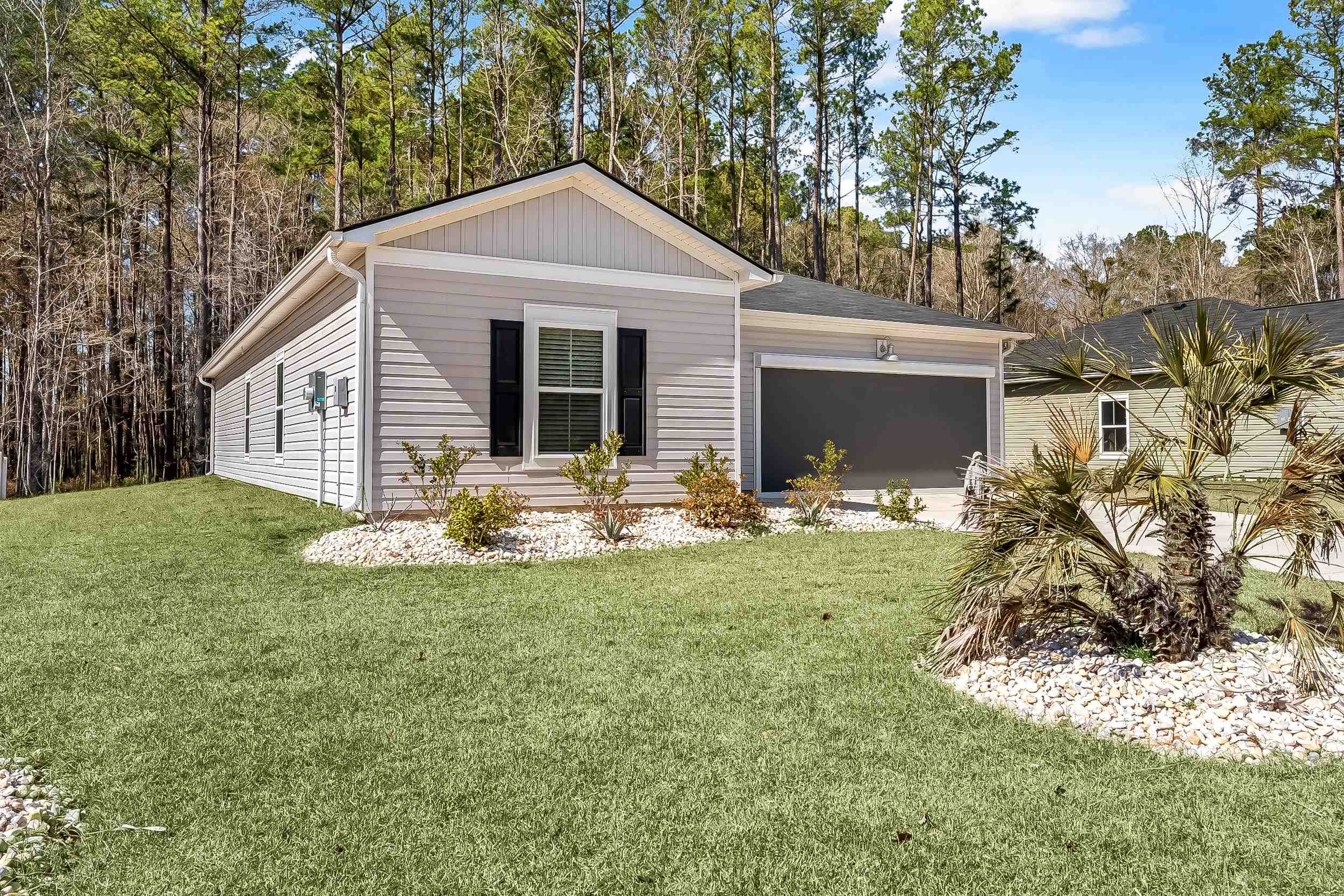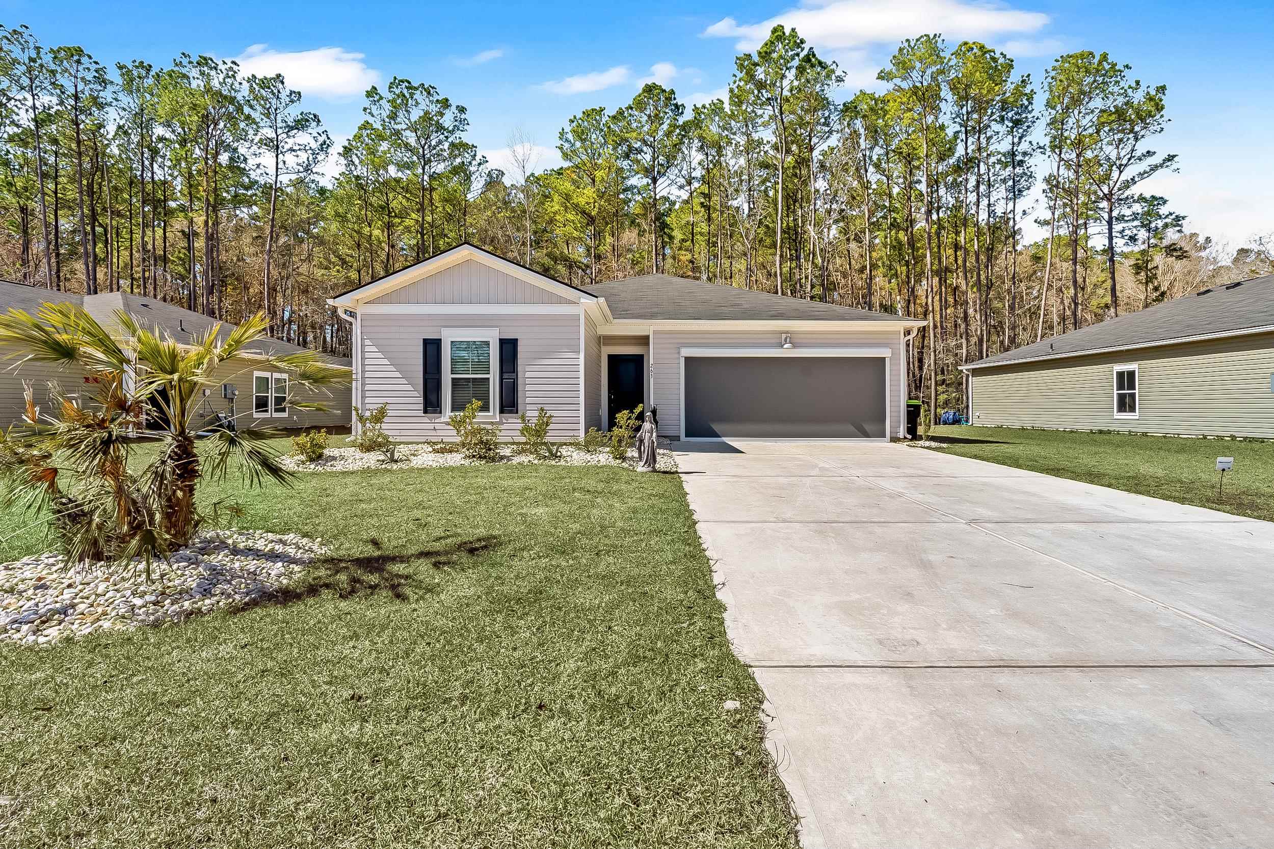 Nearly new and move-in ready! This beautifully maintained 4-bedroom, 2-bath home in the Saddle Ridge community, built in 2024, offers the perfect combination of modern finishes, thoughtful upgrades, and a peaceful setting at the end of a quiet cul-de-sac. Step inside to an open-concept layout designed for comfortable everyday living and easy entertaining. The spacious living room flows seamlessly into the dining area and kitchen, creating a bright and welcoming gathering space. Durable luxury vinyl plank flooring runs throughout the home, offering both style and low-maintenance. The kitchen features granite countertops, stainless steel appliances, and a gas range—perfect for anyone who loves to cook. A split-bedroom floor plan provides added privacy, with the primary suite tucked away from the three secondary bedrooms, making them ideal for guests, a home office, or hobbies. Outside, enjoy the covered back porch overlooking a peaceful backyard—perfect for morning coffee or relaxing evenings. The home sits at the end of the street with a spacious turnaround area that provides extra parking and a low-traffic setting. Additional upgrades include remote-control window blinds and a screened garage door system that allows the garage to function as a breezy, bug-free flex space for hobbies, workouts, or casual gatherings. The home’s curb appeal shines with premium landscaping, including easy-care plantings and decorative stone designed for long-lasting beauty. Located in the desirable Saddle Ridge community, residents enjoy amenities including a neighborhood pool, playground, picnic area, and scenic lakes. Conveniently located just minutes from shopping, dining, and all the historic downtown Conway has to offer! Schedule your private showing today.