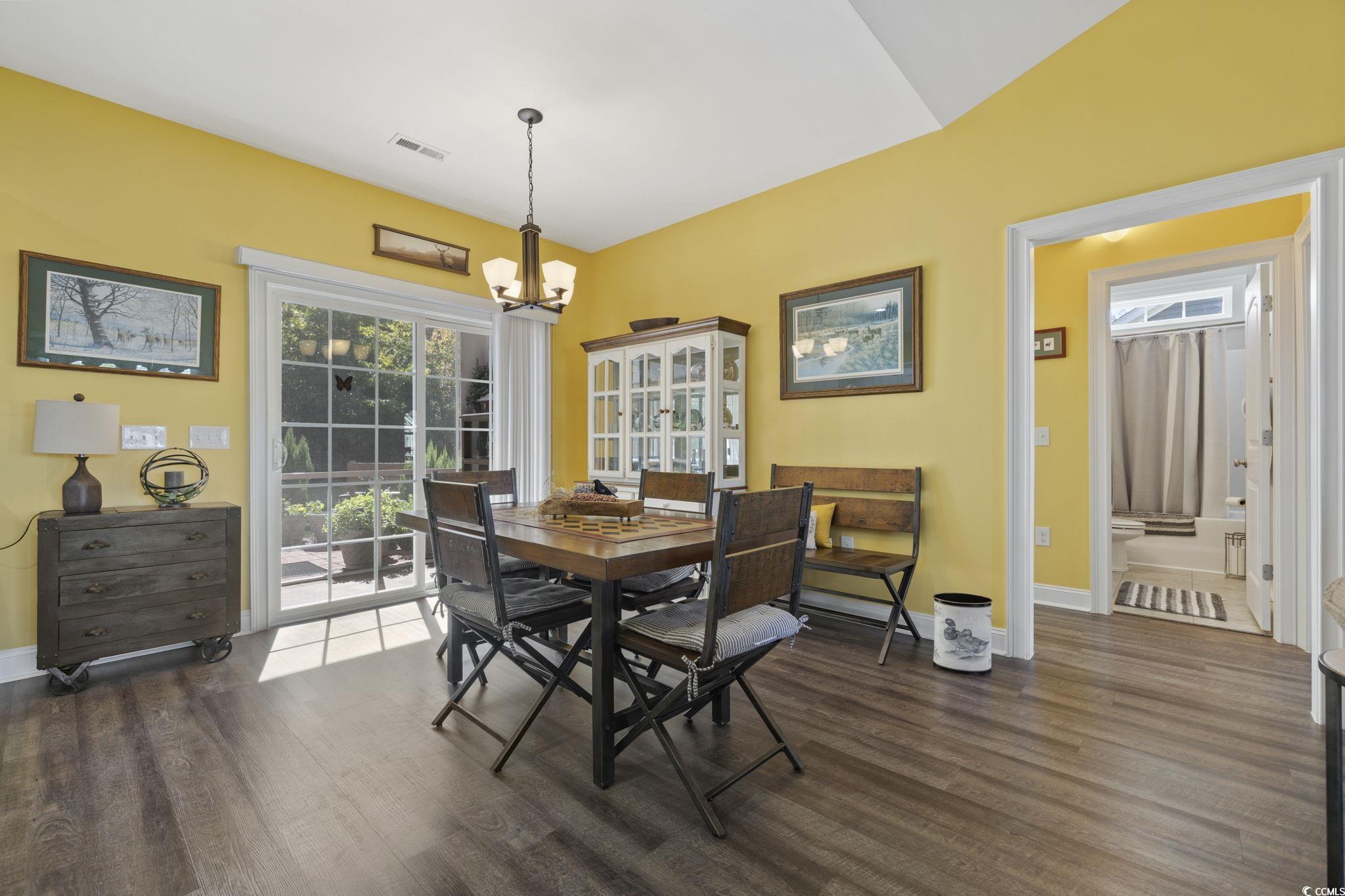 Nestled within the desired community of Heartwood, this 3 bedroom 2 bathroom home is in immaculate condition that offers an unbeatable combination of luxury and practicality. The home itself features an open floor plan and upgrades throughout; LVP flooring, crown molding, vaulted and tray ceilings, stainless steel appliances, granite countertops, an extended master suite with a garden tub and walk in shower, and tile floors in the bathrooms and laundry room! The exterior features a shaded front porch and a wooded view from the back that allows you the privacy to enjoy your large yard. A screened in patio addition was added to make your outdoor area even bigger to relax and entertain. That combined with a uncovered patio portion perfect for grilling and a herb garden. The residents benefit from a desirable neighborhood lifestyle complete with access to a community pool and low HOA fees. The location is incredibly convenient, being just minutes from the award winning Aynor District Schools, and just 1/2 mile from Highway 22, providing easy access to the renowned beaches of Myrtle Beach and North Myrtle Beach. You'll also be just minutes away from all that downtown Conway has to offer and the picturesque Historic River Walk. Don't miss this opportunity to own a beautiful home that perfectly blends community perks, affordability, and coastal accessibility!