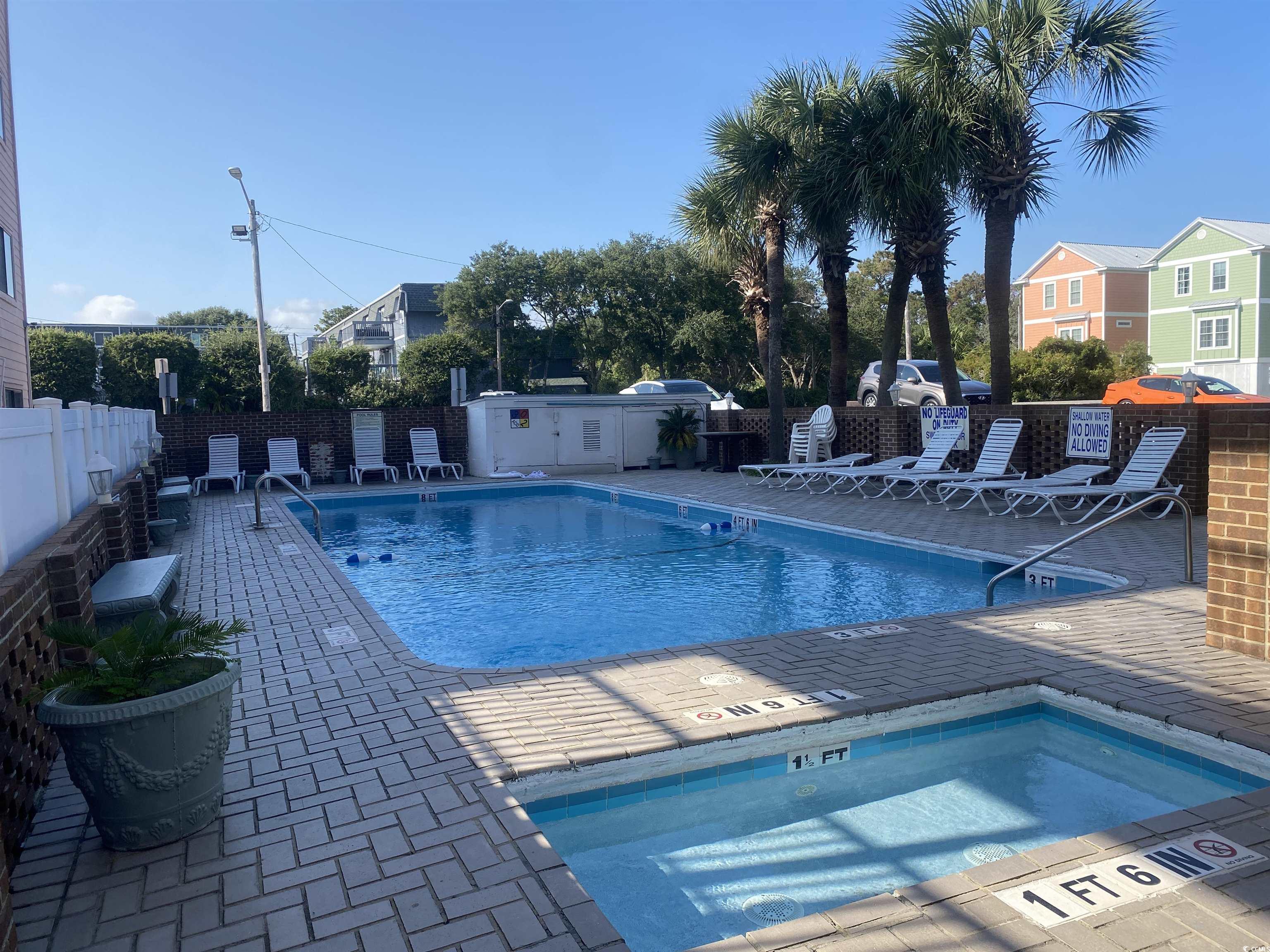 Great Location! Great getaway condo located conveniently on South Ocean Blvd across from the beach. 1 bedroom unit (suit style/walkthrough bedroom). Low HOA dues include basic utilities and building insurance. The unit features a full kitchen/Livingroom combo that sleeps 4. Front Desk rental program is available. Property features outdoor pool and hot tub along with picnic/grill area. Listing agent is closely related to seller. Sq Footage and all measurements are approximate and not guaranteed. Buyer is responsible for all measurements.
