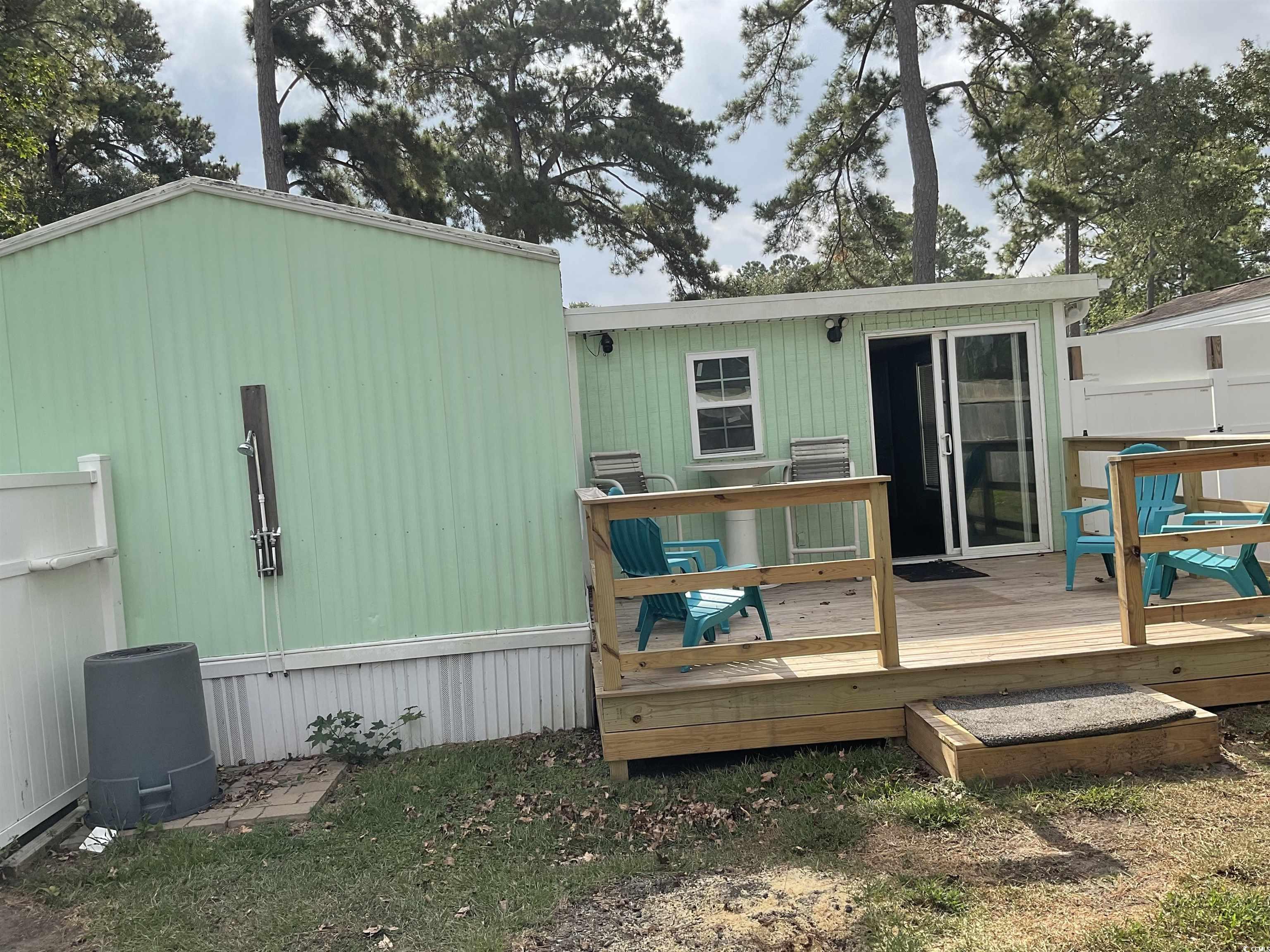 Upgrades!!! UPGRADES!! Upgrades!! This is a Contractor's home and it shows!! This is not your average Manufactured Home. One complete side is stick built and the original home has been upgraded WAY beyond average. You first walk on to the cozy screened porch with nice furnishings and a ceiling fan. The porch has peeks of Crystal Lake. Enter through the full size entry door into the stick built living room. When I say stick built, 2x12 ceiling and floor joist. You will not find a soft spot in these floors!!! You could probably park a truck on this portion of the roof and the owner had it built to put a rooftop deck if so desired. You will notice there are true residential quality windows and door throughout!!! The master is behind the living room and has a beautiful ensuite bathroom!! Off the master is a newer, over built outside deck to the back yard, storage building, and outside shower!! on the original side of the home are surprising and amazing upgrades!! Off the dining room is the first of two guest bedrooms, the true hardwood and upgraded LVP scream high end finish!! The ample kitchen has upgrade cabinets and counter tops of high end Granite!! Behind the kitchen is the second bath located in the hallway and between the two bedrooms!! The entire backyard area is fenced in and pet friendly. As you walk outside, you can't help but notice the newly poured oversized concrete parking pad!!! Where else can you find these top shelf finishes, this close to the beach, market commons, state park, and entertainment venues at the price point''!!