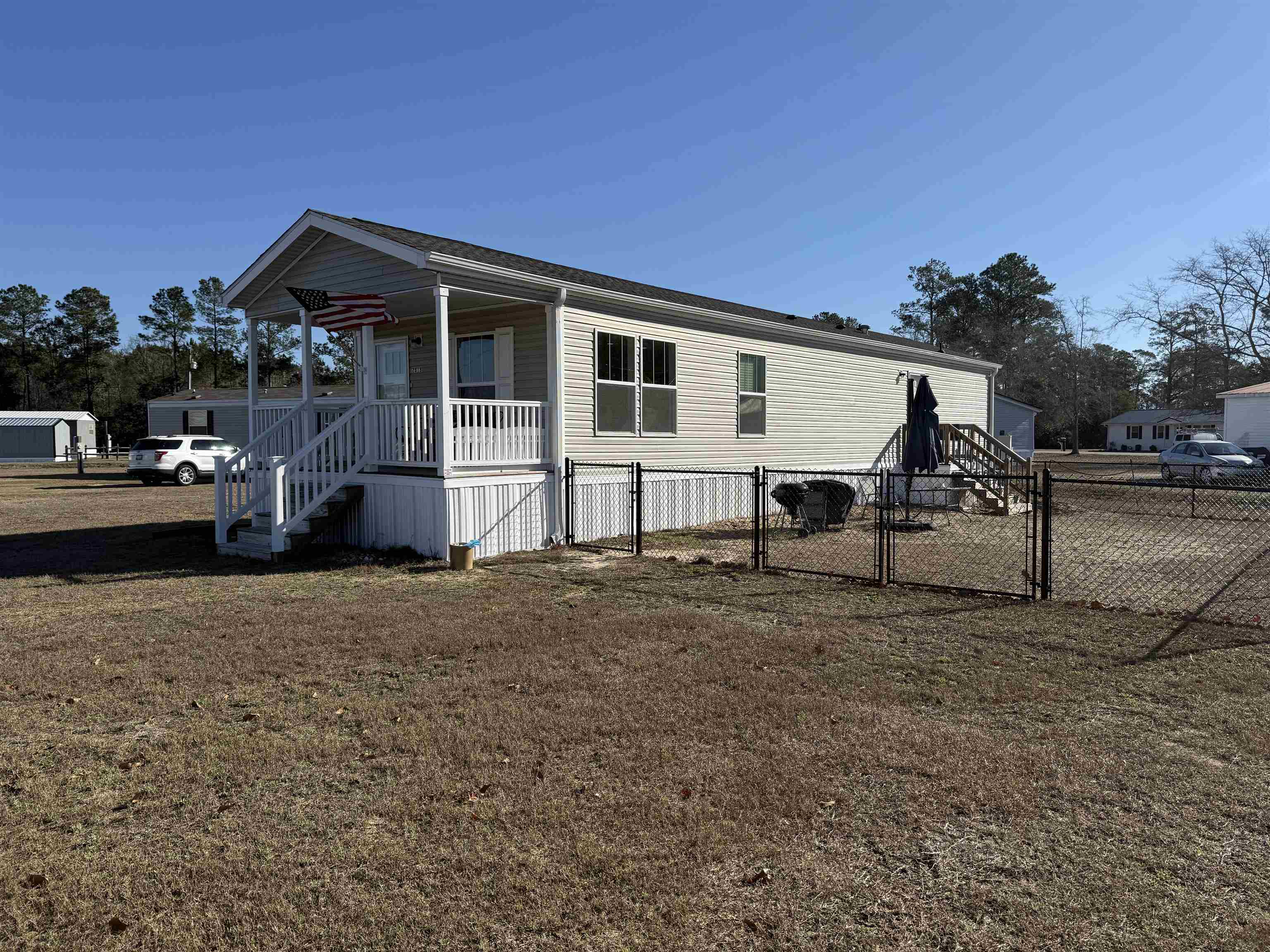 Nestled in the cozy Turkey Ridge Community, this 2 bedroom 2 bathroom 2024 Clayton manufactured home sits only a short drive from downtown Conway and the area's most vibrant beaches. Upgrades from the manufacture include upgraded insulation and shingles as well as sheetrock and crown moulding throughout the entire home. The kitchen boasts a spacious island that serves as both a functional prep space and a dining area, complemented by a sleek subway tile backsplash that coordinates beautifully with the countertops. With ample cabinetry and generous counter space, any homeowner will appreciate the abundant storage options available. The primary bedroom is a true retreat, featuring a spacious bedroom, a private en-suite bathroom and a laundry room just outside the primary. The primary bath is equipped with dual sinks and a tub/shower combo. Everything you could desire in a cozy and functional space. Down the hall there is another bedroom with its own closet and a guest bathroom, completing this thoughtfully designed and functioning floor plan. This property offers the perfect balance of rural tranquility and coastal accessibility. Schedule your showing today.