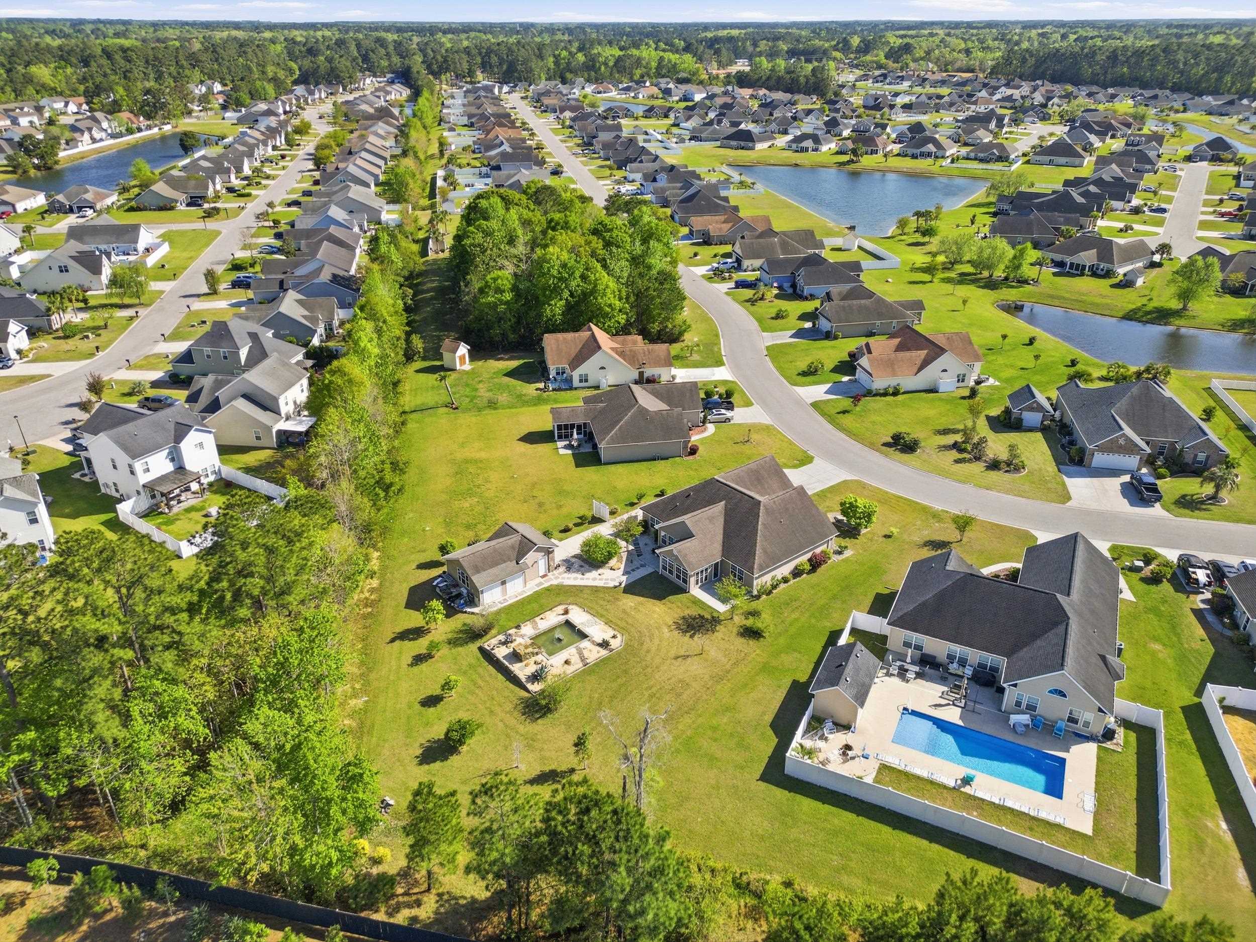 Welcome to a truly one-of-a-kind opportunity in the desirable Forestbrook Preserve community—where thoughtful upgrades, exceptional outdoor living, and versatility come together in perfect harmony. Set on nearly half an acre—one of the largest homesites in the neighborhood, this meticulously maintained property immediately stands apart. From the moment you arrive, the professionally designed landscape makes a lasting impression, offering both beauty and privacy rarely found in this community. Step into your own private backyard retreat, where a custom-designed rock garden creates a peaceful, park-like setting. Winding pathways, carefully placed natural stone, and a serene pond with waterfall feature provide a calming escape—frequently enjoyed by local wildlife, including turtles. This outdoor space offers a unique sense of tranquility while still leaving ample room to design and build a custom pool if desired. Adding even more value and flexibility is the detached third-bay garage building, complete with four storage closets and its own heating and cooling system. Currently used as a carpentry workshop, this versatile space presents endless possibilities—whether you envision a hobby studio, recreational retreat, boat storage, or additional workspace tailored to your needs. The property is equally impressive when it comes to functionality: Attached two-car garage + detached third bay (3 total garage bays) Extended driveway accommodating 10+ vehicles Garage wall organization system for optimal storage Inside, the home offers comfortable, modern living with 3 bedrooms and 2 bathrooms, enhanced by: A bright and inviting layout with no carpet—laminate and LVP flooring throughout Granite countertops and stainless steel appliances in the kitchen A custom three-season room featuring an architectural ceiling design—perfect for relaxing or entertaining year-round Ceiling fans in all bedrooms and main living areas A well-appointed laundry room with cabinetry and utility sink Residents of this community enjoy access to a community pool and bathhouse, while the location provides everyday convenience with quick access to Highways 544 and 501. You’re just about 15 minutes from the beaches of Myrtle Beach and Surfside Beach, as well as close to shopping, dining, entertainment, and golf. This property offers a rare combination of space, customization, and versatility—perfect for those seeking something beyond the ordinary. Schedule your showing today and experience everything this exceptional home has to offer.