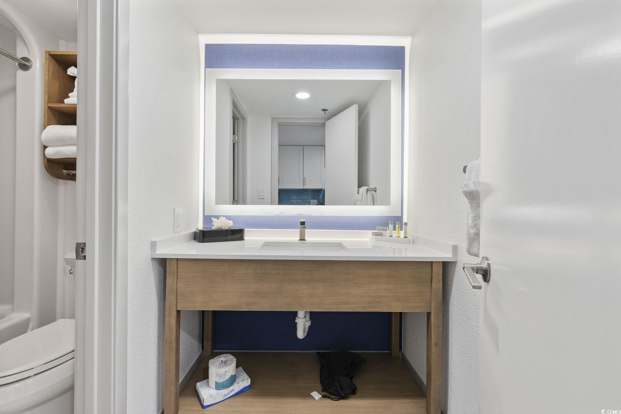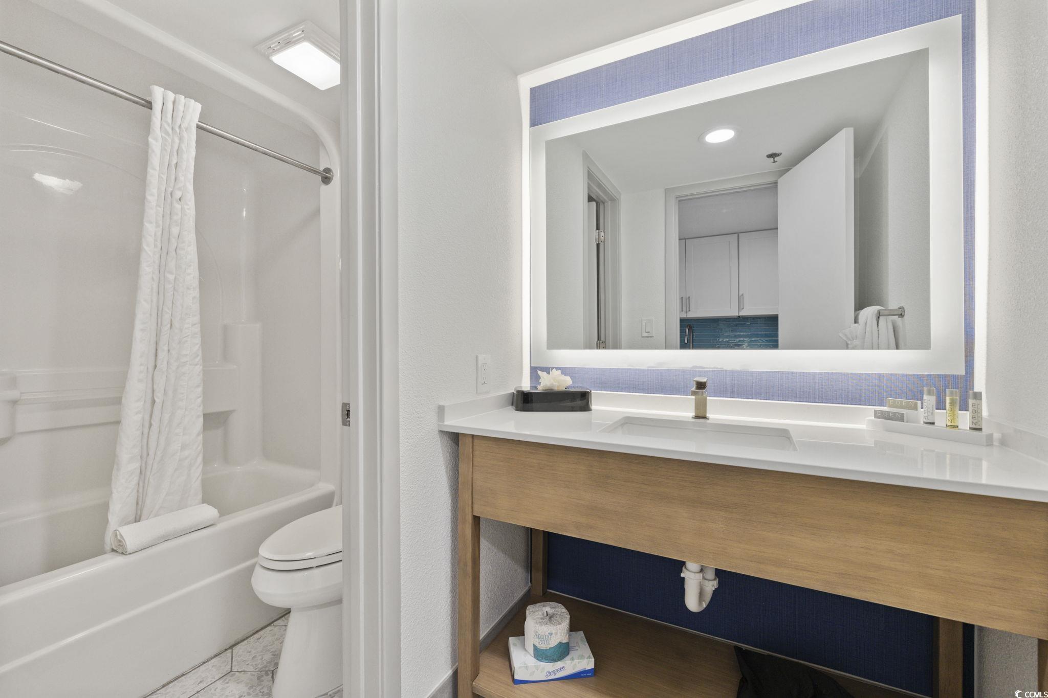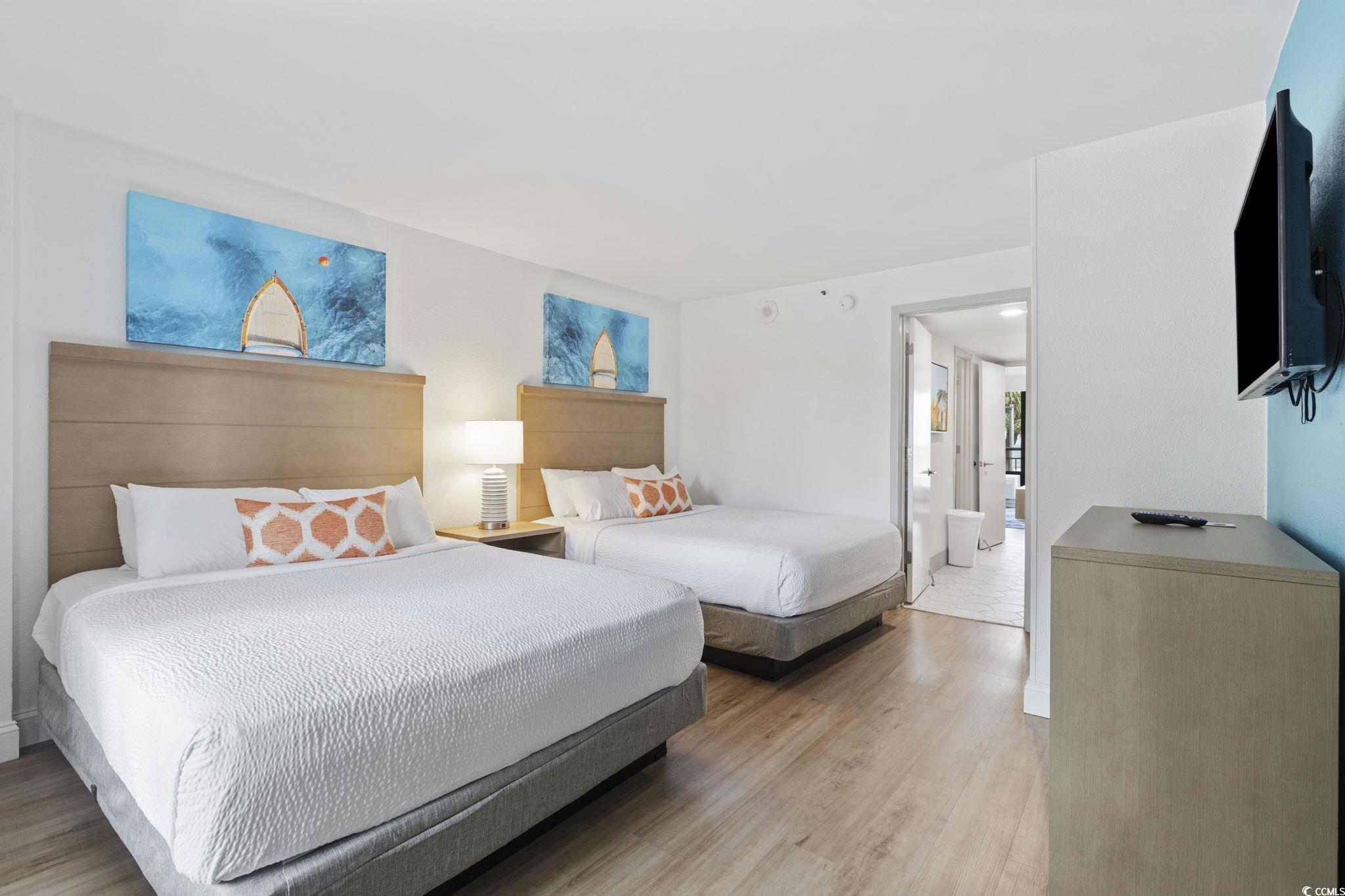 This 1BR-1BA Ocean Front Condo at the Caribbean Resort is the perfect beach get away and/or investment. It has an outstanding year-round vacation rental history! Unit 130 is located on the first floor no stairs or elevator waiting required also easy access from entrance loading area. This property has taken part in an upfit and has been upgraded with luxurious features including stunning quartz countertops, custom-designed furniture, upgraded lighting and artwork, and a sleek ceramic tile backsplash in the kitchen. The bathrooms now feature elegant nickel shower trim and accessories, while blackout draperies and stain-resistant upholstery add both style and durability. New laminate flooring was recently installed in the bedroom & living room. This unit can sleep 8 people, it has two queen beds, a murphy bed and a pull-out sofa! The spacious balcony has beautiful ocean views and overlooks the main outdoor pool. The Caribbean Resort amenities include enclosed climate-controlled corridors, oceanfront indoor and outdoor amenities- pools, hot tubs, lazy rivers, kiddie pools, a sun deck, shuffleboard, a water slide, and a seasonal bar and grill. A Starbucks and a yogurt shop are located directly across the street. The Caribbean Resort is located on the north end of the beach, a short drive to Broadway at the Beach, Myrtle Beach Convention Center, Boardwalk, Skywheel, plenty of great restaurants, shopping and highly rated golf courses.