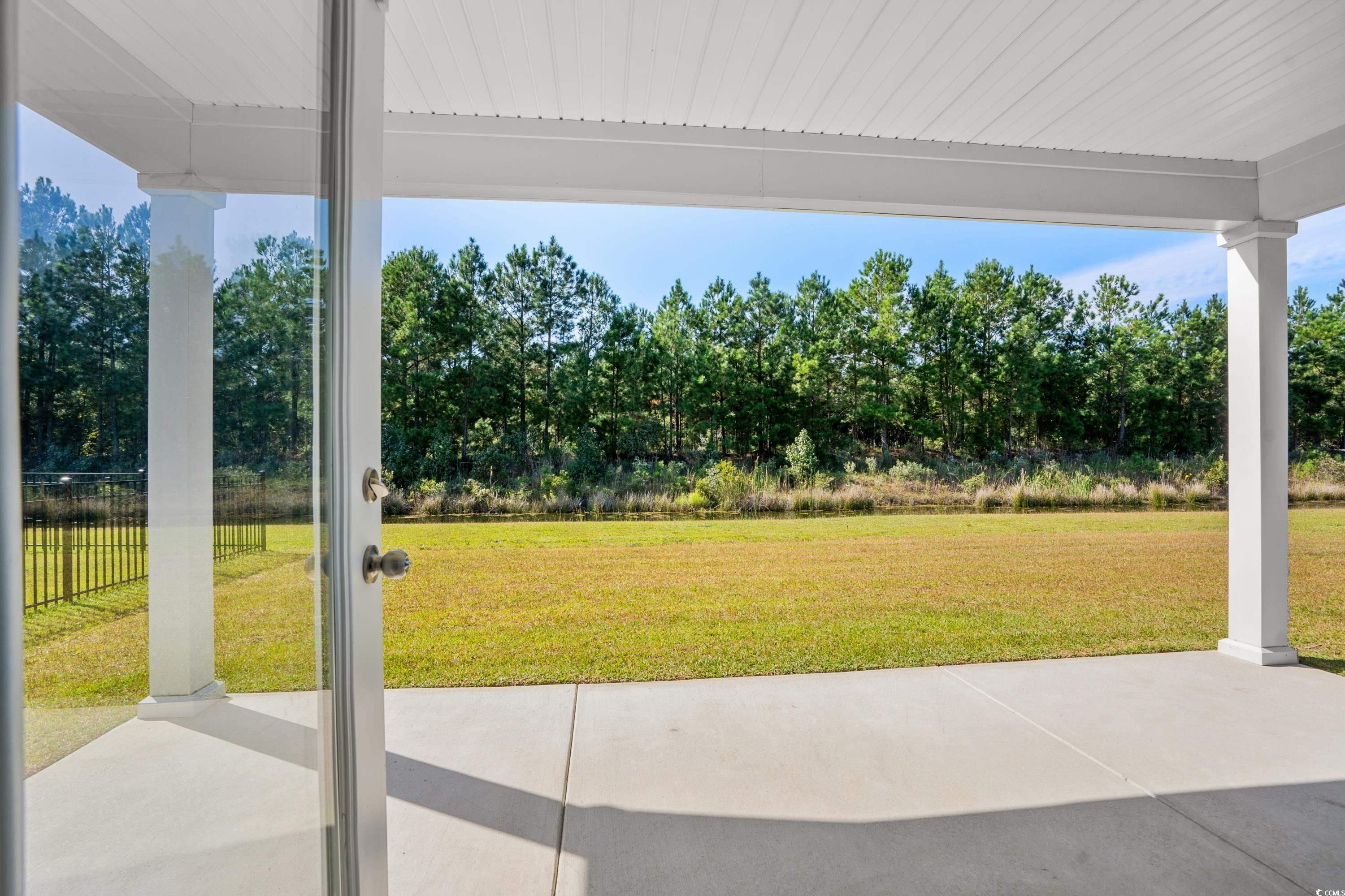 Assumable loan opportunity! Offering serene views of water and woods this stunning home is just 15 minutes from the beach! Built in 2022 and nestled in the sought-after community of The Isles of Bella Vita, this residence seamlessly blends modern design with timeless elegance. Step inside to find refined touches throughout, including laminate flooring in the main living areas and brand-new carpeting in all bedrooms. Abundant natural light fills the home, creating a warm and inviting atmosphere. The kitchen is a chef's dream with natural gas cooking, beautiful granite countertops, and a large island perfect for entertaining. Additionally, the home includes a natural gas tankless water heater, providing energy efficiency and endless hot water. The owner’s suite is a true retreat, featuring a tray ceiling and a spa-like bathroom with a large walk-in shower, frameless shower door, tile surround, and tile flooring. A finished, oversized garage provides extra space, ideal for a golf cart, home gym, or additional storage. Outdoor living is equally inviting with a covered porch, perfect for relaxing or entertaining while overlooking the tranquil views of water and woods. Whether you seek a peaceful retreat or a vibrant gathering space, this home offers the best of both worlds. The Isles of Bella Vita is an established natural gas community in the Carolina Forest area of Myrtle Beach. Residents enjoy a resort-style pool and amenity center overlooking a scenic pond.