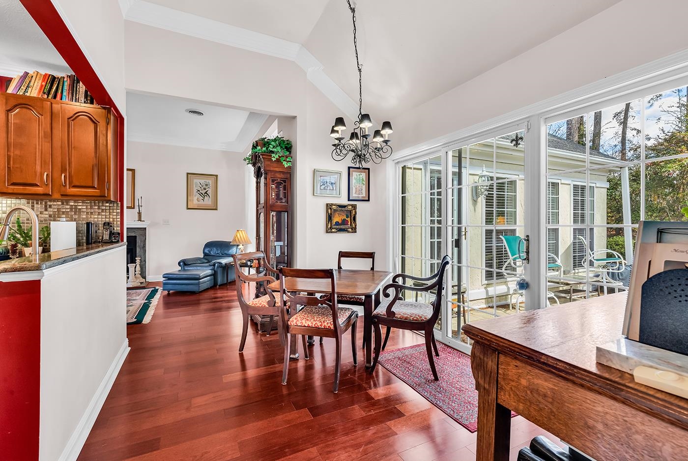 Situated in the highly sought-after River Hills Golf & Country Club community in Little River, this sprawling 3-bedroom, 2.5-bathroom rancher is the epitome of luxury living. Just a short 10-minute drive to the sparkling sands of Cherry Grove Beach and the picturesque town of Calabash, NC—the seafood capital of the East Coast—this home offers the perfect blend of convenience and relaxation. The stunning interior features rich cherry wood floors, 6-inch wide crown molding, and soaring tray ceilings, creating an inviting and spacious ambiance. The master suite is a true retreat, offering a walk-in shower, garden soaking tub, double sinks, and plenty of natural light. The secondary full bath is beautifully appointed with a well-lit vanity and a glass-walled walk-in shower. The chef-inspired kitchen boasts solid wood cabinets, granite countertops, and a tile backsplash, making it as functional as it is beautiful. A cozy gas fireplace with an elegant mantle adds warmth and charm to the living area, perfect for those cooler evenings. With two new heat pumps, spacious bedrooms, and abundant natural light throughout, this home provides comfort in every corner. The living area overlooks a private backyard or, with a simple adjustment, the lush fairways of River Hills golf course. Enjoy the peace and tranquility of the heavily wooded, well-established neighborhood while still being close to the best local amenities, including water sports, golf, fine dining, and live entertainment. A rear patio and low-maintenance finishes make this home a true gem. Square footage is approximate and not guaranteed. Buyer responsible for verification.