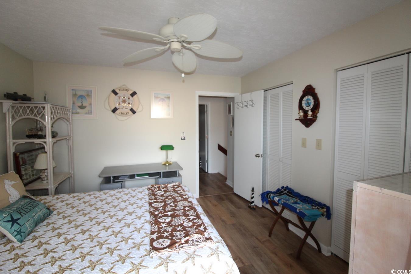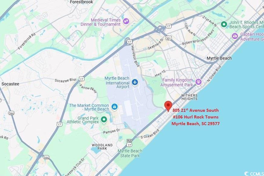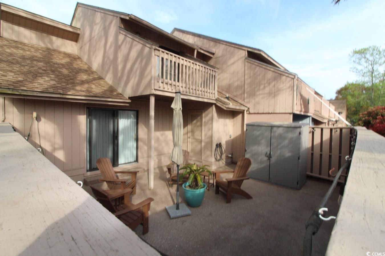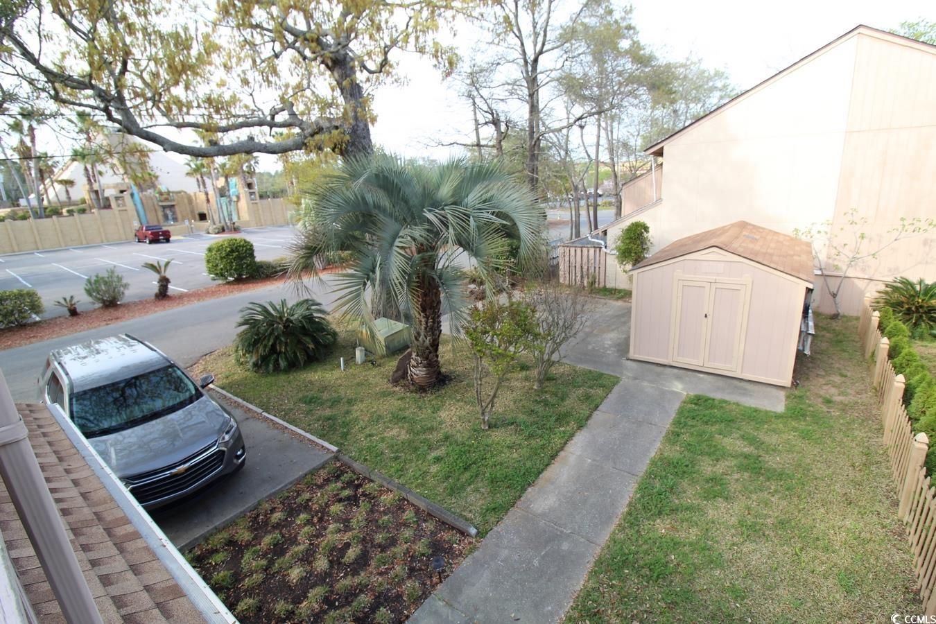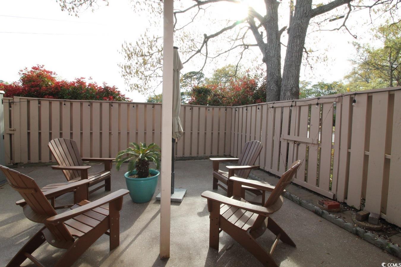 This 3BR/2BA townhome is just a short ¼ mile stroll to the shores of the Atlantic Ocean. This two-story townhouse at Hurl Rock has a downstairs master bedroom suite and a private 24’ x 20’ fenced in back patio. Each of the upstairs bedrooms has a balcony from which you can enjoy the relaxing ocean breezes and southern sunshine. #106 is an end unit which has access to three private parking spaces off of Rosemary Street. There is also a 10’ x 16’ storage building which will convey. Tile flooring throughout the downstairs and waterproof laminate floors upstairs. Custom-built walk-in shower recently installed in the downstairs master bathroom. New full-size washer & dryer purchased in Sept 2024. Roof replaced in 2020. Irrigation system has access to well water. There are no HOA dues and short term rentals are allowed. Hurl Rock is conveniently located east of Hwy 17 Business, close to the beach, Market Commons, the Airport & downtown Myrtle Beach.