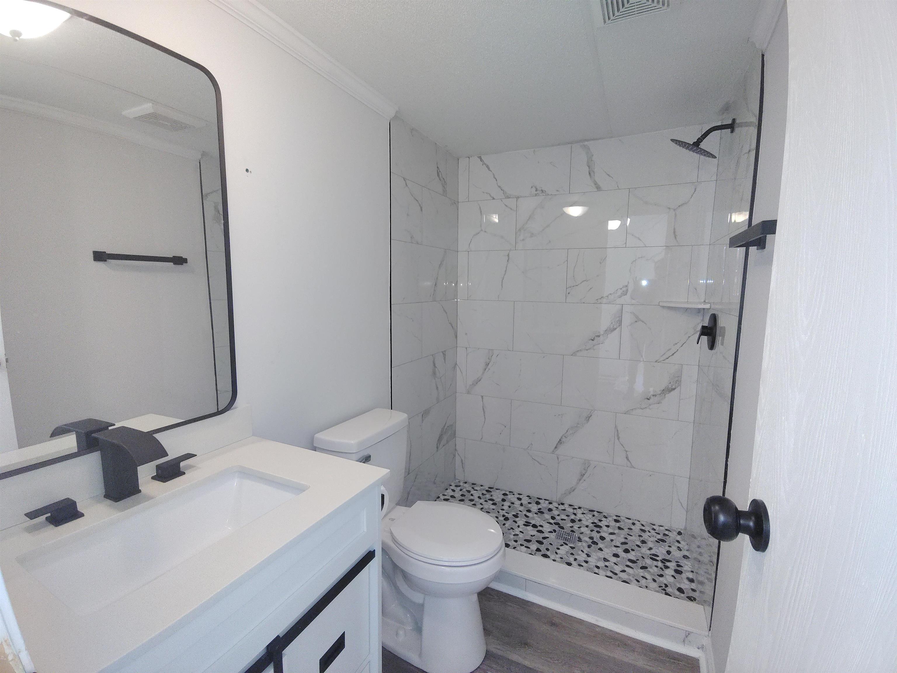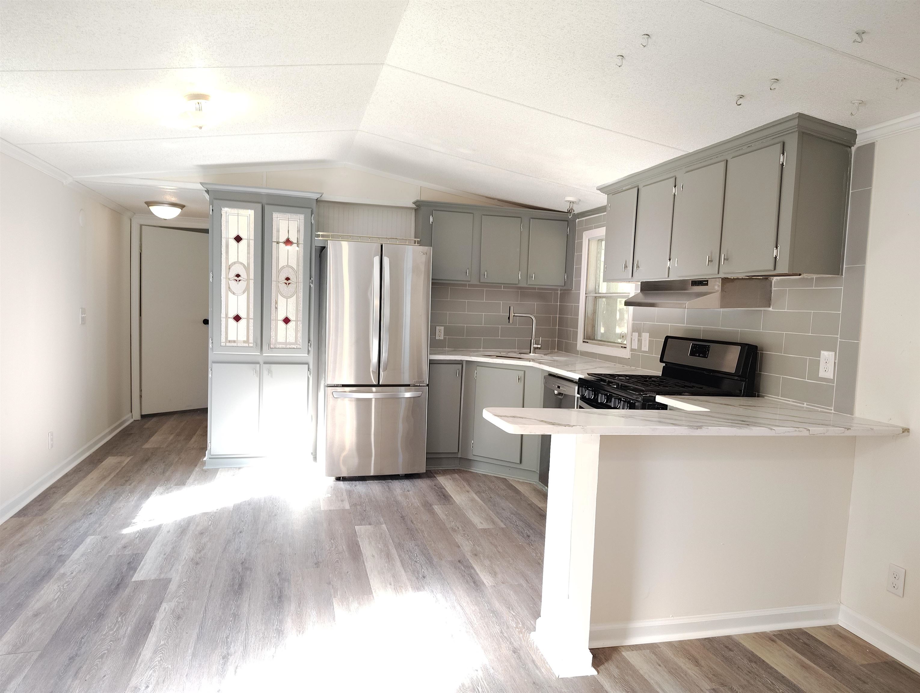 Charming 3 bedroom/2 bathroom single wide mobile home on leased land, in Conway ready for new owners! No HOA! Newly renovated. Kitchen has stainless steel appliances, bathrooms are also newly renovated with beautiful modern touches like tiled shower with smooth pebble flooring. Bedrooms on opposite ends for privacy. New flooring throughout the entire home. New added bedroom and flex room. Enjoy the large backyard for outdoor activities. Great starter home! Renovations are still ongoing to make this home even better. Call and set up your showing today!