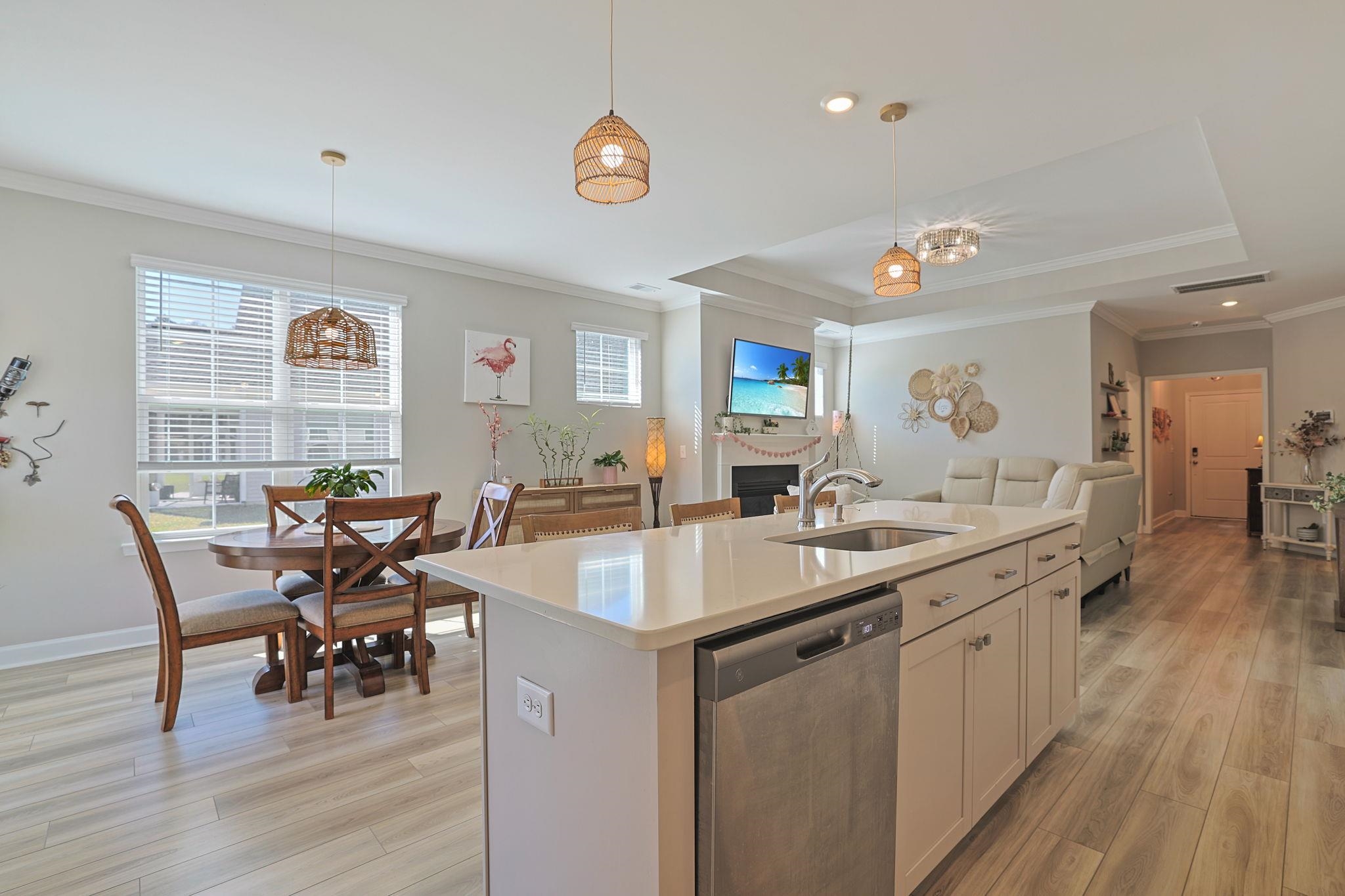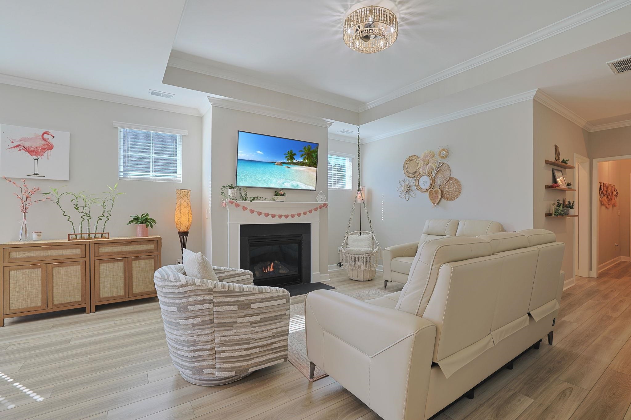 Introducing this 3 bedroom 3 bath home located in the popular Merrill Villas section of the Bella Vita community. This home features wood look LVP & carpet flooring, smooth flat ceilings with crown moulding, high base boards, custom window blinds, an open floor plan with an inviting living/dining room combo that includes a tray ceiling with fan, a cozy gas fireplace with blower, and showcases a French door that opens up to the relaxing screened-in back porch with an extended concrete pad overlooking the tranquil lake with a memorable aerating fountain. The cheerful kitchen is equipped with a stainless steel appliance package, quartz counter tops, cabinets topped with crown moulding with pull out shelves, soft closing drawers, tile back splash, a kitchen island with a breakfast bar & custom pendant lighting, and a practical pantry. The primary bedroom offers lake views, a single step tray ceiling with a fan, private access to the primary bath hosting a vanity with dual sinks, a comfort station, a deluxe step-in shower, a large walk-in closet that includes access to the laundry room. As you venture upstairs you will find a sizeable peaceful bedroom with a full en-suite bath. The main level is completed with an additional bedroom, full guest bath, a laundry room, external natural gas hookup for a grill, tankless water heater, smart home with a security system on all door and windows, adjustable windows for easy cleaning along with hurricane impact screens, an irrigation system, and a two car attached garage with a utility sink. This home affords you easy access to the beach and golfing along with all of the other activities and happenings in Myrtle Beach including fun eateries, award winning off-Broadway shows, public fishing piers, and intriguing shopping adventures along the Grand Strand. Conveniently located to your everyday needs, including grocery stores, banks, post offices, medical centers, doctors’ offices, and pharmacies. Check out our state of the art 3-D Virtual Tour. Floor plans are generated from a virtual tour camera and are for estimate purposes only. Square footage is approximate and not guaranteed. Buyer responsible for verification of all information.