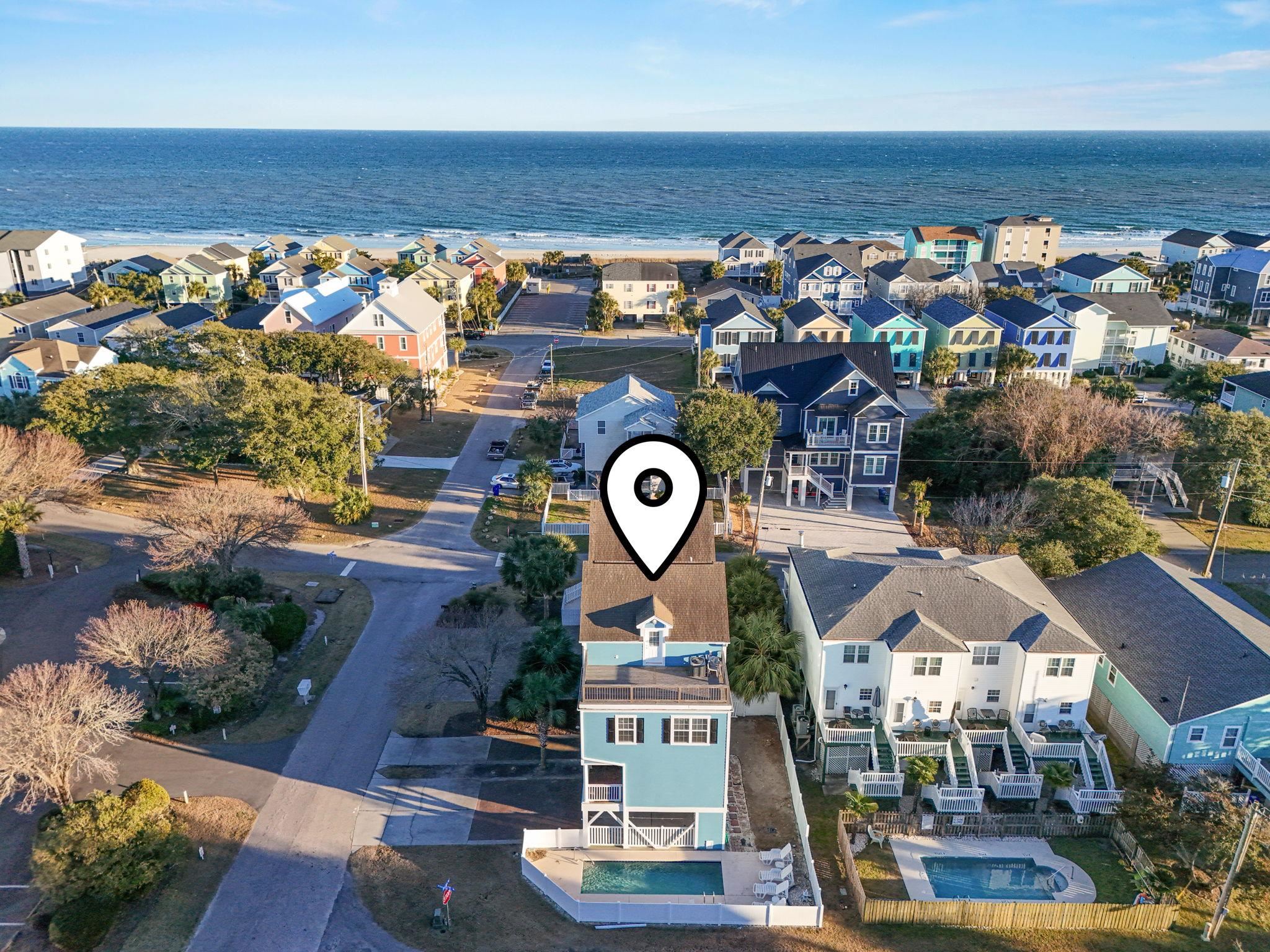 Investors dream. Coastal living starts here. This furnished raised beach house in Surfside Beach features fresh exterior paint and a layout designed for comfort, connection, and coastal fun. The semi-detached home offers five bedrooms, each with its own private bath, with living spaces thoughtfully spread across three levels—perfect for gathering together while still enjoying privacy. The oversized third-floor bedroom provides flexible space for guests or multi-purpose use with private balcony. Enjoy a quick walk to the beach for sun-filled days, ocean breezes, and relaxing evenings by the shore. Beach access is at end of road. A covered first-level porch overlooks a private pool, creating an inviting space to unwind or entertain. No HOA. Located in an area allowing both short-term and long-term rentals and ideal as a second home. Close to the Surfside Pier, fishing, dining, tennis courts, library, park, and shopping. Square footage is approximate and not guaranteed; buyer responsible for verification.