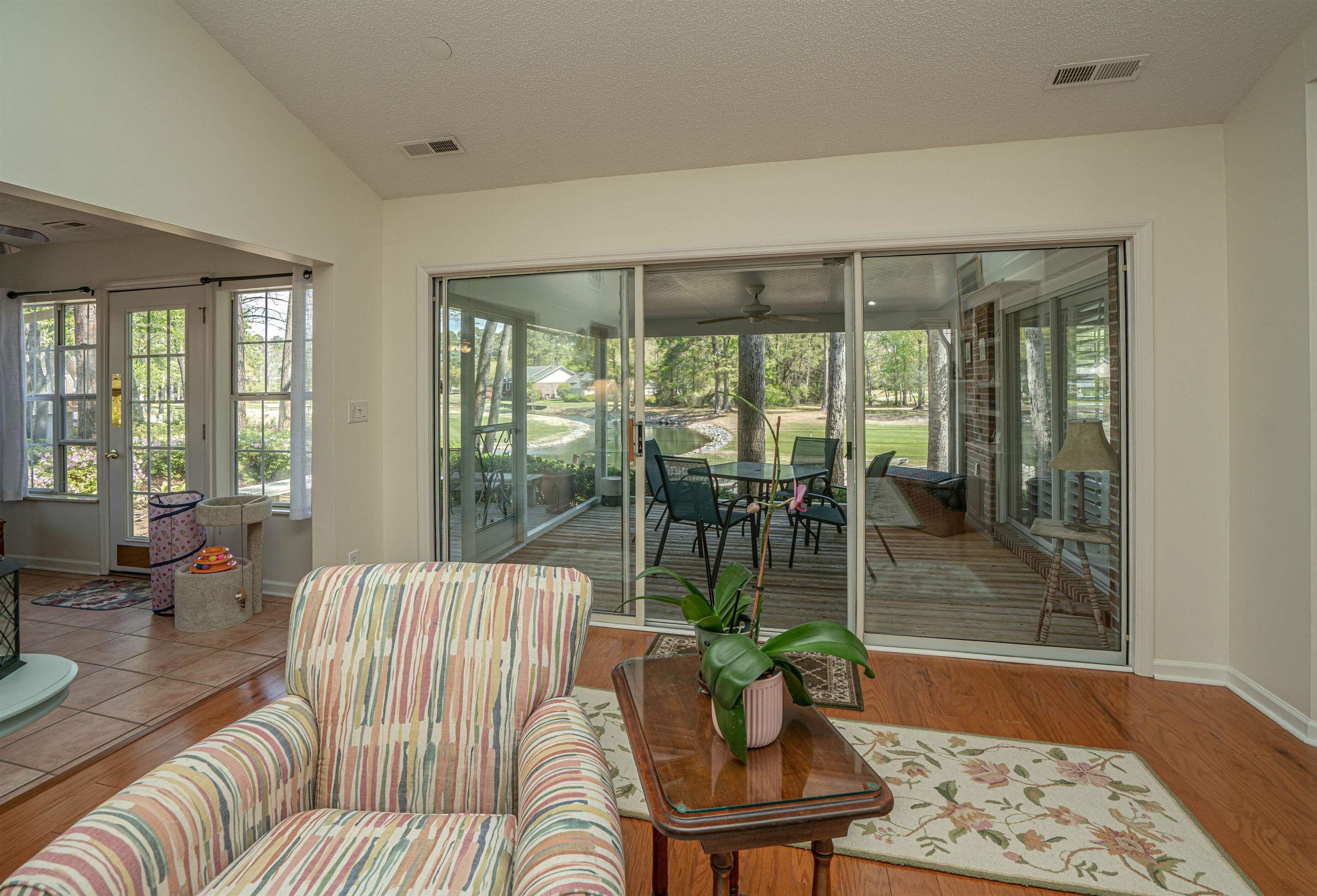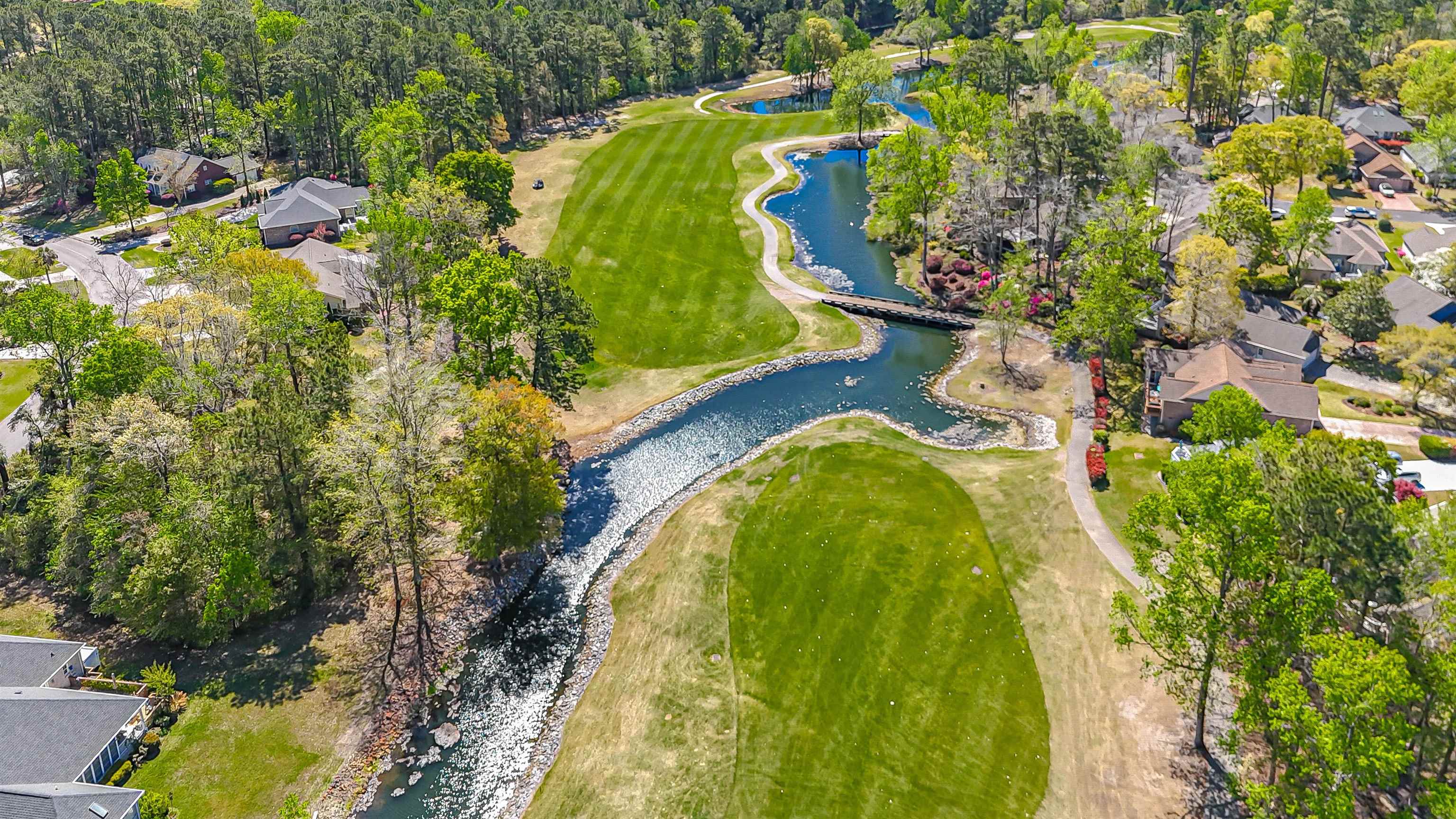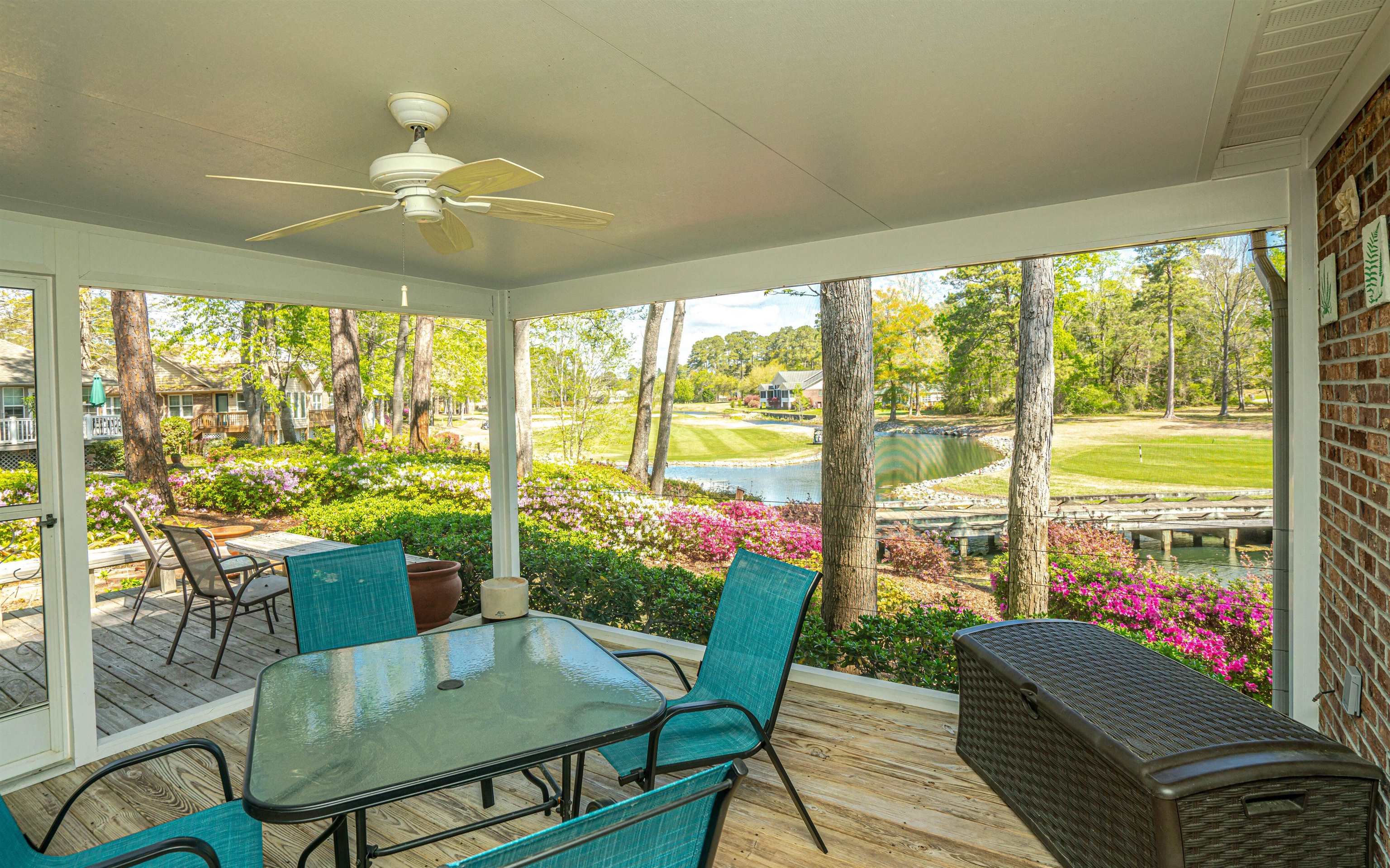 Priceless views! This gorgeous one-level home sitting at the end of a private & quiet cul-de-sac needs to be seen in person to appreciate the serene setting. Enjoy your morning coffee or an afternoon adult beverage out back from the elevated porch/deck overlooking a beautiful dogleg par 5 with beautiful azaleas in full bloom and water views. Watch the hackers go by in peace as you're close enough to see their bad shots, but out of harms way! It's truly hard to explain how peaceful this setting is until you come see it in person. River Hills is a phenemenal community with a gorgeous 18 hole golf course, a renovated golf clubhouse/restaurant, and lots of social groups/activities to get involved with if you care to. Great location to all that this wonderful area has to offer as you're just a short drive to all sorts of shopping options, great waterway restaurants/bars, tons of world class golf courses, boating options, and even more entertainment. One-level plan with 2 guest bedrooms in the front of the home and a fully renovated guest bath with a walk-in shower and new vanity. Primary suite is in the back of the home so you can take in those incredible views every morning as you wake up. Plantation shutters add that extra touch of class. The kitchen has a work island, staintless steel appliances, and a breakfoost nook. There's a room off of the kitchen that could be used a den, office, or a formal dining room for those that want one. Open living room great for entertaining and it draws you to the back of the home with the screened-in porch and the deck to take in those views.