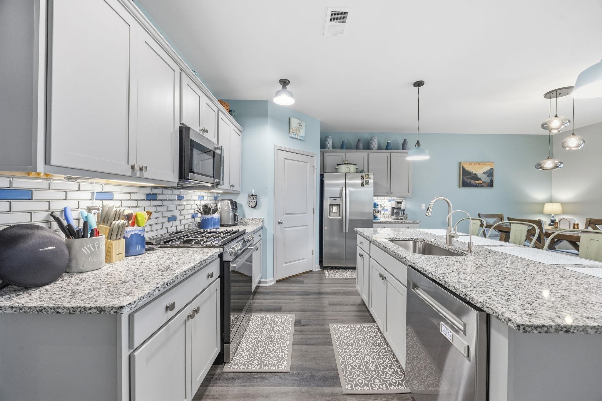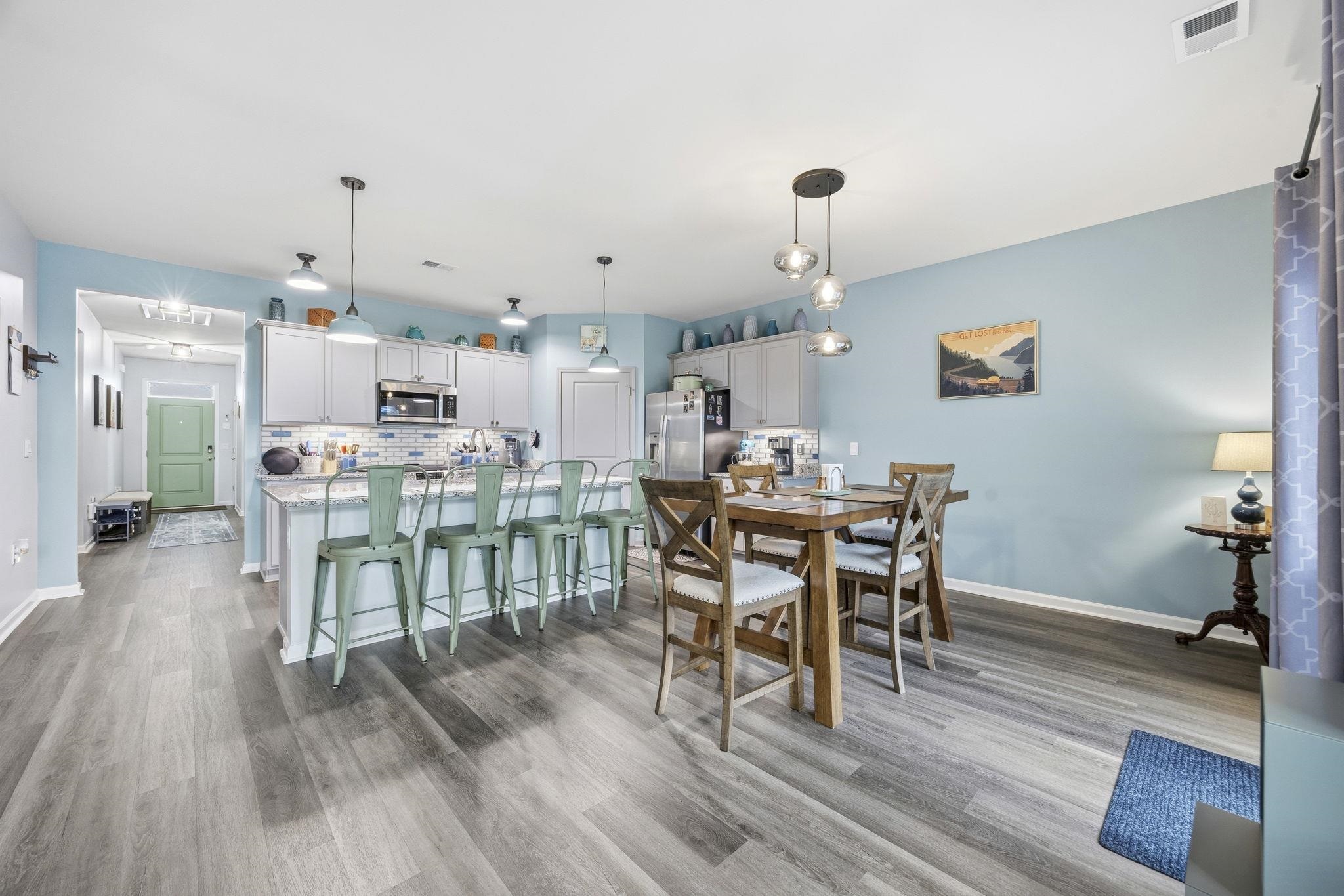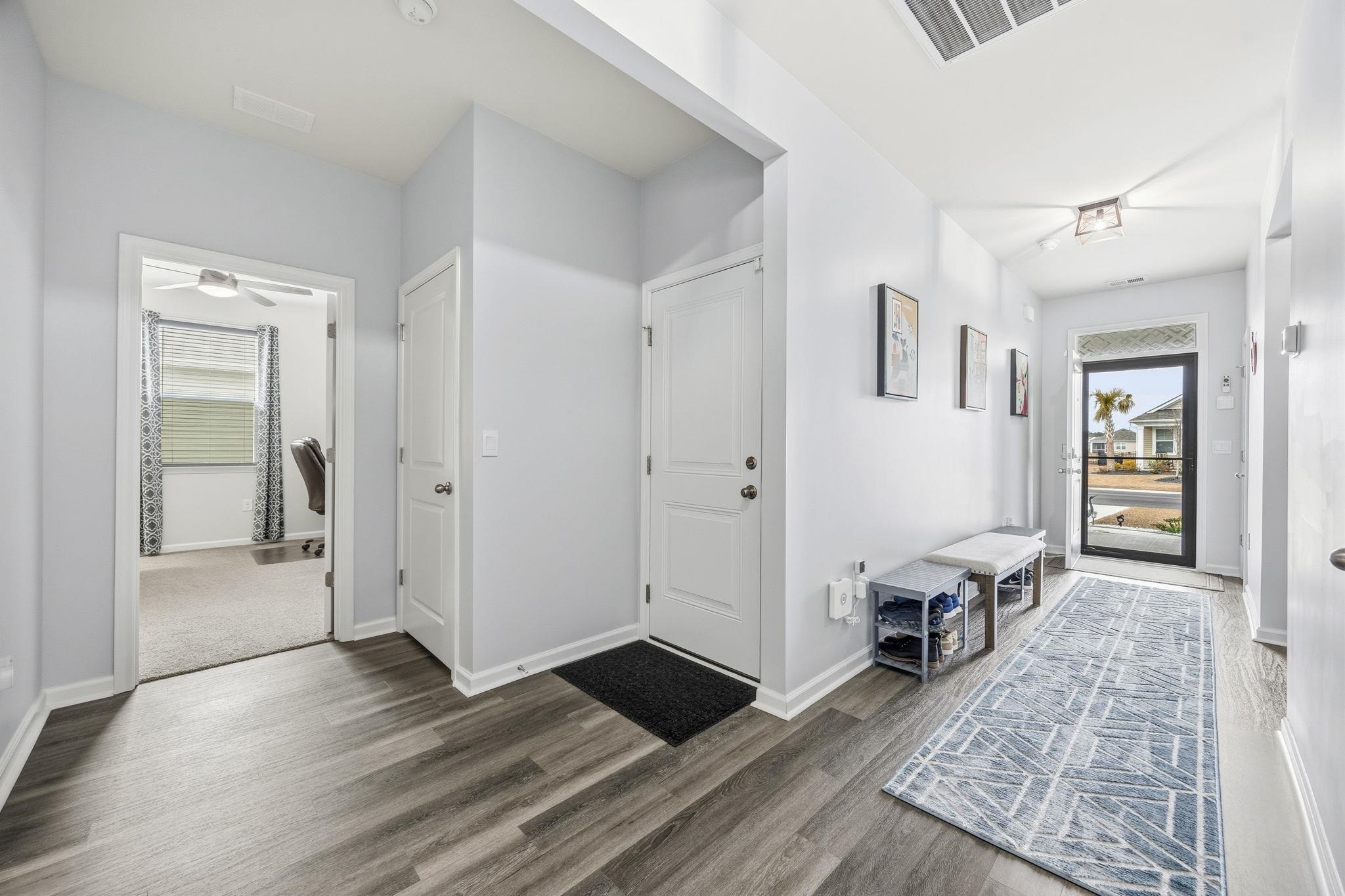 Nearly New Single-Story Home in Carolina Forest School District Move-In Ready Lightly lived in and nearly new, this single-story, split floor plan home combines modern construction with thoughtful upgrades without the need for post-move-in projects. Located just moments from Conway Medical Center, nearby medical offices, Coastal Carolina University, downtown Conway, and Myrtle Beach shopping and dining, it offers convenient, low-maintenance living in a sought-after community. The open-concept layout creates the perfect gathering space centered around a kitchen with granite countertops, oversized island, tile backsplash, walk-in pantry, Moen spot-resistant stainless steel faucet, motion-sensor under-cabinet lighting, under-sink water purifier, and new Sharp stainless steel appliances (2025). A convenient garbage disposal switch is added to the countertop for easy access. All cabinetry features brushed nickel hardware and soft-close hinges. Additional interior upgrades include remote-controlled ceiling fans throughout, custom window blinds, upgraded lighting, gutters, and an insulated garage door with overhead lighting. The private owner’s suite is tucked away for privacy and includes an oversized walk-in closet plus an additional smaller closet and en suite bath with double vanity and 5-foot shower. A spacious covered rear porch with roll-down privacy screen and ceiling fan in both the front and rear porch, along with a professionally landscaped yard with solar lighting, expanding the living space outdoors. Door window tints can be easily removed to increase natural sunlight. This move-in-ready single-floor home offers comfort, style, and efficiency near the desirable Carolina Forest location, just minutes from healthcare, schools, and shopping. Community amenities include clubhouse, pool, fitness center, and playground, providing a versatile lifestyle for a wide range of residents. *some photos have been virtually staged* *grass has been visibily enchanced in select photos*