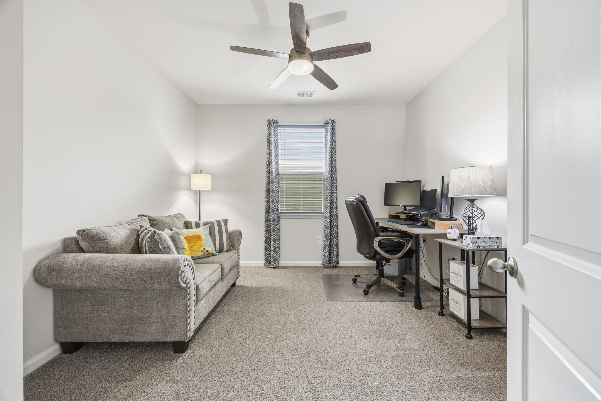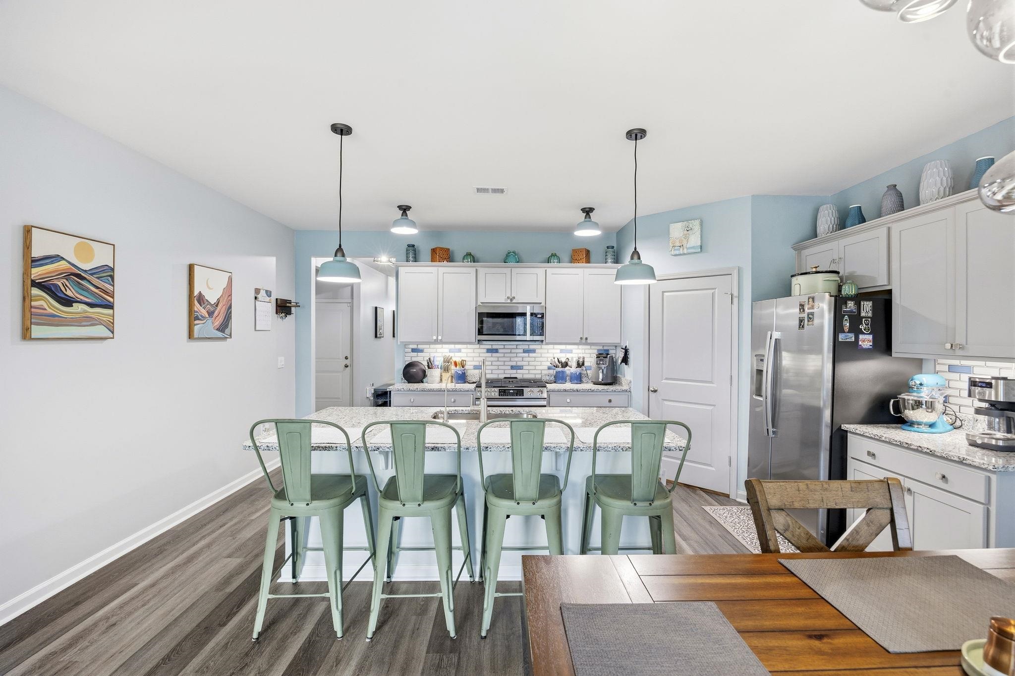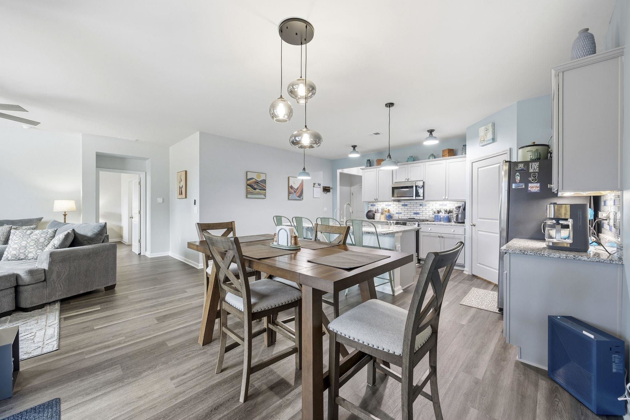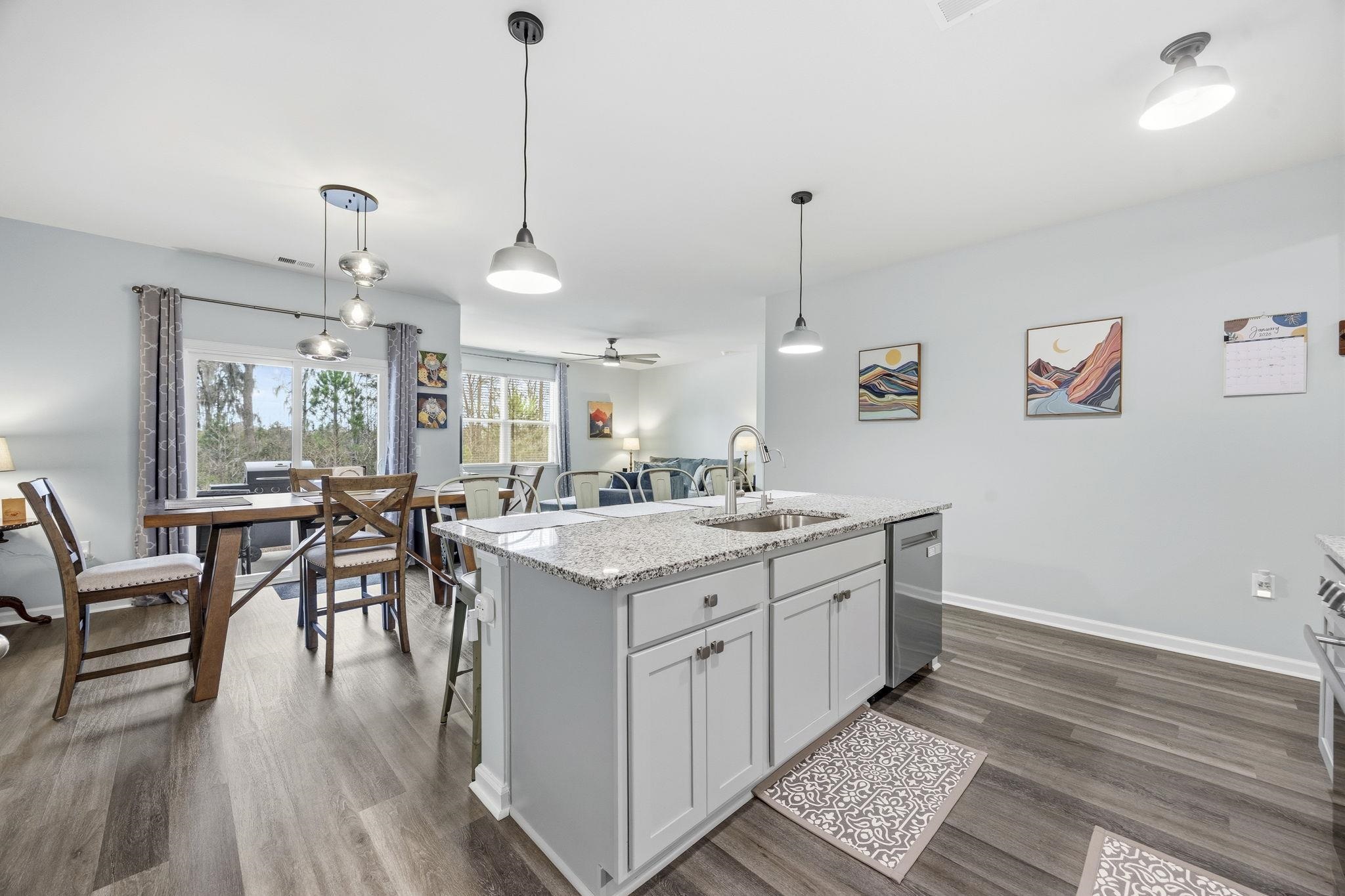 Nearly New Single-Story Home in Carolina Forest School District Move-In Ready Lightly lived in and nearly new, this single-story, split floor plan home combines modern construction with thoughtful upgrades without the need for post-move-in projects. Located just moments from Conway Medical Center, nearby medical offices, Coastal Carolina University, downtown Conway, and Myrtle Beach shopping and dining, it offers convenient, low-maintenance living in a sought-after community. The open-concept layout creates the perfect gathering space centered around a kitchen with granite countertops, oversized island, tile backsplash, walk-in pantry, Moen spot-resistant stainless steel faucet, motion-sensor under-cabinet lighting, under-sink water purifier, and new Sharp stainless steel appliances (2025). A convenient garbage disposal switch is added to the countertop for easy access. All cabinetry features brushed nickel hardware and soft-close hinges. Additional interior upgrades include remote-controlled ceiling fans throughout, custom window blinds, upgraded lighting, gutters, and an insulated garage door with overhead lighting. The private owner’s suite is tucked away for privacy and includes an oversized walk-in closet plus an additional smaller closet and en suite bath with double vanity and 5-foot shower. A spacious covered rear porch with roll-down privacy screen and ceiling fan in both the front and rear porch, along with a professionally landscaped yard with solar lighting, expanding the living space outdoors. Door window tints can be easily removed to increase natural sunlight. This move-in-ready single-floor home offers comfort, style, and efficiency near the desirable Carolina Forest location, just minutes from healthcare, schools, and shopping. Community amenities include clubhouse, pool, fitness center, and playground, providing a versatile lifestyle for a wide range of residents. *some photos have been virtually staged* *grass has been visibily enchanced in select photos*