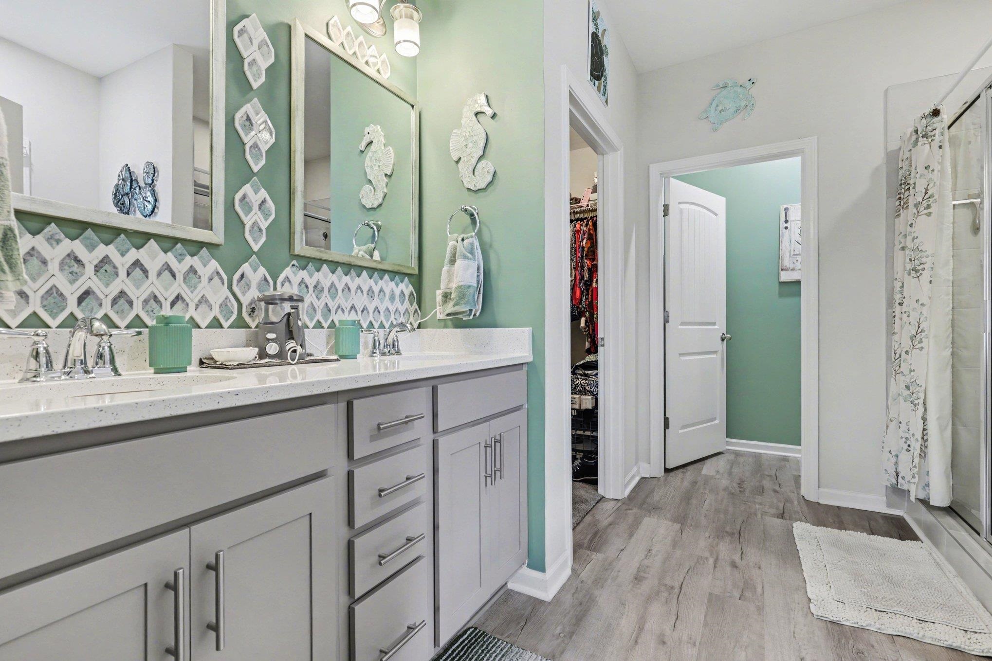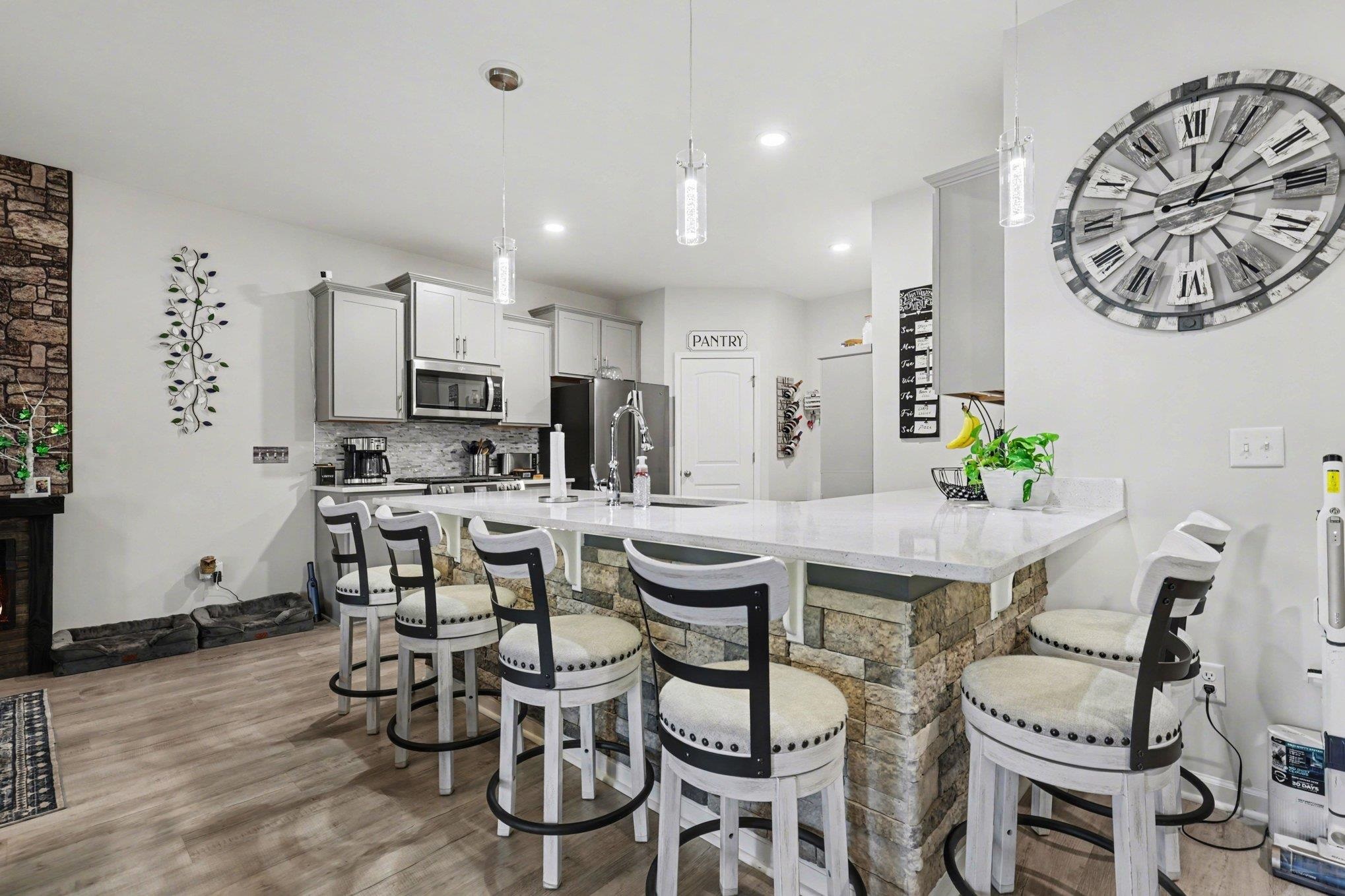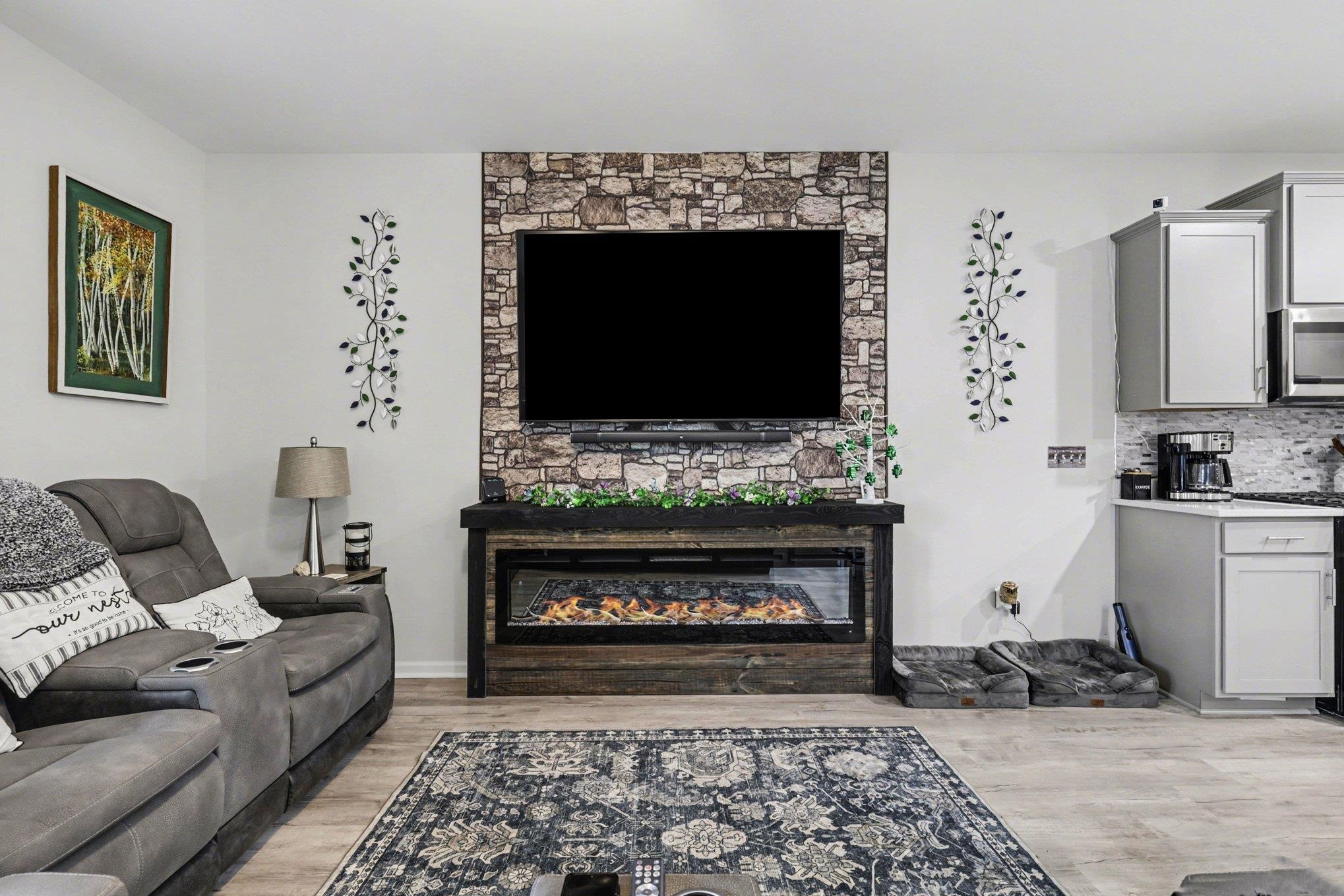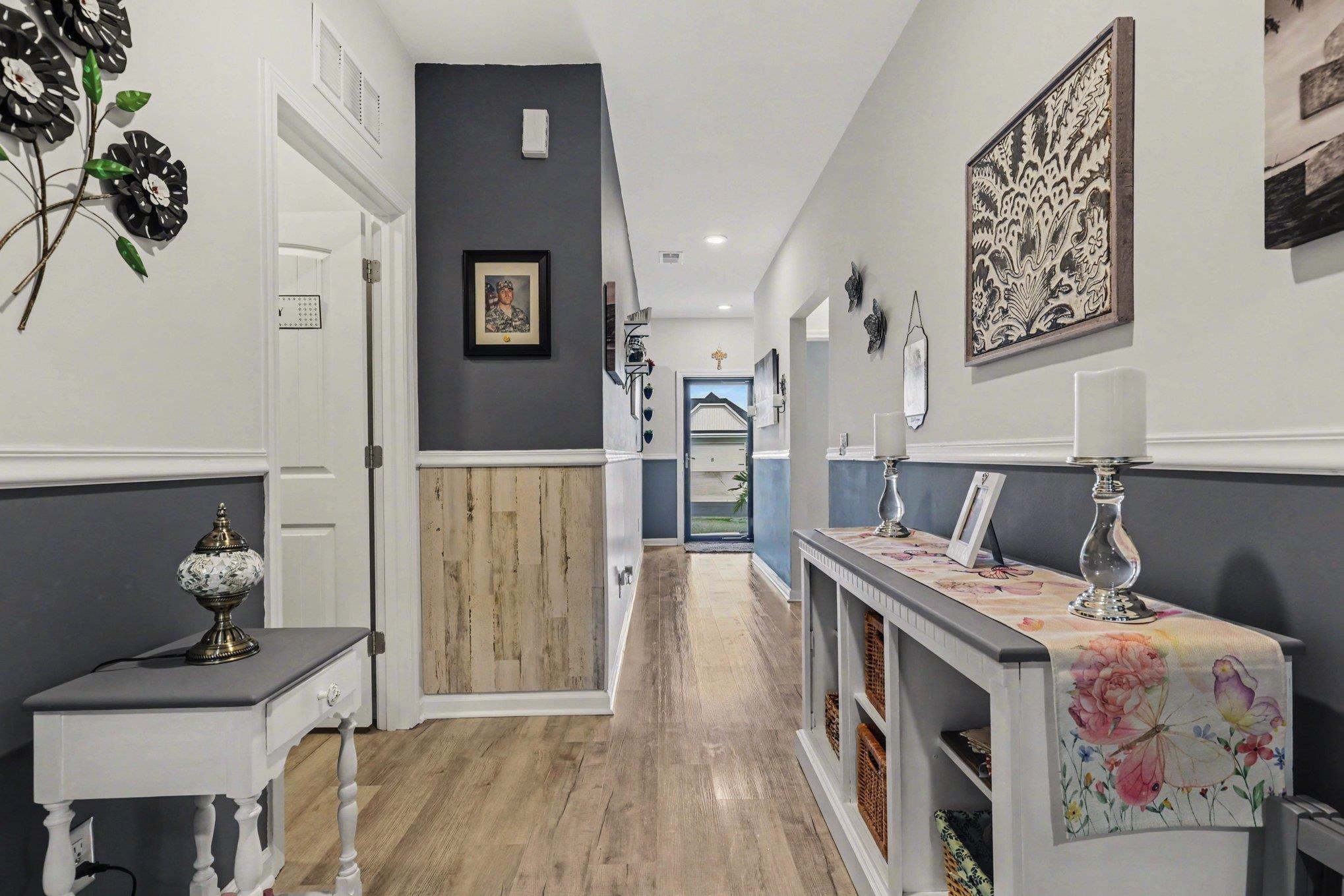 Welcome to this beautifully maintained home offering modern upgrades, open living space, and comfortable coastal living. This home features a bright and spacious open floor plan with luxury flooring throughout the and an exquiste feature wall, creating the perfect space for relaxing or entertaining. The kitchen is designed for both style and functionality with stainless steel appliances, ample cabinetry, a large peninsula with bar seating, pendant lighting, and updated track lighting. A spacious walk-in pantry provides excellent storage and convenience. The primary suite offers a peaceful retreat with a generous bedroom, large walk-in closet, and an ensuite bathroom featuring dual sink vanities and a beautifully tiled shower. Additional bedrooms provide flexible space for guests, a home office, or hobbies. Outdoor living is just as inviting with a screened-in back porch that provides the perfect place to enjoy the Carolina weather year-round. The garage features durable epoxy flooring for easy maintenance and a polished look. The garage has also been upgraded with its own air split system, making it ideal for a workshop, gym, or additional flex space. Additional upgrades include a brand new front door and smart switches throughout the home. With its thoughtful upgrades, open layout, and convenient location just minutes from North Myrtle Beach, golf courses, shopping, and dining.This move-in ready home is ready for you to enjoy. Buyer is respsonsible for verification.