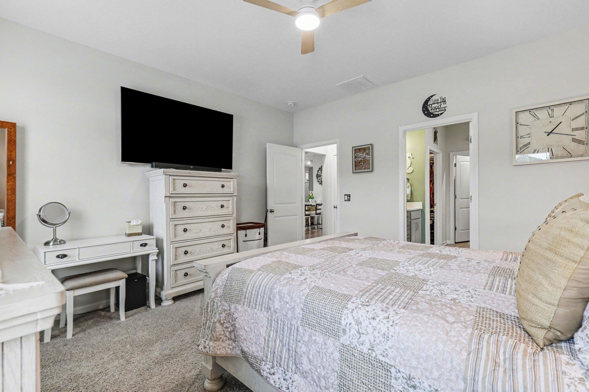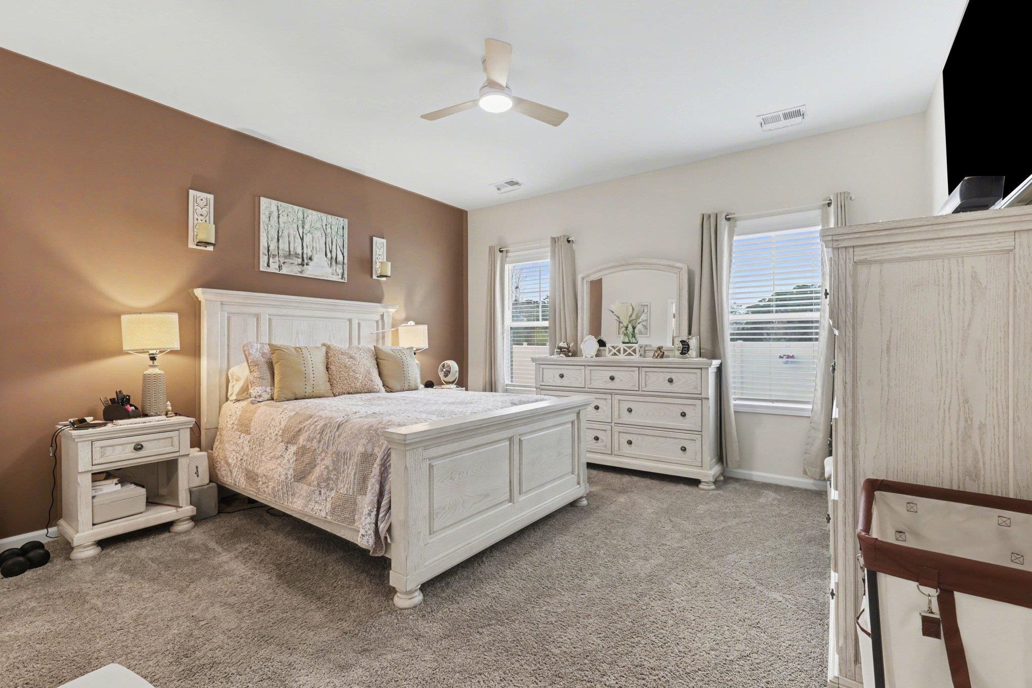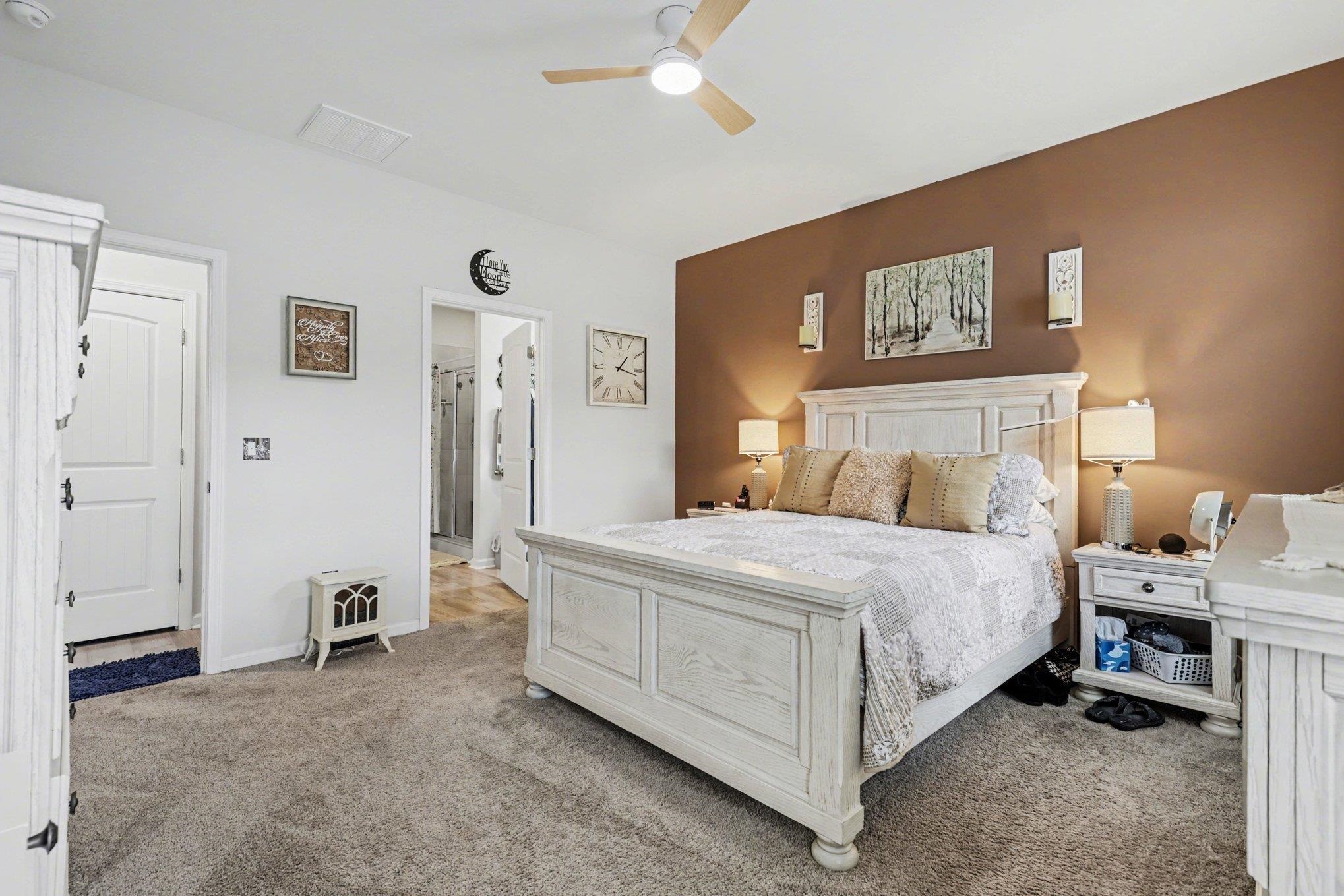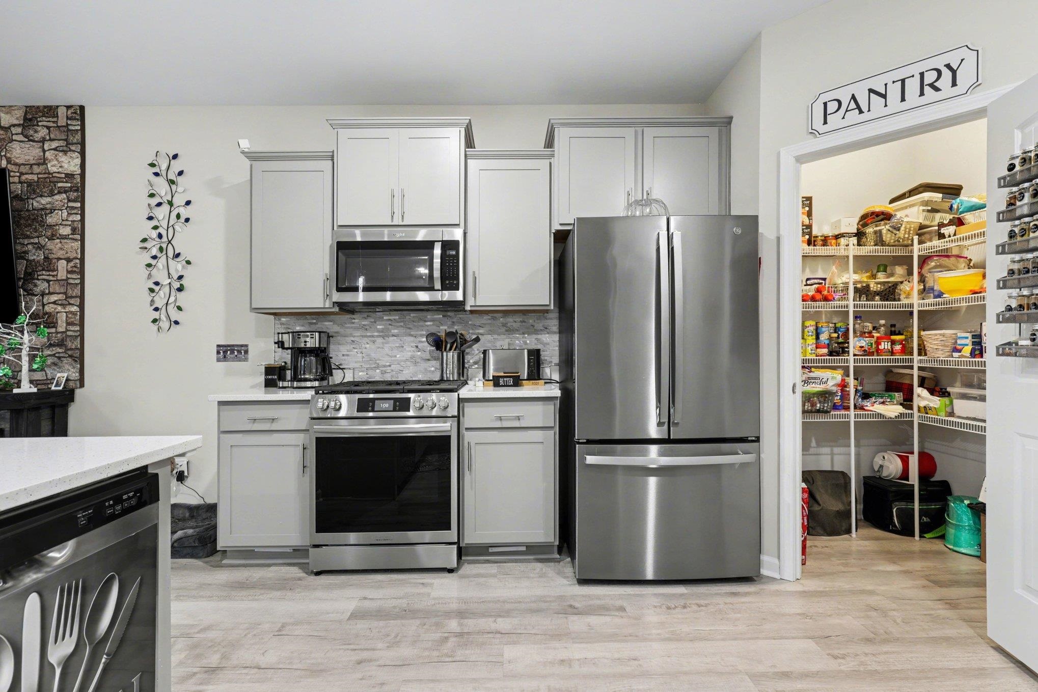 Welcome to this beautifully maintained home offering modern upgrades, open living space, and comfortable coastal living. This home features a bright and spacious open floor plan with luxury flooring throughout the and an exquiste feature wall, creating the perfect space for relaxing or entertaining. The kitchen is designed for both style and functionality with stainless steel appliances, ample cabinetry, a large peninsula with bar seating, pendant lighting, and updated track lighting. A spacious walk-in pantry provides excellent storage and convenience. The primary suite offers a peaceful retreat with a generous bedroom, large walk-in closet, and an ensuite bathroom featuring dual sink vanities and a beautifully tiled shower. Additional bedrooms provide flexible space for guests, a home office, or hobbies. Outdoor living is just as inviting with a screened-in back porch that provides the perfect place to enjoy the Carolina weather year-round. The garage features durable epoxy flooring for easy maintenance and a polished look. The garage has also been upgraded with its own air split system, making it ideal for a workshop, gym, or additional flex space. Additional upgrades include a brand new front door and smart switches throughout the home. With its thoughtful upgrades, open layout, and convenient location just minutes from North Myrtle Beach, golf courses, shopping, and dining.This move-in ready home is ready for you to enjoy. Buyer is respsonsible for verification.