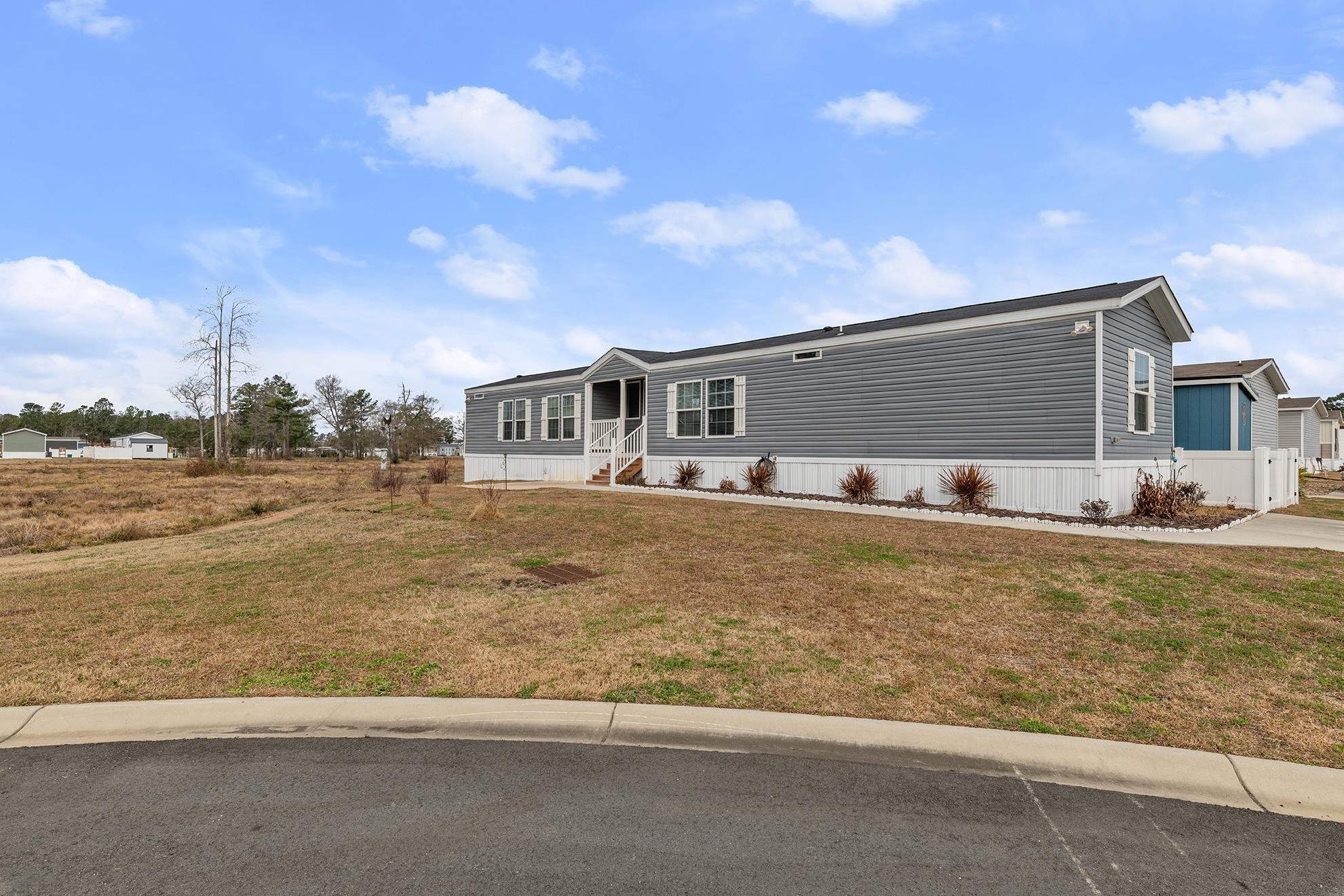 Only four years old and completely move-in ready, this single-wide manufactured home featuring appliances that convey is situated on a unique corner lot in a convenient Myrtle Beach location. Enjoy peaceful views with wildflowers in bloom during the spring and summer, creating a serene natural backdrop. The leased land fee includes lawn maintenance and trash pickup, offering a simple, low-maintenance lifestyle. Located near Myrtle Beach International Airport, the home is less than 5 minutes from Market Common and under 10 minutes to the beach. With quick access to Highway 17 Bypass near Coastal Grand Mall, you’re just minutes from downtown Myrtle Beach and more. Schedule a showing Today!