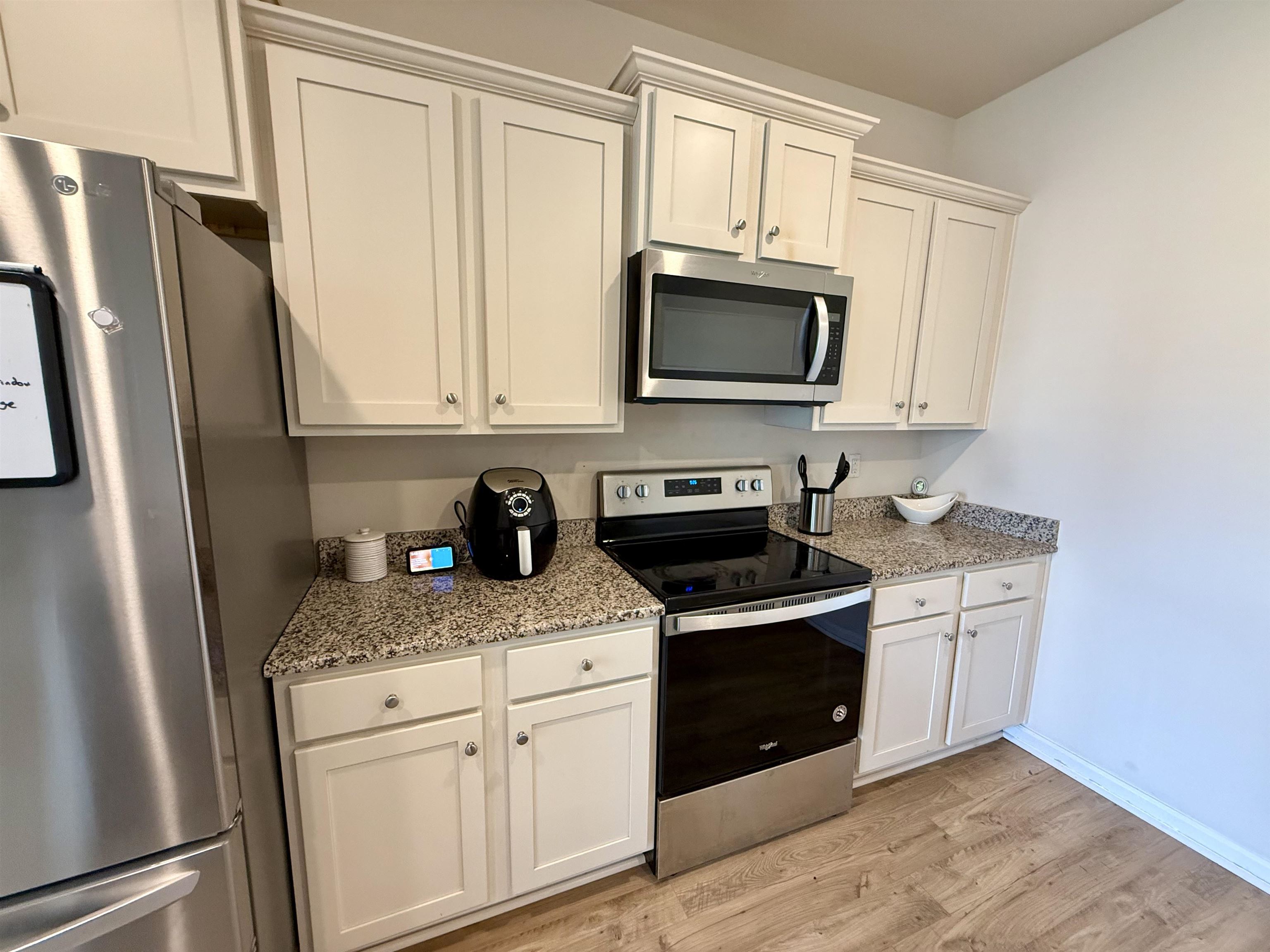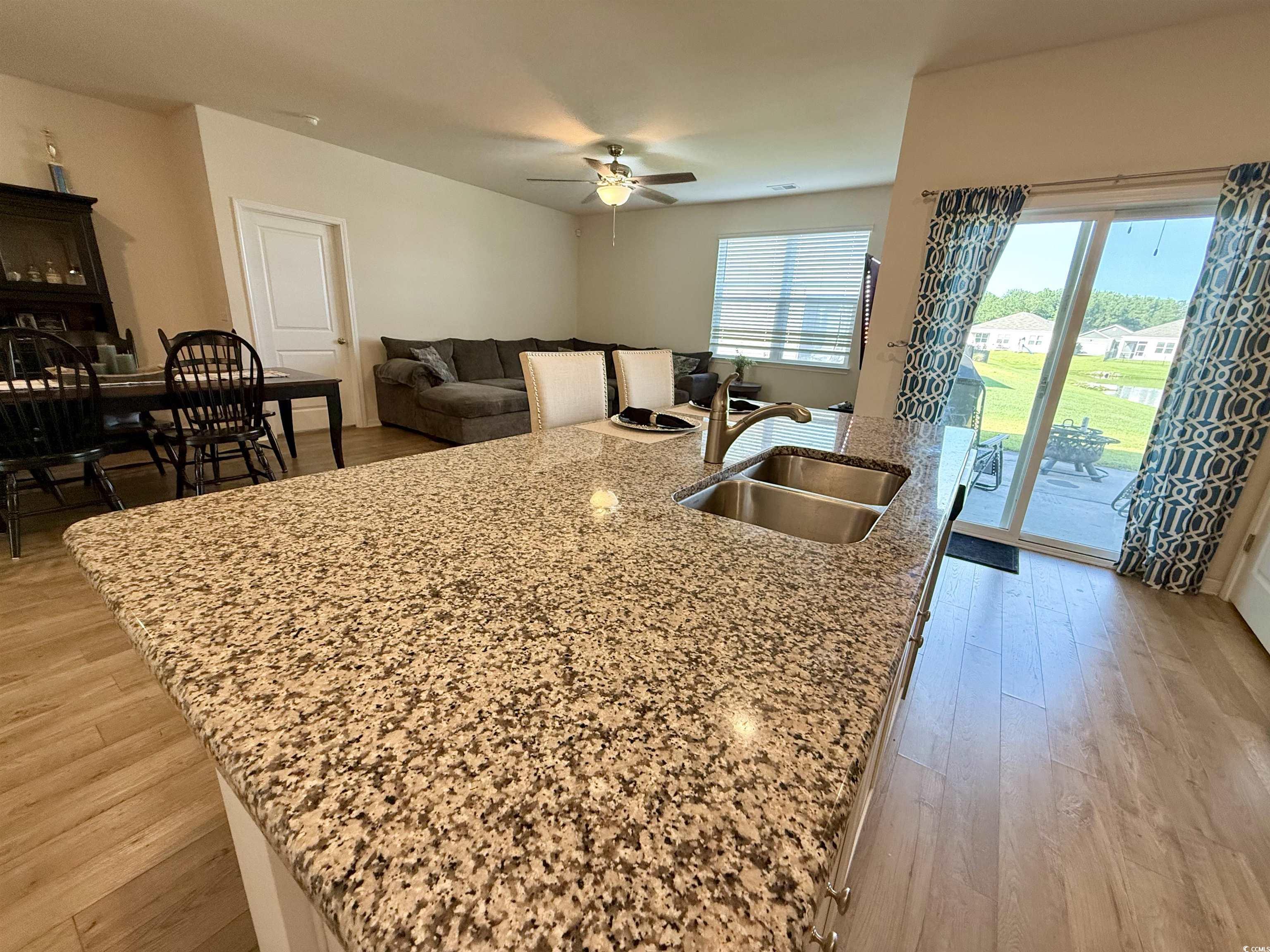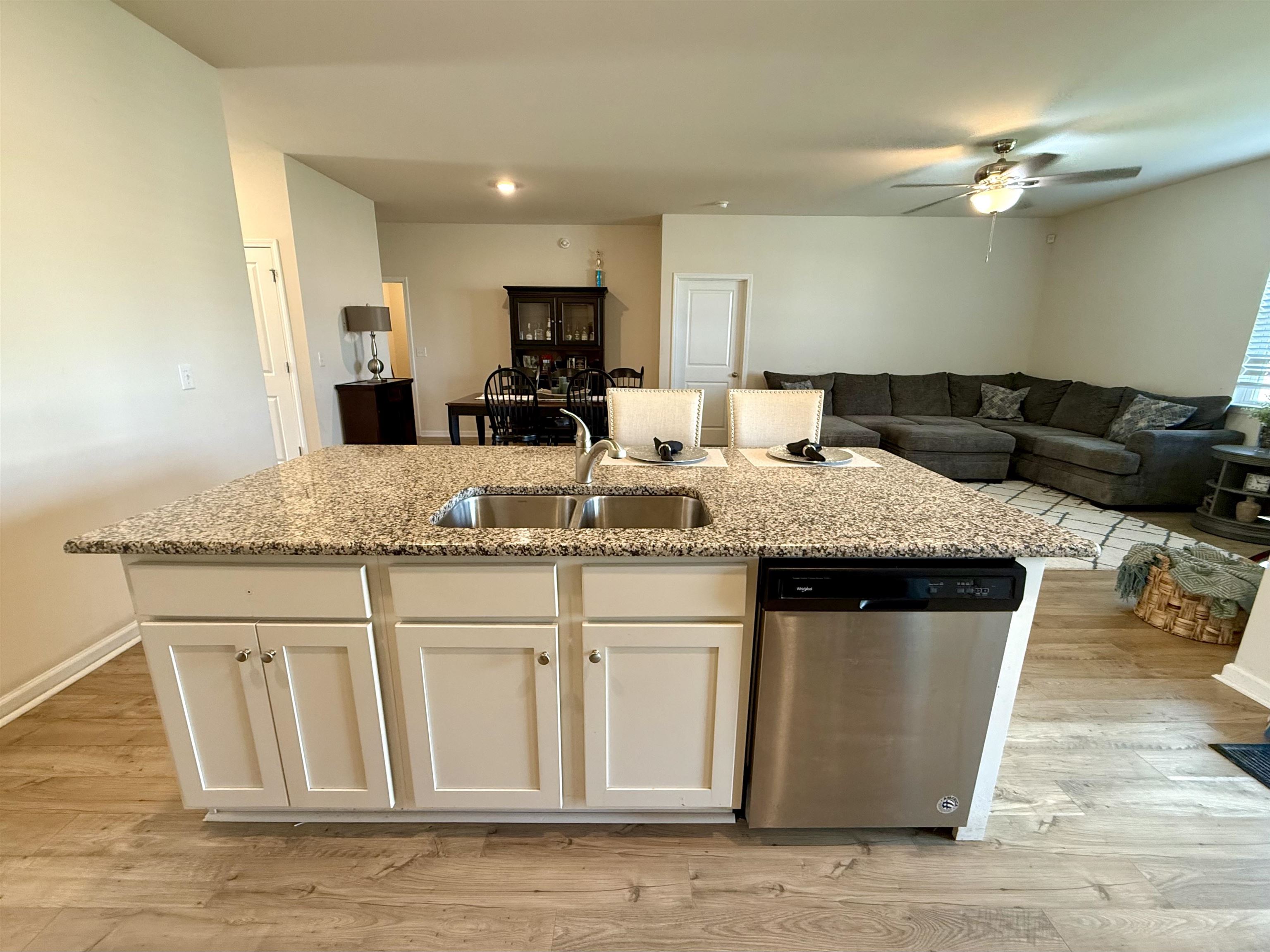 This 3 bedroom / 2 bathroom home has a split floorpan and features an open concept living area. The kitchen has a large island, which makes for a great breakfast bar, as well as stainless steel appliances, granite countertops, and a pantry. The primary suite has a double sink vanity and a large walk-in closet. There is also a dedicated laundry room and a 2 car garage. This home sits just a few feet from the pond, which you can enjoy from your covered back porch!