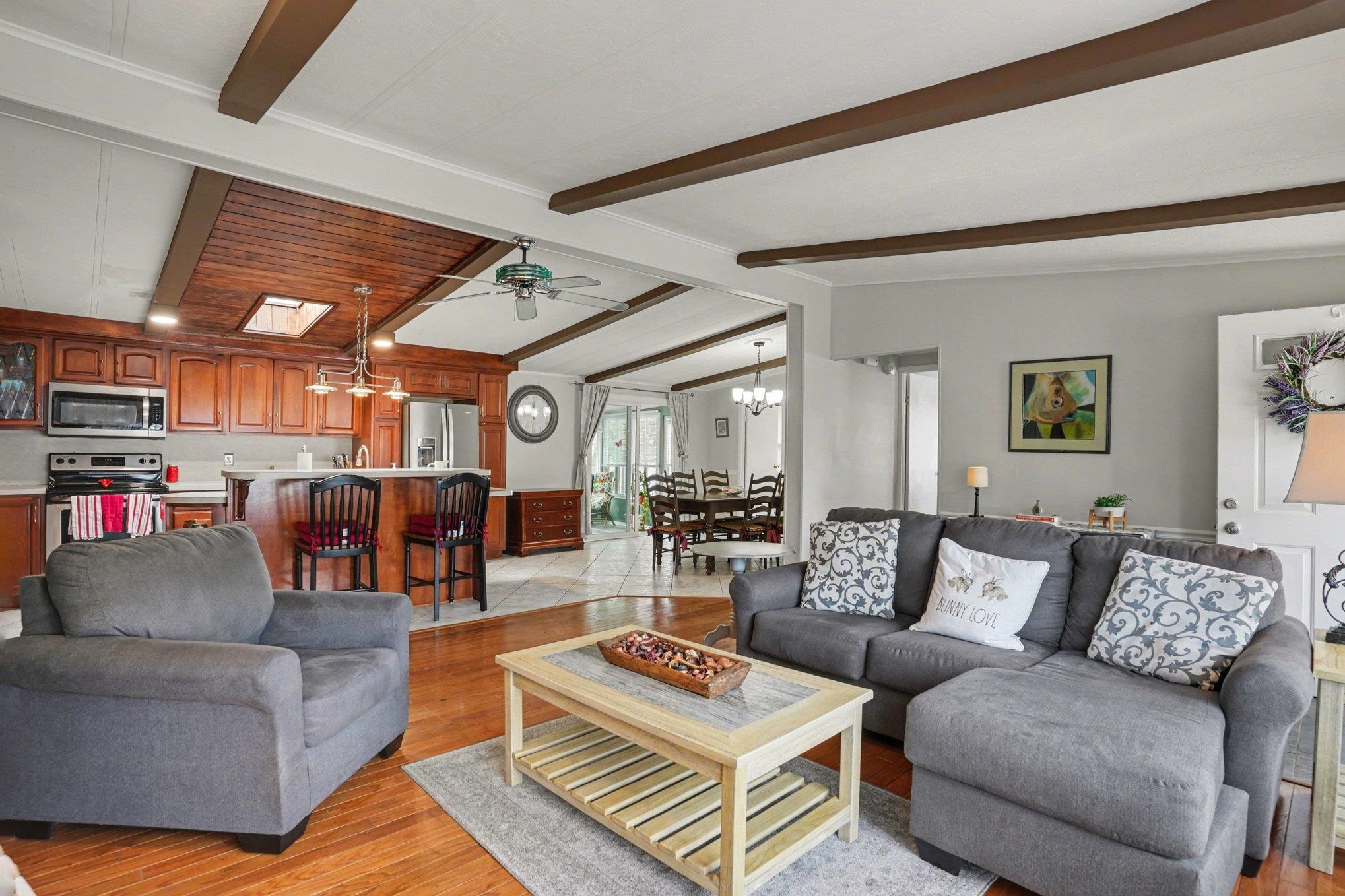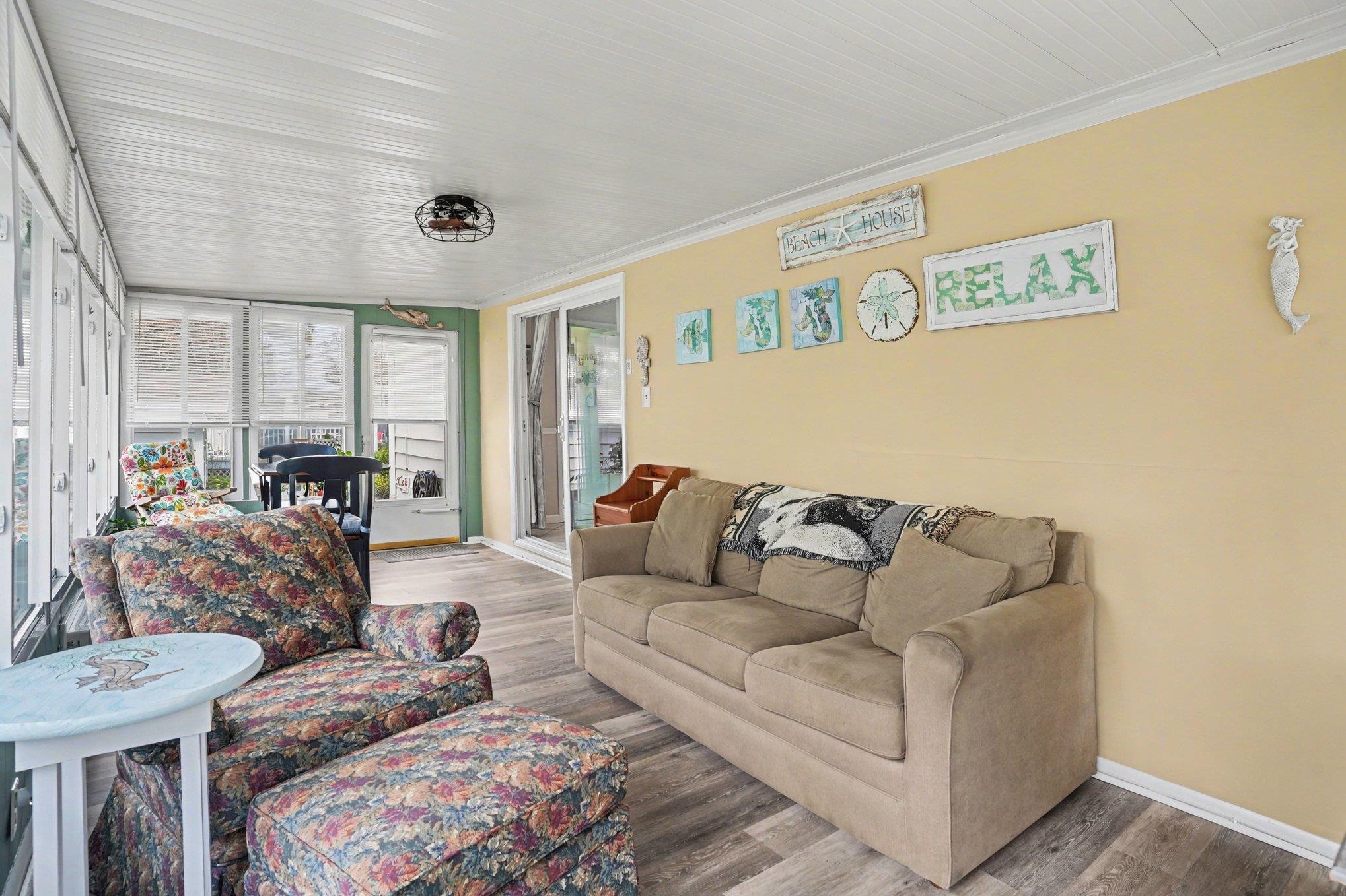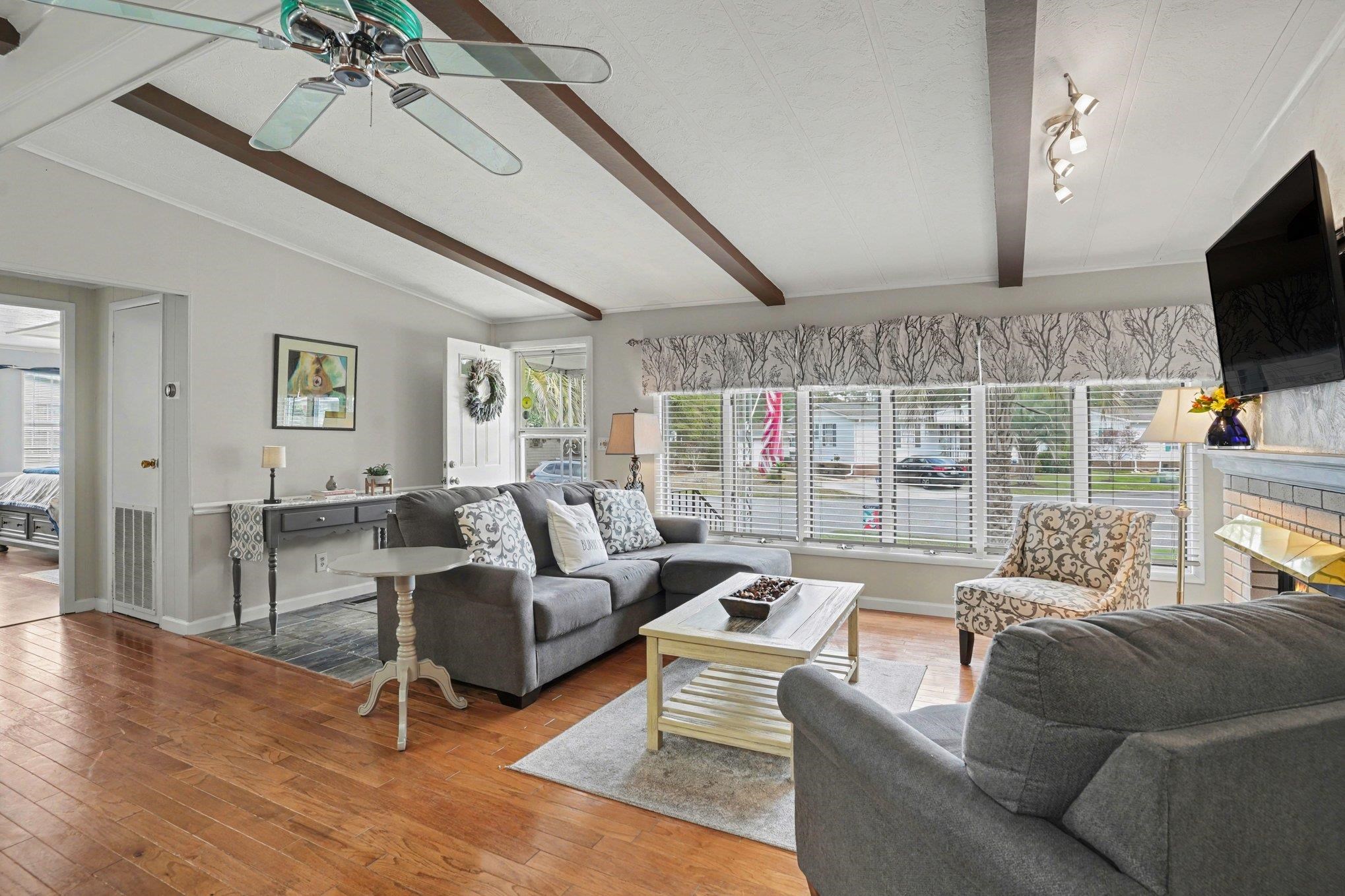 Live your best life in Ocean Pines, one of the Grand Strand's most vibrant 55+ communities — where the beach is just a golf cart ride away and every day feels like a vacation. Nestled in the heart of Murrells Inlet, this beautifully maintained 3-bedroom, 2-bath home delivers the true coastal lifestyle, with the famed Marshwalk's waterfront restaurants just minutes from your front door. Step inside and be greeted by soaring cathedral ceilings and an abundance of natural light that makes every room feel open and airy. The thoughtfully designed open-concept layout connects the living, dining, and kitchen areas seamlessly — ideal for entertaining or simply relaxing in style. The living room's elegant electric fireplace adds warmth and ambiance, while tile floors and wood floors throughout the main living spaces are as practical as they are attractive. The sun-drenched kitchen is a chef's delight, featuring a brand new stainless-steel refrigerator and microwave, beautiful Kraft Maid cabinetry with pull-out drawers in the cabinets and pantry, and generous storage throughout. Sunlight pours into this space all day long, making it one of the most inviting rooms in the home. Slide open the dining room doors and discover your own private retreat — an expansive 200+ square foot Carolina room outfitted with a new AC unit (2024) and waterproof wood laminate flooring (2025), perfect for year-round enjoyment. When you're ready for fresh air, the back deck offers a quintessential Southern escape with a tranquil wooded backdrop, a peaceful stream running through the property, and abundant wildlife. The lush, oversized lot is beautifully landscaped with mature trees and plantings, and an in-ground sprinkler system keeps it all looking its best. The split floor plan ensures privacy for all. The primary suite is a serene sanctuary, leading directly into a well-appointed en suite with double sinks, a walk-in shower, and convenient laundry access. On the opposite side of the home, two comfortable guest bedrooms share a second full bath that feels like a private spa — complete with a jetted Jacuzzi tub and a skylight that floods the room with natural light. Stay comfortable and connected with a Ring doorbell and Nest thermostat included. Ocean Pines is more than a neighborhood — it's a lifestyle. Residents enjoy two pools, two clubhouses, a fitness center, and a packed social calendar featuring cards, trivia, bingo, bocce, cornhole, and community-wide parties and events. The beach, shopping, dining, entertainment, and medical facilities are all just minutes away. An oversized shed freshly painted in 2026 rounds out the package, giving you plenty of room for all your beach toys and gear. Easy living meets a prime location — this one won't last.