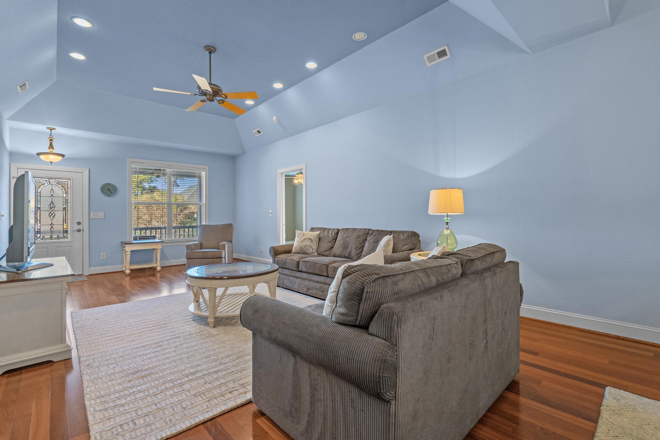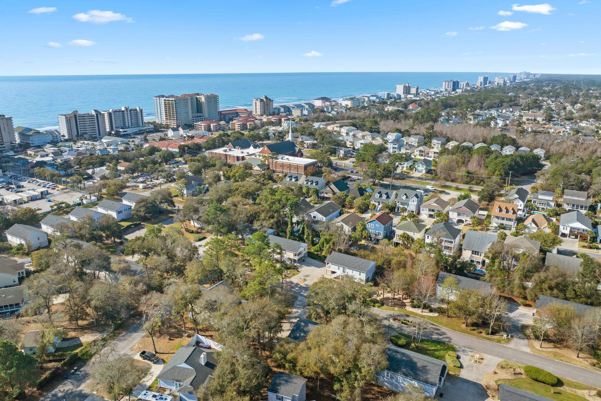Location, location, location! Approximately .3 mile (three tenths!) walk or golf cart ride to the beautiful Atlantic Ocean! Main Street OD with various shops, night life, SOS events, eateries, holiday parades & fun activities is just 5 blocks to the North. Only 3 blocks away is McLean Park with tennis & pickleball courts, playground, picnic area, lake, walking trails & city events! Hop on Robert Edge Parkway & Hwy 31 to venture South to Myrtle Beach proper or North to the historic Little River SC fishing riverfront for fresh seafoood or try your luck on the Big M Casino Boat! This unique raised beach house has 4 bedrooms, 3 upstairs and 1 downstairs on ground floor which is a completely separate entity with large bathroom & walk-in closet. Great for teens, in-laws, guests, game room or whatever your needs would be! Heated storage room downstairs is large enough for golf cart storage & houses the utility box and a special water manifold system. Upstairs as you enter from the cozy covered front porch, the bamboo flooring, high tray ceilings with recessed lighting, specialty "orange peel" wall finishings throughout catch your eye right away! The 11x14 primary bedroom located to the left of family room has ensuite bath with double vanities, jetted tub, separate shower & large walk-in closet. This split bedroom plan places the other two bedrooms & separate bath to the right of the living area. The huge 11.5 x 18 kitchen with stainless steel appliances is a cook's delight with 42-inch cabinets, breakfast bar & adjacent dining area with its separate tray ceiling & lovely lighting. The laundry room with full size washer & dryer is just off kitchen but hidden from view by pocket door. The large screened back porch allows you to breathe in the fresh ocean air or to sit and relax as you view your nicely shaded & private back yard with irrigation to water your flower or vegetable garden or if you prefer, there is room to construct a pool! More than ample concrete parking area under the house provides room for outdoor seating & grilling and an outdoor shower at rear of storage room provides hot & cold water for rinsing off that lovely beach sand! Prime central location & well maintained, this gem of a beach house is ideal for the second home or primary residence! This area is highly sought after so don't delay in making appointment to view!
