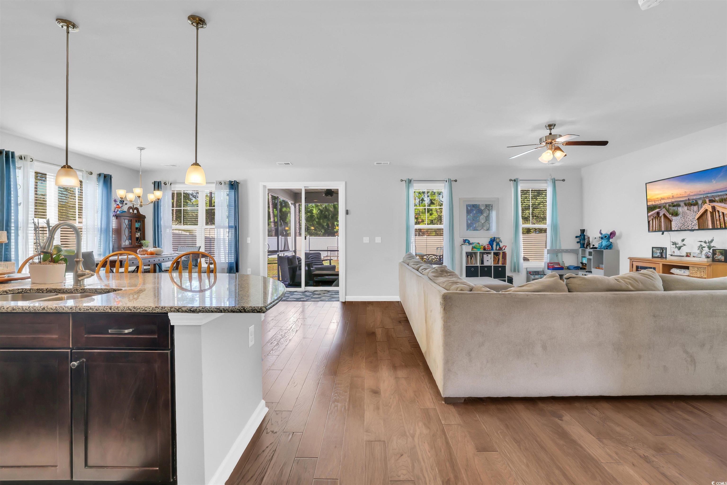 Situated in the heart of the highly sought-after Carrara-Tuscany subdivision, this spacious two-story home offers the perfect blend of comfort, style, and functionality. This McKenzie floor plan features four generously sized bedrooms and a functional, open layout ideal for both everyday living and entertaining. The kitchen boasts stainless steel appliances and a huge granite island, perfect for cooking, gathering, and casual meals. Additional builder upgrades include a fully screened rear porch, ceiling fans throughout the home, and a fully fenced backyard. The large, private backyard offers plenty of space for outdoor activities, pets, or future additions. You're also within walking distance to all of the amazing amenities the neighborhood has to offer, including a community pool, clubhouse, and fitness center. Inside, enjoy a blend of hardwood and tile flooring in the main living areas, with cozy carpet in the bedrooms. This home combines thoughtful upgrades, style, and comfort in a prime Myrtle Beach location.