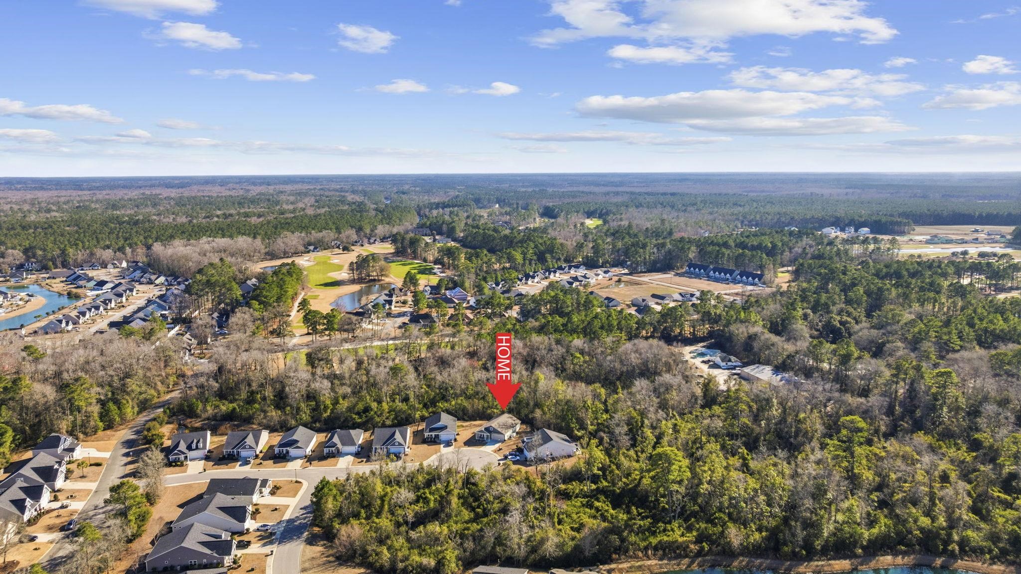 Welcome to easy coastal-Carolina living in the sought-after Cottages at Shaftesbury, a golf course community known for its peaceful setting, wide open spaces, and relaxed lifestyle. Tucked away in a quiet cul-de-sac, this charming 2 bedroom, 2 bath home offers a 2-car driveway, beautiful curb appeal with a brick accent wall on the exterior, and the privacy and serenity so many buyers are searching for. Step inside to an inviting open-concept layout featuring durable LVP flooring throughout the main living areas, creating a seamless and stylish flow. The kitchen is both functional and elegant with stainless steel appliances, granite countertops, a large granite kitchen island with breakfast bar, pantry, under-cabinet lighting, and ample workspace for cooking and entertaining. All blinds convey, and the washer and dryer are included, making this truly move-in ready. The split bedroom layout provides separation and privacy for owners and guests. The spacious primary suite is a relaxing retreat with a tray ceiling, walk-in closet, and a private ensuite bath featuring a double sink vanity and a tile walk-in shower with built-in bench. Step outside to the Carolina room, perfect for morning coffee or unwinding in the evening. The backyard offers added functionality with a retaining wall, providing both structure and visual appeal. Enjoy low-maintenance living as the HOA handles lawn care and irrigation, supplied by the community pond system, so you can spend less time maintaining and more time enjoying the lifestyle you moved here for. Residents also enjoy access to a community pool and the beautiful Shaftesbury Glen Golf Course, and the best part is that a transferable golf membership is included with the HOA. Imagine morning tee times, afternoon swims, and peaceful evenings away from the crowds, yet still close to shopping, dining, and the beaches. If you’ve been waiting for a golf community home without the upkeep, this is it. Golfers, bring your clubs and schedule your showing today!