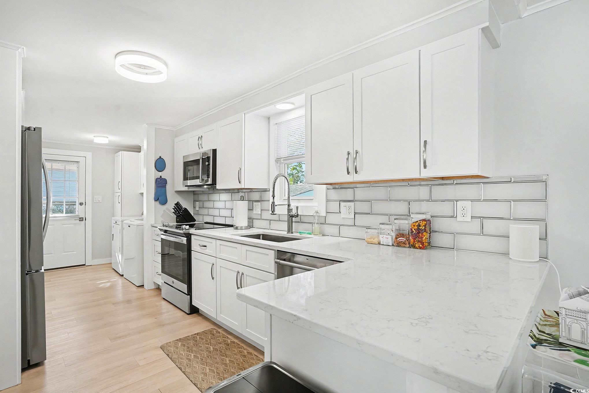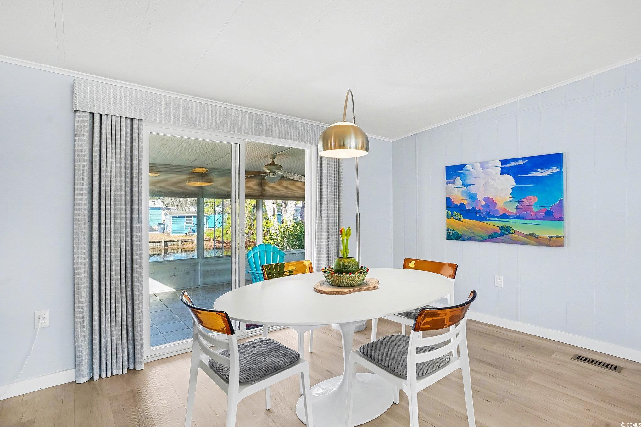 Remodeled with a tranquil pond view! Discover coastal living in this beautifully updated 2BR/2BA manufactured home in Ocean Pines (55+) in Garden City Beach, SC. Situated on leased land just minutes to the beach and everyday conveniences, this home blends comfort and low-maintenance living. Inside, a full remodel showcases LVP flooring throughout, new cabinetry, quartz counters (kitchen & baths), modern shower/tubs, sleek fixtures & sinks, fresh window treatments, and stainless steel appliances. The kitchen is perfect for cooking and entertaining, while the private primary suite offers a walk-in shower and ample closet space. Ceiling fans in both bedrooms enhance year-round comfort. Relax on the spacious screened porch overlooking the pond—the ideal spot for morning coffee or sunset wind-downs. Ocean Pines features a clubhouse, pool, fitness center, and organized activities, plus beautifully maintained grounds. Close to shopping, dining, golf, medical, the MarshWalk, and area attractions including Brookgreen Gardens.