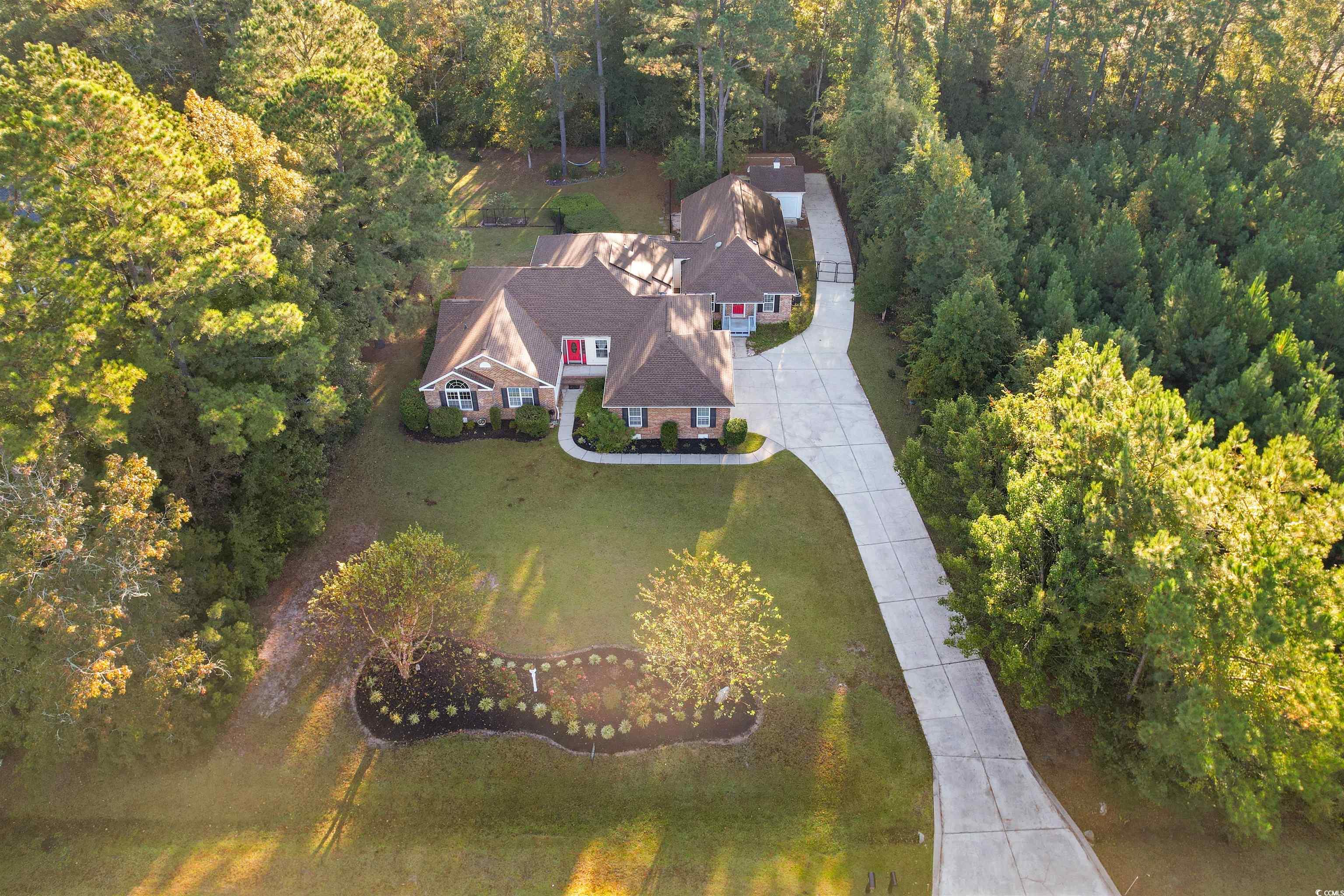Come explore this peaceful and serene country estate in the Green Meadow Farms Community, complete with "Mother-in-Law" attached Cottage. Welcome your guests into the cozy living room with fireplace and vaulted ceiling. Off to the left of the living room, you will find 2 spacious guest rooms, large closets and first hall bathroom. Located on the rear side of the home is The Primary ensuite which includes double sinks, shower, walk-in soaking tub, walk-in closet. Make your way thru the private exit leading you into the Carolina Room, exterior patio and fenced in yard. Walk full circle thru the Carolina Room into the oversized kitchen-great room combo with floor to ceiling windows filling this space with natural light. Enjoy expansive granite countertops, bar height counters as well as view thru cabinet-island peeking into the formal dining room for endless entertaining possibilities. Stainless steel appliances, gas stove, two pantry closets, half bath and laundry room. Beyond the kitchen-great room, you will find the 'mother-in-law' cottage complete with full kitchen, secondary living room, 4th bedroom, third full bathroom and large walk-in closet. This cottage has its own front and rear entrances, plus separate fenced in yard, golf-cart shed and double wide carport. This cottage can be locked off from the heart of the home to accommodate a multi-family situation or rental. Sitting on a full acre filled with mature wooded and landscaped areas with a great deal of privacy; there is ample lawn area to add that pool you've always wanted. Loads of storage space with three attic entries and attached 2-car garage. The Solar Wind System carries no monthly fees and can assist to offset a traditional monthly electric bill. Park and store your RV and other big toys here. Nearly 4,000 heated square feet; this home has had many recent updates including full roofing system, walk-in tub, granite kitchen countertops, gas/propane stove, hvac, water heater, converted porch to insulated Carolina Room and expansion of the 'mother-inlaw' cottage. Minutes to the Waccamaw River and other outdoor enthusiast attractions. Conveniently located to Downtown Conway, area Colleges and major highways. Reach those popular Myrtle and North Myrtle Beach destinations. Arrive to the Myrtle Beach International Airport (MYR) in thirty-five minutes, door to door. Your new adventure awaits! Square footage is approximate and not guaranteed; Buyer to verify.