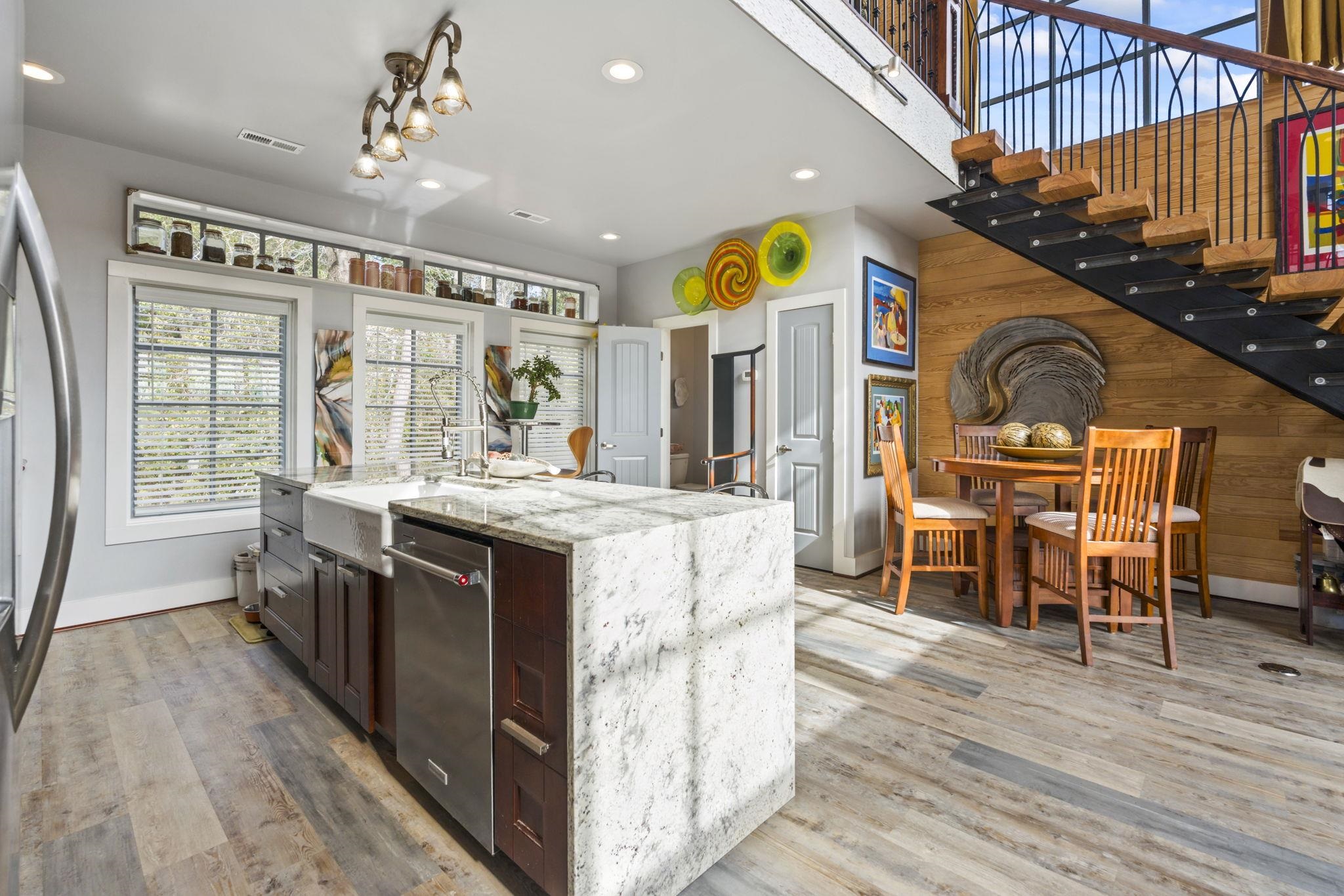 Experience unmatched marsh and water views in this custom-crafted raised beach home just moments from downtown Georgetown, marinas, waterfront dining and the scenic Harborwalk. This 3 bedroom, 2.5 bath residence was built in 2024 with no HOA, combining superior coastal construction with thoughtful architectural design and premium finishes. Inside, abundant natural light fills the living space through dramatic 8-foot arched windows. A private rear entry with double French doors frames stunning marsh and saltwater creek views and creates a seamless connection to the elevated porch and outdoor living spaces. Mohawk waterproof luxury vinyl flooring, all-wood soft-close cabinetry, and waterfall granite kitchen countertops anchor the kitchen, accented by a striking oak bourbon barrel detail and top-tier KitchenAid appliances. The custom engineered floating staircase with thick cypress treads and iron balusters creates a signature design statement. The primary suite features marsh views and a spa-inspired bath with oversized glass block shower, soaker tub, and premium waterproofing. Built for resilience and longevity, this home includes missile-rated hurricane windows and doors, steel roof, concrete composite siding, concrete block garage flooring, dual HVAC systems, gas tankless water heater, and durable decking with composite materials and aluminum railings. Enjoy elevated outdoor living, an outdoor shower, professionally landscaped yard with Bermuda sod and paver walkways. Additional interior comfort includes washer/dryer hookups on both levels and Cheyenne Shaker plank interior doors. Minutes to Georgetown’s cultural, shopping and entertainment offerings and an easy drive to Mount Pleasant and Charleston. An adjacent .29-acre lot is also available for purchase, offering a rare opportunity for expansion, additional privacy, future development, or long-term investment value. This is a unique chance to secure a truly custom coastal residence with panoramic marsh views and unmatched construction quality.