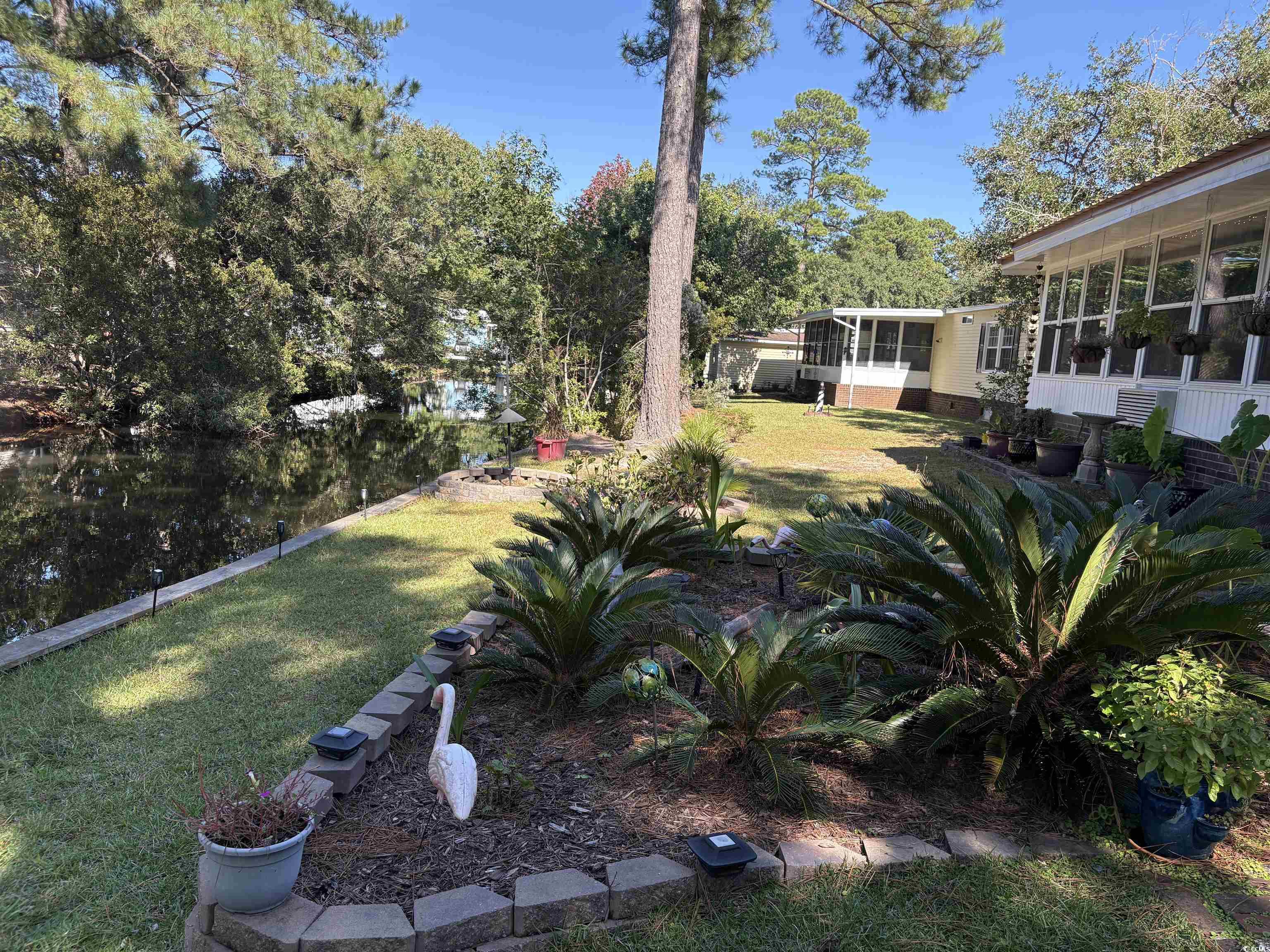 Coastal living at its best! This beautifully renovated 2-bedroom, 2-bath home is move in ready and just a short golf cart ride to the beach, shopping, and local restaurants. Step inside to find a bright, open layout featuring a galley kitchen with stainless steel appliances and a gas stove, a split-bedroom floor plan, and a spacious primary suite with a walk-in shower. Relax in the Carolina Room overlooking the water, or enjoy the outdoors from the beautifully landscaped yard. A carport and outdoor storage shed add convenience and functionality. Located in a desirable 55+ community offering two clubhouses, two pools, and a fitness center, this home is perfect for enjoying an active, low-maintenance coastal lifestyle