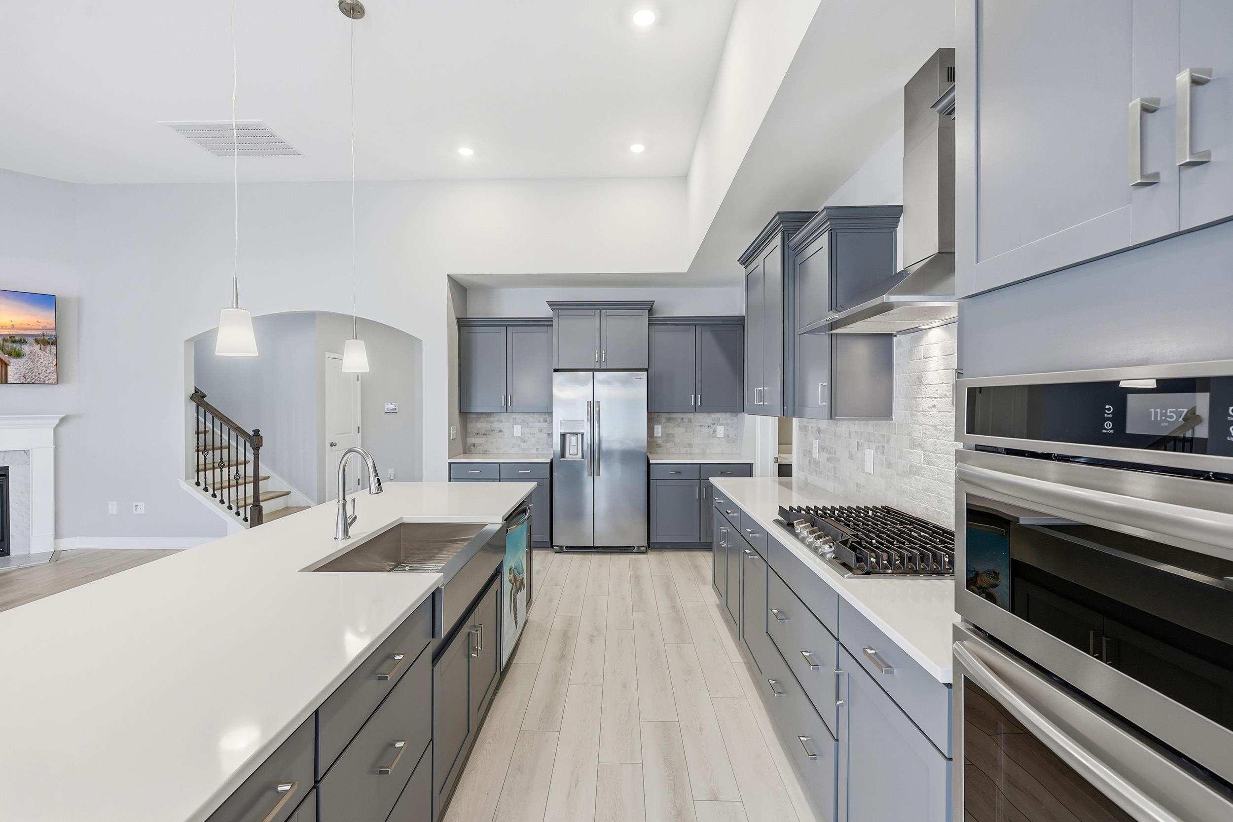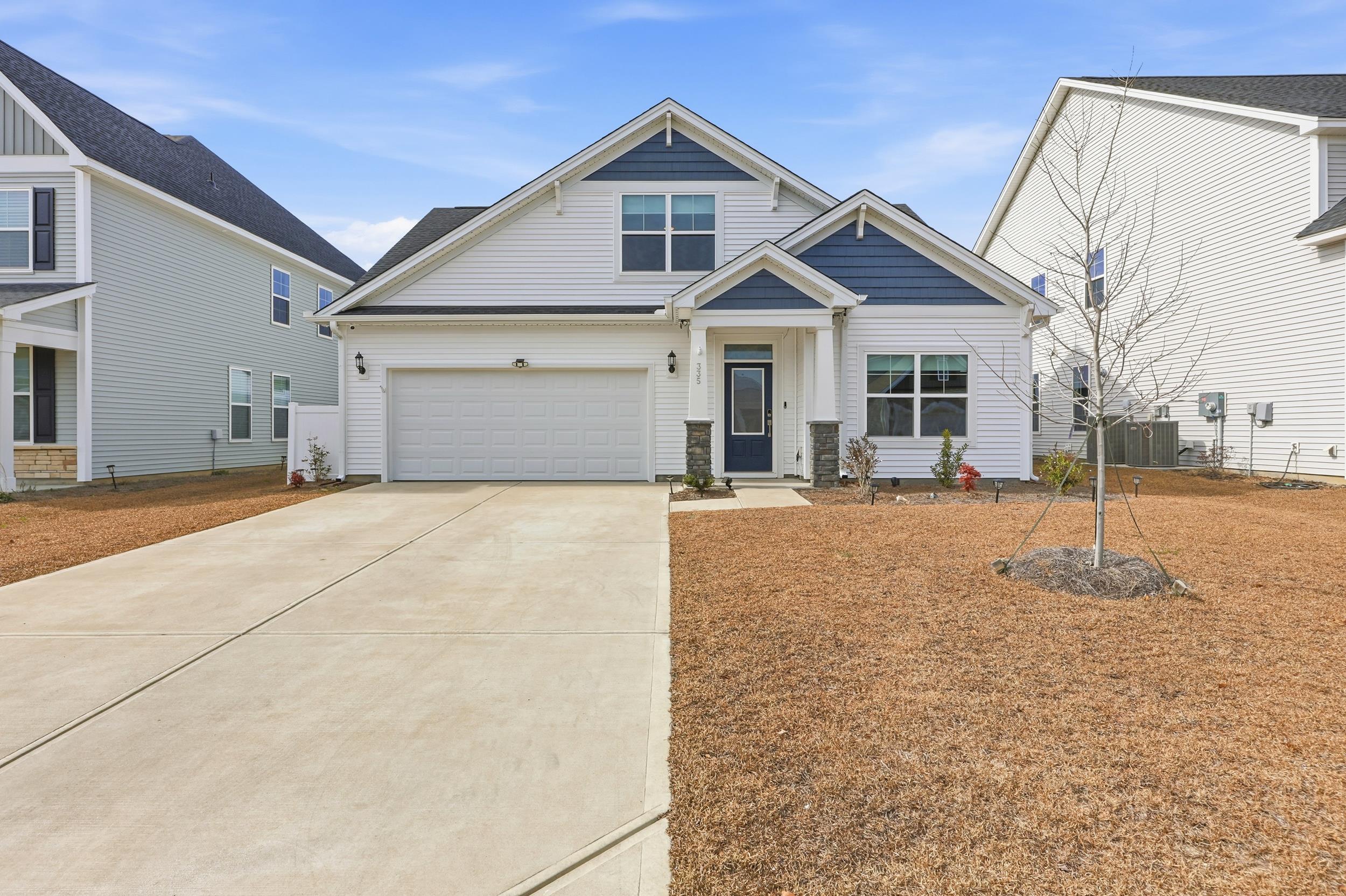 PRICE GENEROUSLY IMPROVED & 1 YEAR HOME WARRANTY INCLUDED! This practically brand-new, beautifully designed 3-bedroom, 3 full-bath home offers a cozy indoor gas fireplace, a wood staircase, and elevated finishes throughout. The living room offers a 70” television that conveys. Located in the highly sought-after Arcadia community, this home features the desirable Fullerton plan with upgrades comparable to the model home. The gourmet kitchen is a chef’s dream, showcasing stainless steel Frigidaire appliances (refrigerator conveys), soft-close Greyhound cabinetry, a gas cooktop with hood, built-in wall oven and microwave, and an oversized stainless steel farmhouse apron sink, ideal for everyday living and entertaining. Quartz kitchen countertops and an open-concept floor plan further enhance the home’s modern appeal. The primary suite, located on the main level, provides a spa-like retreat with an upgraded 5’ x 5’ tiled shower, frameless glass enclosure, and a private water closet. Also on the first floor is an additional bedroom and full bath, perfect for guests or a home office. Upstairs, you’ll find the third bedroom with its own full bath, tucked away for added privacy. Additional highlights include framed bathroom mirrors, double walk-in attic storage, a spacious laundry room with sink that can also function as a butler’s pantry, custom roll-down blackout window shades, and washer and dryer conveying. Enjoy outdoor living on the screened-in patio with manual sun-shade, epoxy flooring, a fully fenced backyard, ADT smart home security system with two cameras, permanent Bosso outdoor lighting with smart app control, and a full irrigation system for added convenience and curb appeal. The amenity center, fitness center, and pool are just steps away, offering unmatched convenience. Community amenities include pickleball courts, firepit, playground, walking trails, and more. Energy-efficient construction includes a 15 SEER HVAC system and R-38 ceiling insulation, along with the peace of mind of a 1-2-10 year builder warranty. The home has recently completed its one-year inspection for peace of mind, and has been professionally deep cleaned—truly move-in ready. Ideally located close to shopping, dining, medical facilities, beaches, golf courses, the airport, and more.