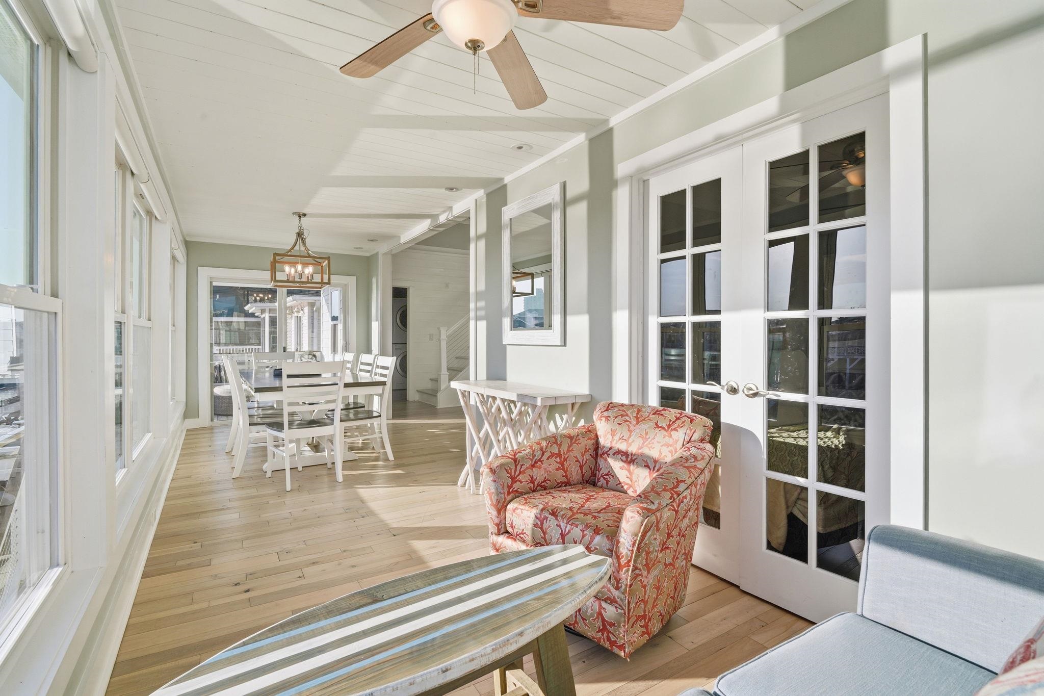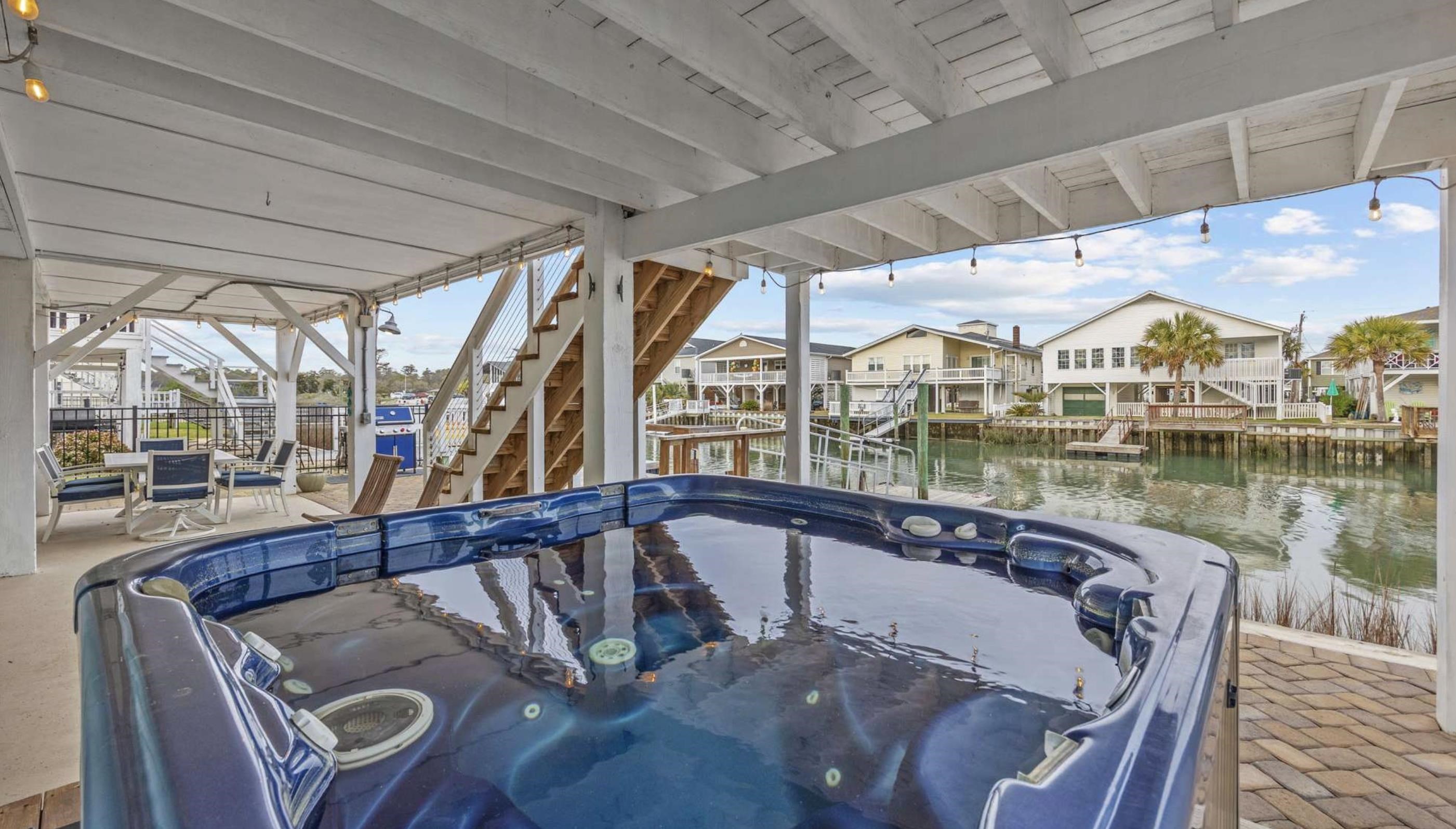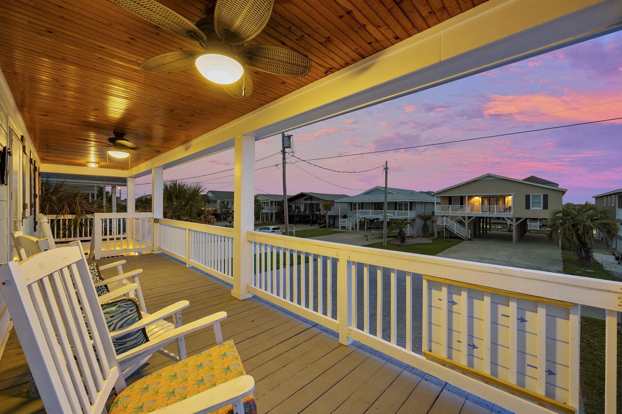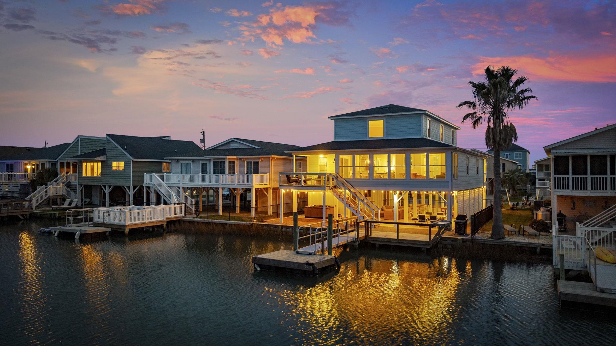 Experience the pinnacle of coastal living in this impeccably renovated 4-bedroom, 3.5-bath channel home in the heart of Cherry Grove. Reimagined from the studs up between late 2018 and 2019, this residence offers the rare peace of mind that comes with having all heated living space situated safely above the flood zone. Inside you'll find authentic hardwood floors, tongue-and-groove ceilings, and a modern aesthetic defined by contemporary cable railings and designer lighting. The chef’s kitchen is a focal point of the main level, featuring granite countertops, a classic subway tile backsplash, and custom cabinetry. Three of the four spacious bedrooms boast walk-in closets, while the bathrooms offer fully tiled showers and updated plumbing fixtures throughout. The renovation included a new seawall and a large oversized paver patio which you don't see often in Cherry Grove. The exterior features a new fence installed in 2023, a custom outdoor shower with composite decking, and professional stone landscaping. For those who need extra utility, the ground level provides a massive two-section workshop with built-in shelving and an additional finished storage room equipped with quartz countertops, sink, and a refrigerator. The perfect property for a Primary Residence, Home at the Beach, or a high-income producing Rental property, it is truly a gem in Cherry Grove with nothing quite like it!
