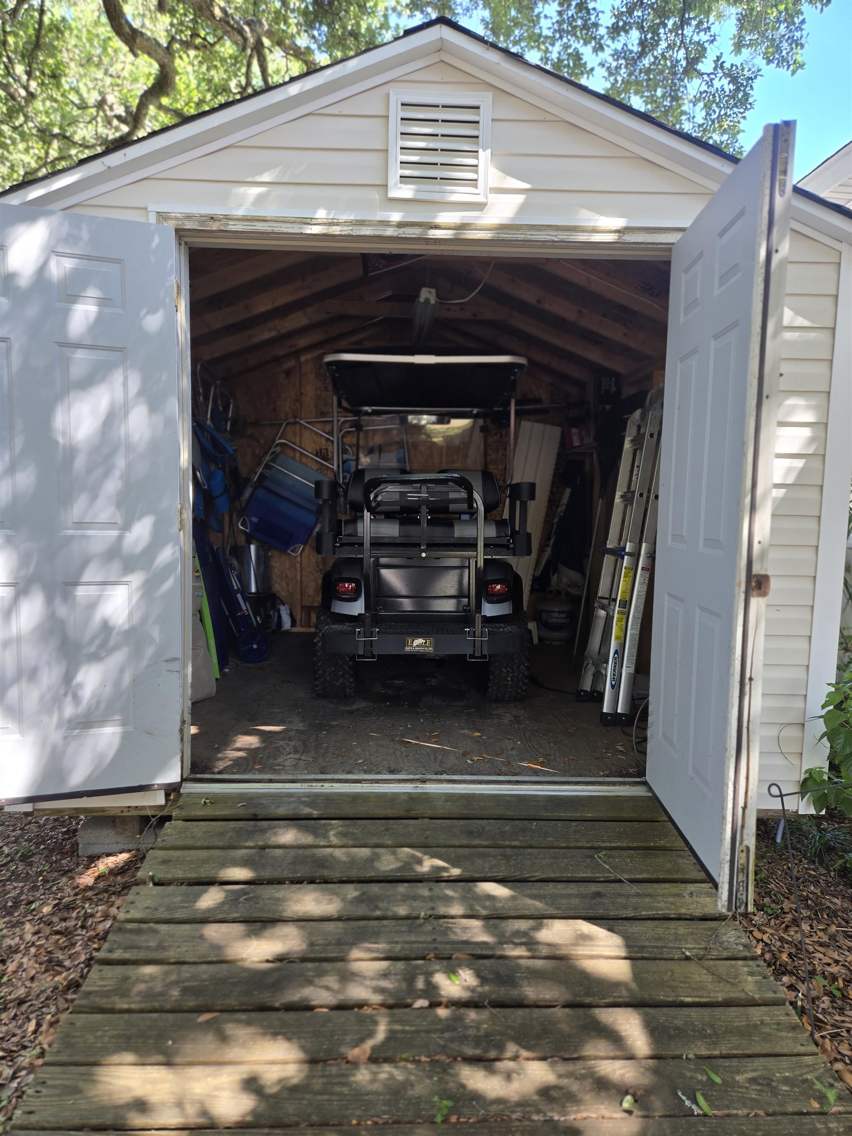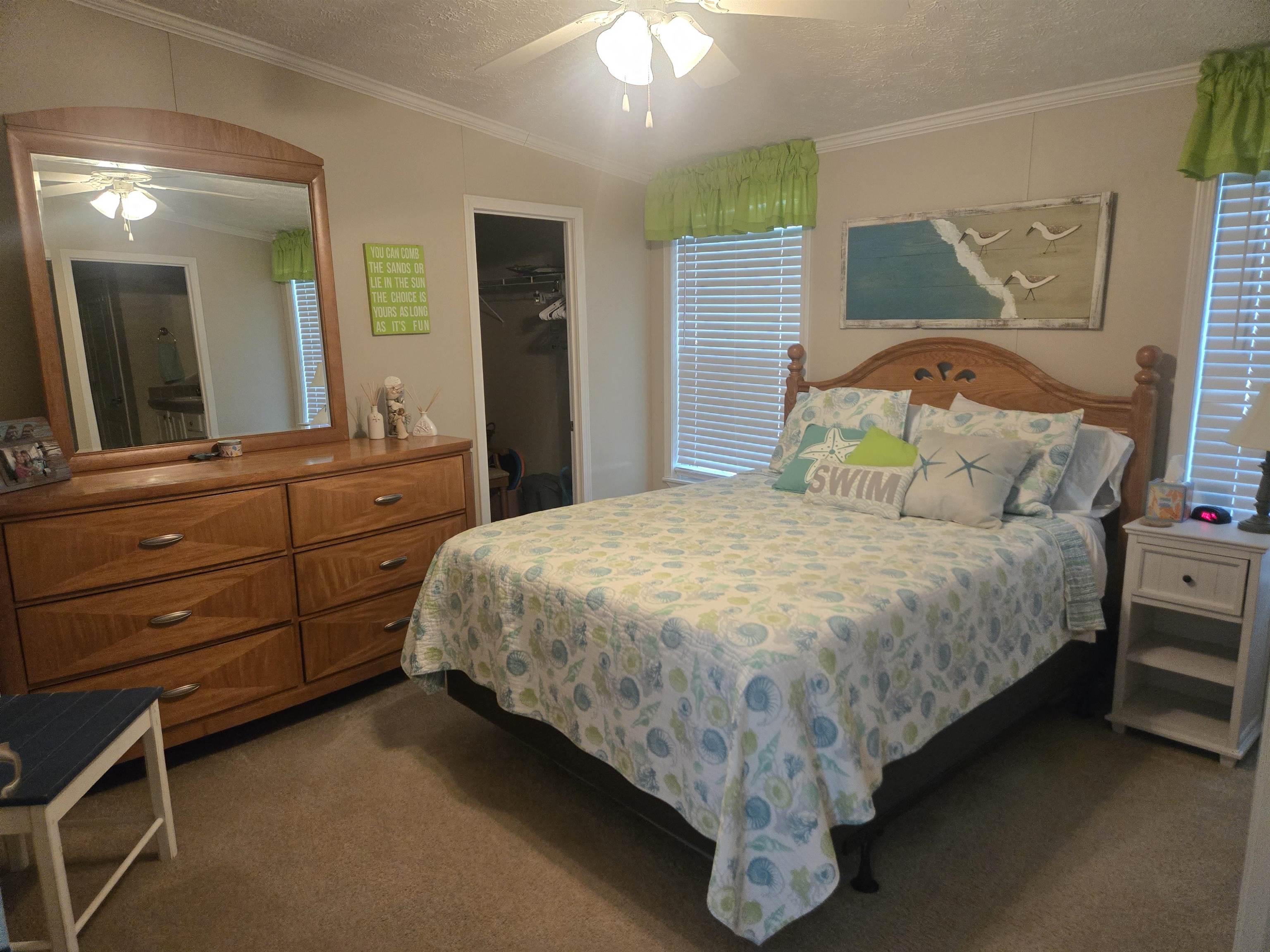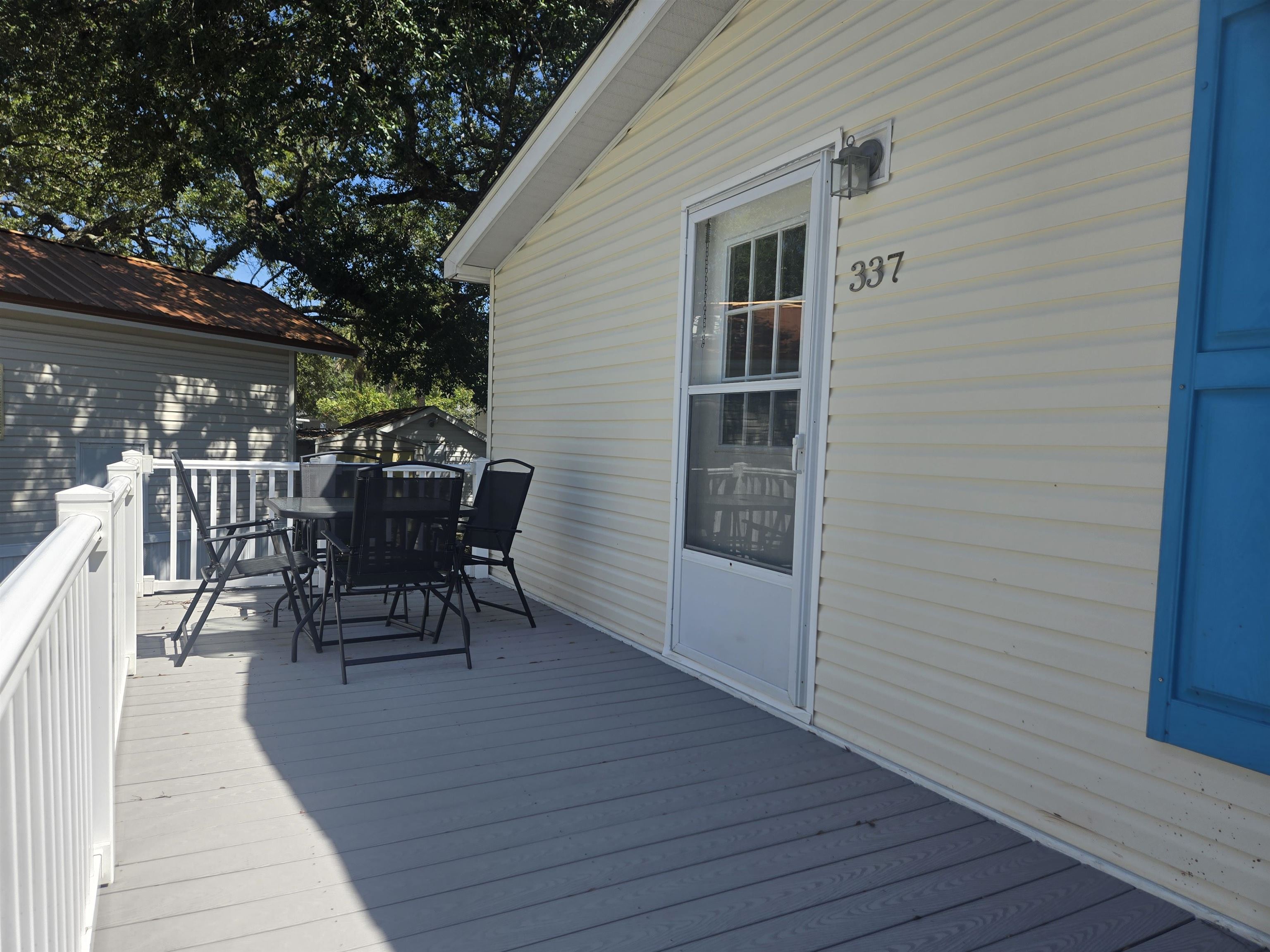 FULLY FURNISHED! This beautiful home is spacious and move in ready! Enjoy dinner time in your large eat in kitchen. All rooms are a nice size with ample space for entertaining. Home features a great outdoor deck and is located on a desirable corner lot. Home is within walking distance to the beach or a short golf cart ride. Golf cart is located in the detached shed next to the beautiful live oaks tree beside the home. Golf cart does not convey but is negotiable! Move in special going on now. Lease may be able to be paid monthly for the 1styear!