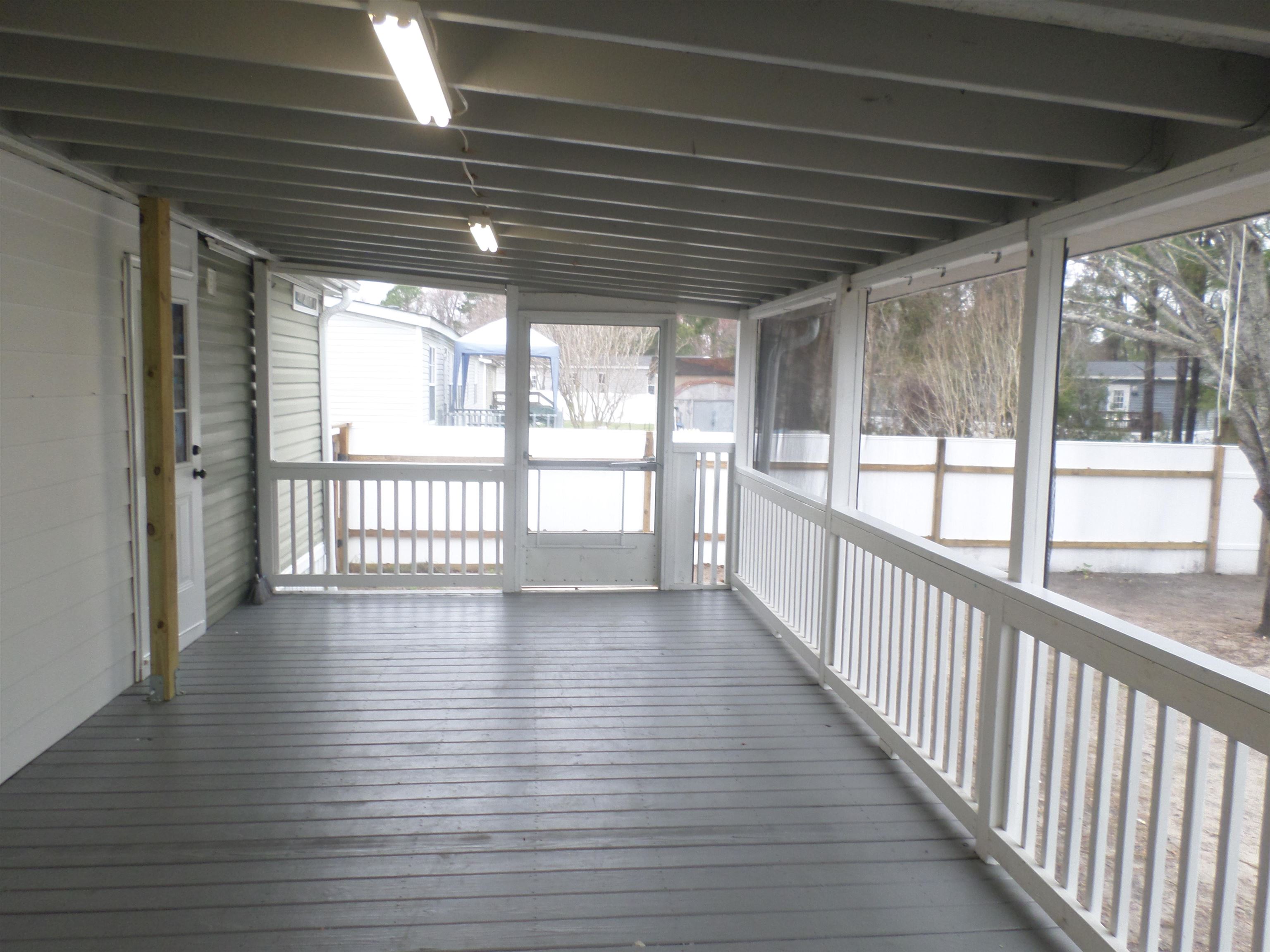 Lovely 3 bedroom 3 bath home with additional bonus room and office has been renovated throughout. The 2016 Scotbilt doublewide manufactured home is located in the desirable leased land community of Emerald Forest in the Carolina Forest area of Myrtle Beach, SC. The expansive home has unique features to include updated sheetrock interior, new luxury vinyl plank floor covering, new kitchen cabinets, marble kitchen countertops as well as a matching formica cupboard with farmhouse sink, decorative island lights, updated bathrooms and custom closets as well as recessed lighting. The 12' X 26' rear screened porch is perfect for relaxation or outdoor cookouts. The backyard is fenced with open access to the small pond where you can fish or enjoy the scenery. The concrete and rock driveway has plenty of park space for 4 cars or a utility trailer. A large 12'X14' storage building with power as well as a lean-to garage has been constructed in the backyard for additional cover parking. The home is ready for a new owner and only a 10-15 minutes to the beautiful Atlantic Ocean and minutes to the Tanger Outlets which allow for quick access to shopping and dining. Call for more details about the home, land leasing and to set up your private viewing.