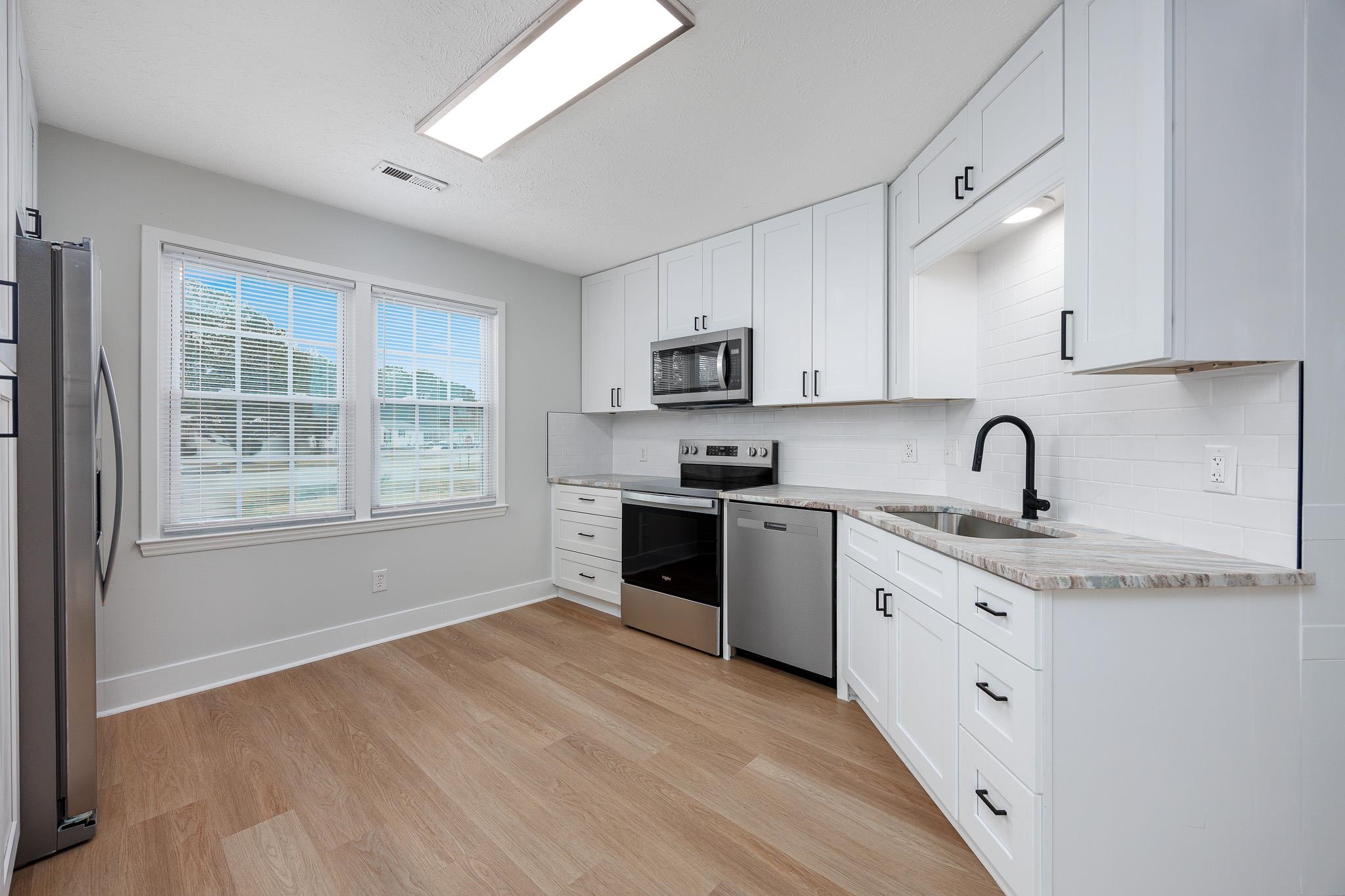 Fully renovated 3BR/2BA home in Whispering Pines – Forestbrook area – NO HOA and directly across from Arrowhead Country Club. This move-in ready home features a completely redesigned kitchen with brand-new cabinets, stainless steel appliances, and quartz countertops. LVP flooring runs throughout the entire home, creating a clean, modern feel. The vaulted living area showcases a beautiful exposed wood beam and a stunning fireplace centerpiece. Both bathrooms have been fully updated with impressive 24"x48" tiled showers for a sleek, upscale finish. Additional highlights include a brand-new roof, updated decks with stained wood railings, cedar shutters for added curb appeal, and a primary suite with private sliding door access to the back deck. The backyard also features a detached single-car garage currently used as a workshop. Just minutes from the beach, shopping, dining, and major roadways — this is turnkey living in one of Myrtle Beach’s most desirable areas.