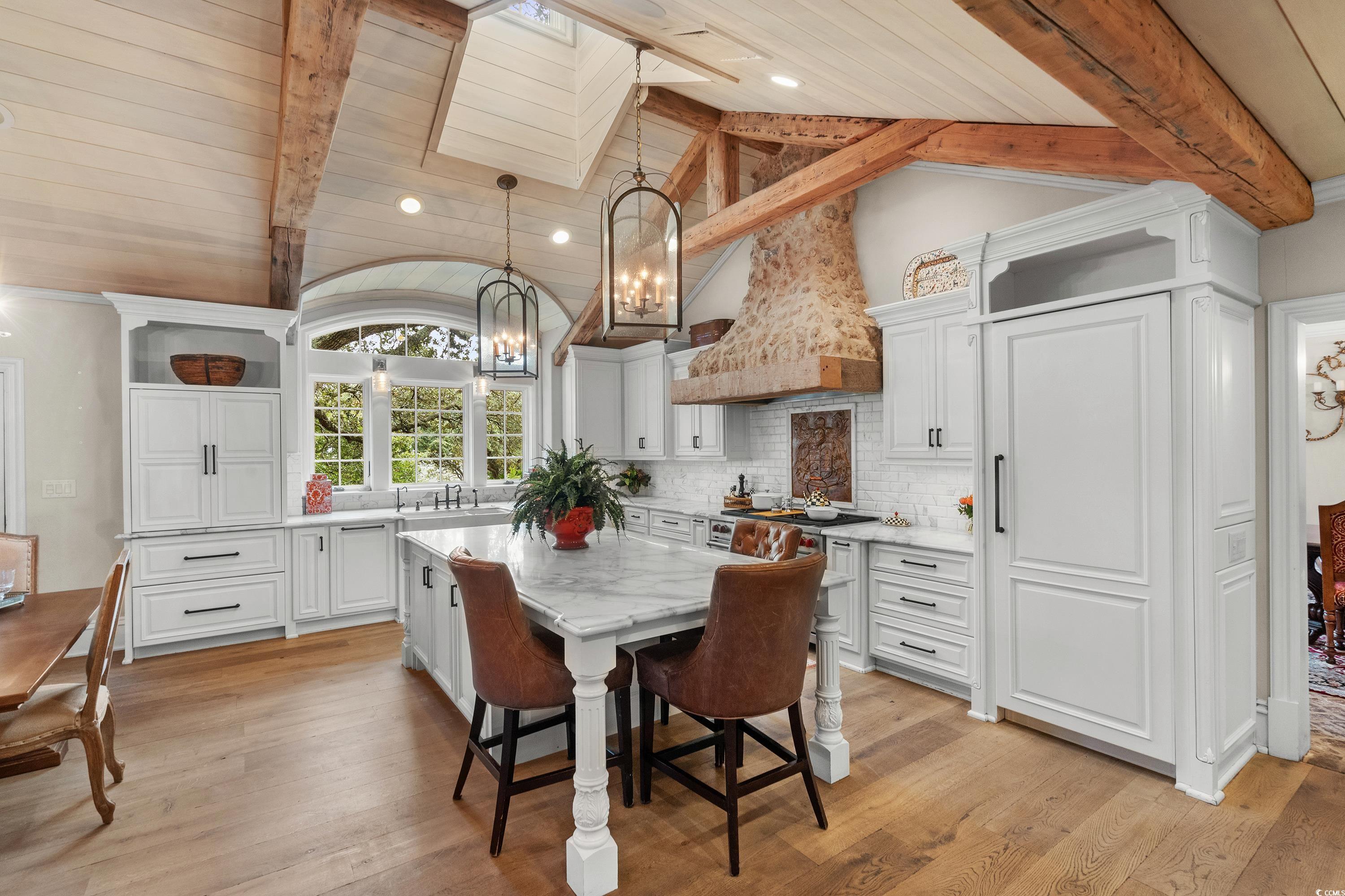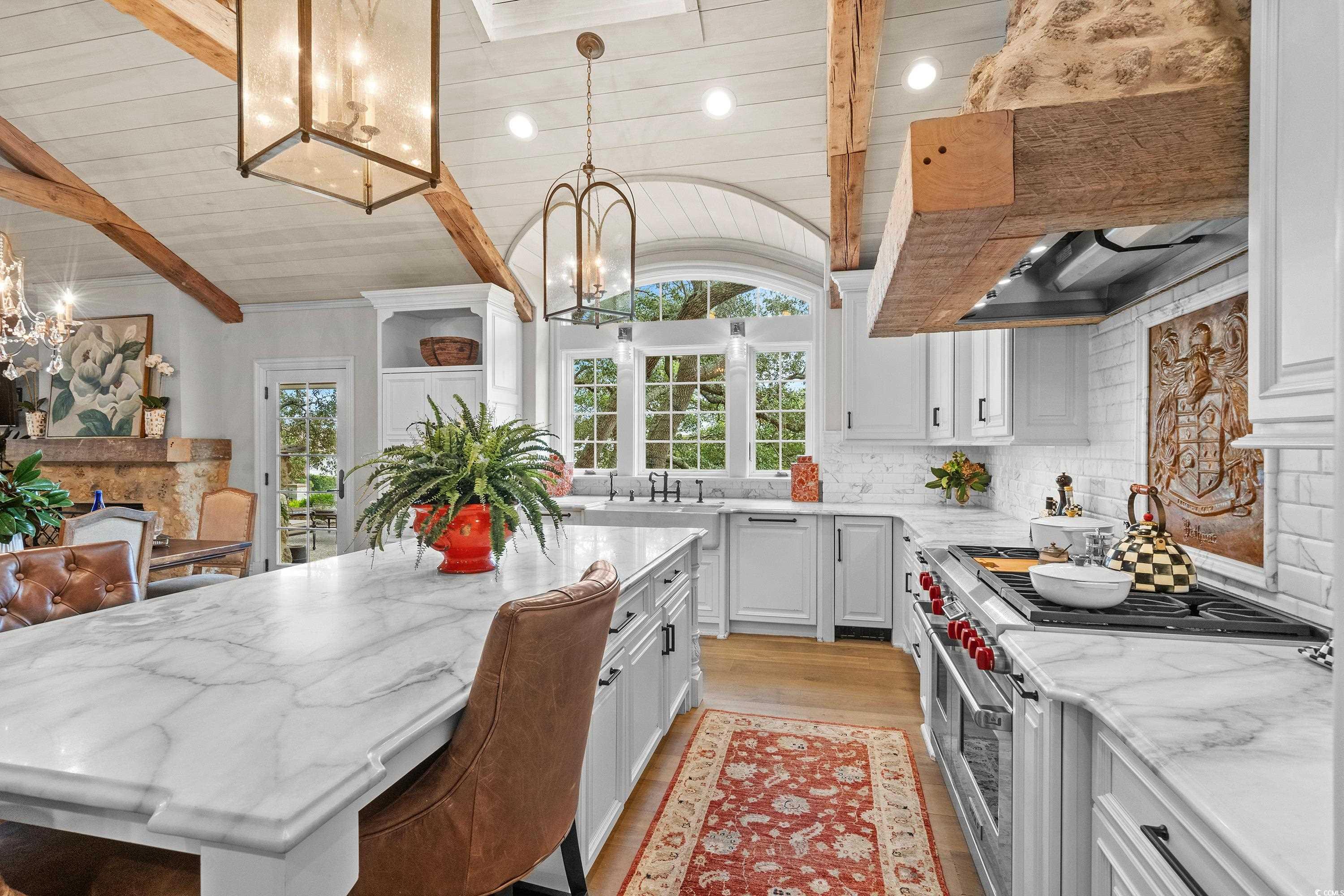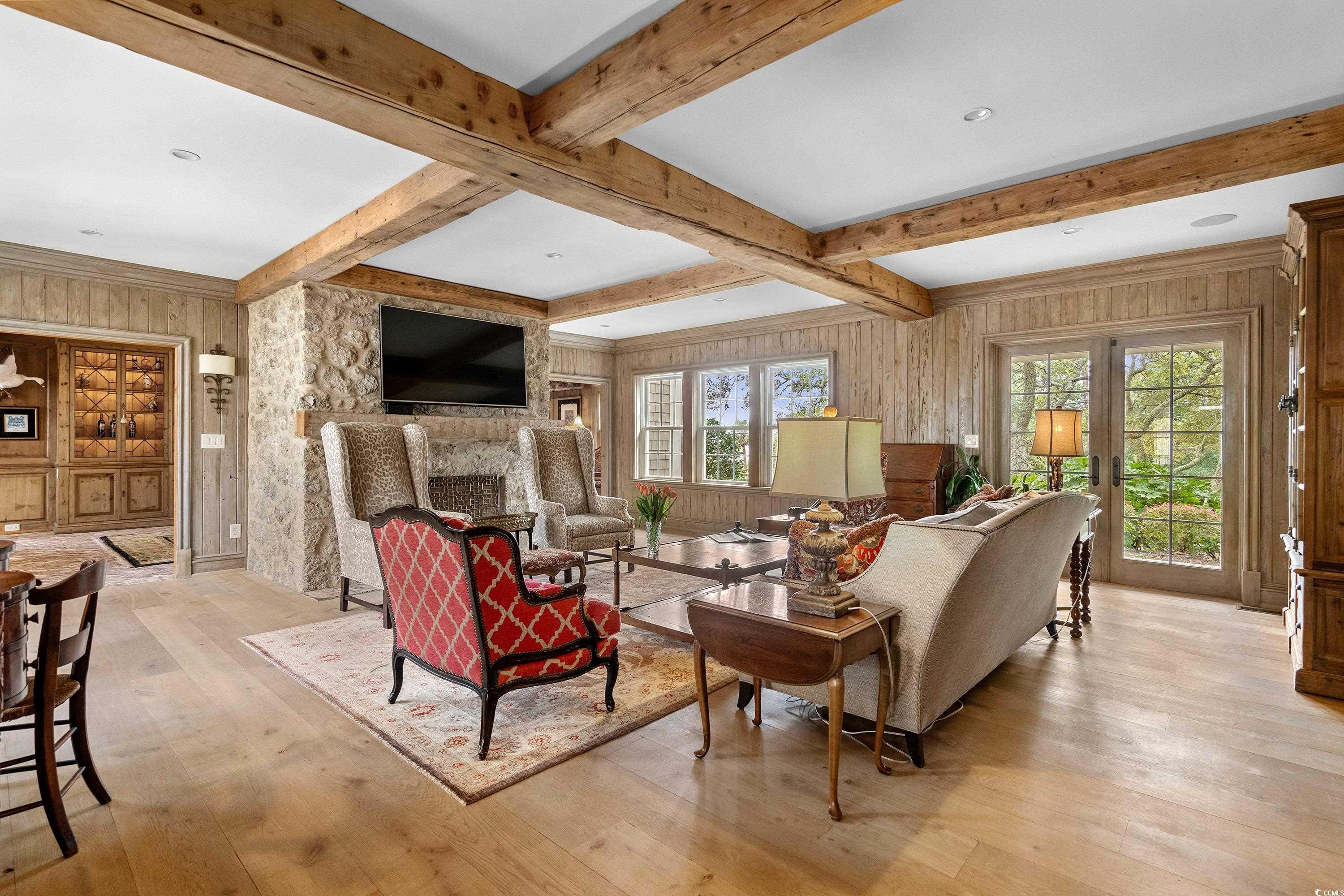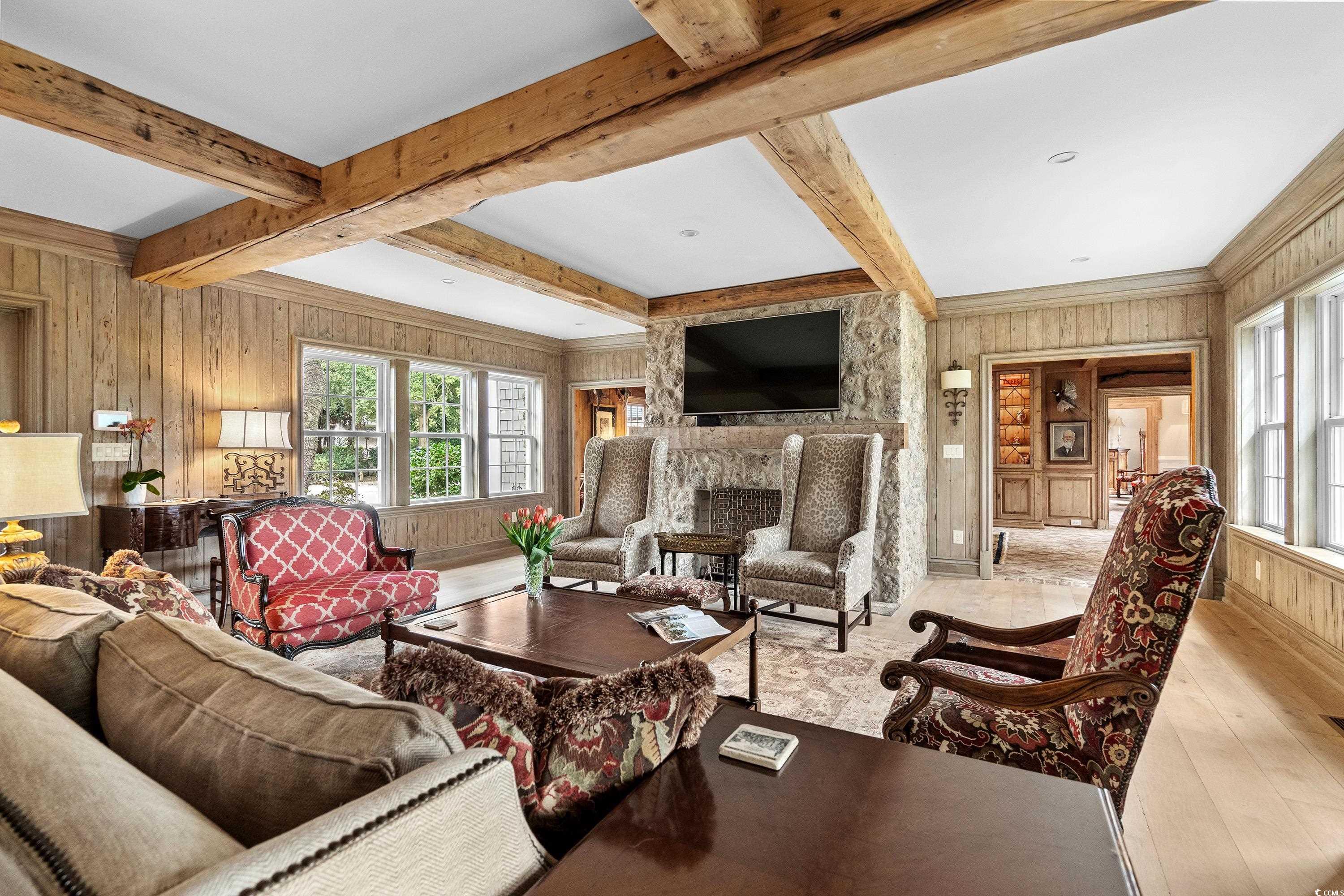 For 90 years this home has stood along the “Golden Mile” of Myrtle Beach as one of the most iconic residences in our area. Built in 1932 and completely renovated in 2015, the home is offered in its best revival of condition, elegance and beauty. The thoughtful redesign highlights exquisite custom millwork, antique hand-hewn beams and paneling, restored old Savannah brick and architectural details crafted from reclaimed coral and stone all add touches of warmth and history to the living spaces. Updates includes new windows, doors, HVAC, plumbing and electrical systems ensuring a move-in-ready experience while preserving the home’s timeless design. Situated on a sprawling homesite that is over an acre, this estate offers a main residence, a guest cottage and a stylish pool house. The 7,000’ main home with 5 bedrooms and 5 1/2 bathrooms is an entertainer's dream. All living areas are spacious and flow effortlessly. The chef's kitchen and butler's pantry make gatherings of friends and family easy. The elegant primary suite offers a fireplace and large ensuite bath and 3 closets. The second floor of the main home offers 3 bedrooms and 3 baths, a sitting room and tons of storage. In addition, to the main home is a private 1 bedroom guest cottage and a 1 bedroom pool house all offering living space which is ideal for guests and is perfect for multigenerational living. The outdoor spaces are equally impressive with an inviting pool, an al fresco kitchen, landscaped gardens and patios. Parking is never an issue with the two car garage , two large covered parking porticos and a paved drive. All of this is just steps from the ocean and one of the most beautiful stretches on beach on the entire Grand Strand. Many times it is said "this is a one of a kind home or real estate opportunity" and in this case it really is!