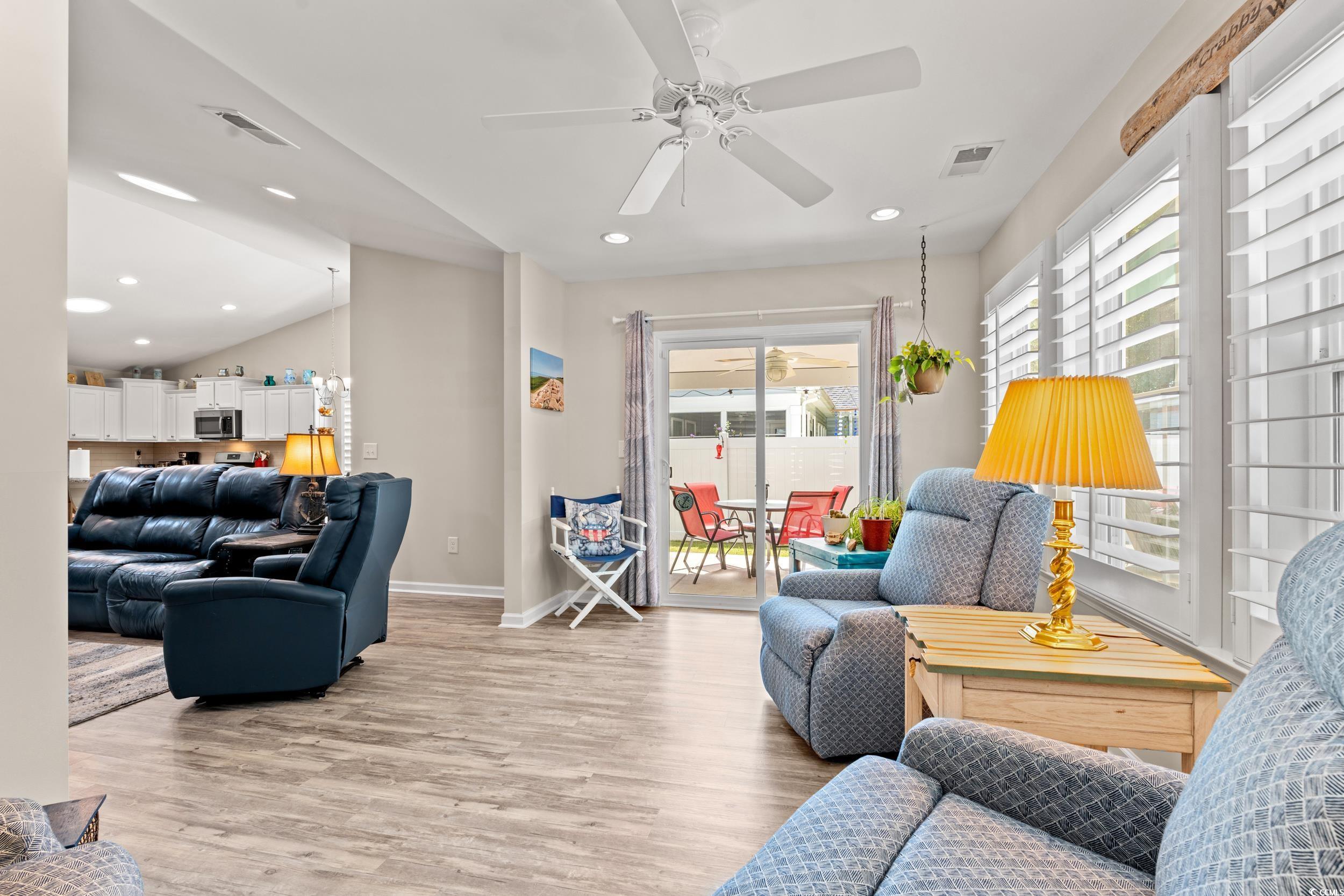 North Myrtle Beach Living --- Only home with direct access to the nature trails.. Beautifully upgraded home in the sought-after Park Pointe community, just minutes from North Myrtle Beach. The fully upgraded kitchen features stainless steel appliances, a natural gas stove, touchless faucet, and custom cabinetry with clever storage. The open living area offers skylights, plantation shutters, and a marble gas fireplace. The master suite includes a trayed ceiling, walk-in closet, and upgraded bath with tile flooring. Enjoy outdoor living with an outdoor entertainment area that allows for great gatherings, fenced backyard, stone pathways, and a whole-house generator. Smart home features include WiFi-enabled garage doors, thermostat, and tankless water heater. The epoxy-finished garage and widened driveway add function and style. Low HOA with pool, clubhouse, and friendly neighbors—coastal comfort and convenience at its best.