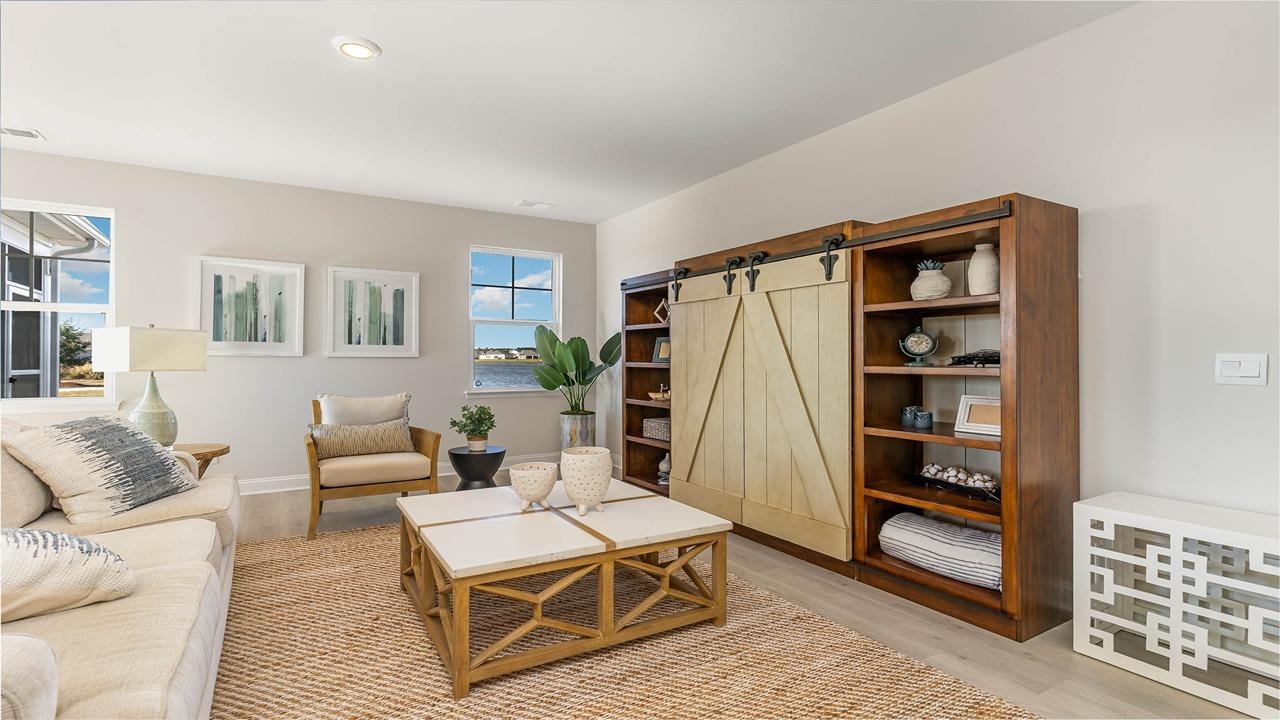 Incredible curb appeal with the stacked front porches and tall entry door. Once inside, numerous windows bring in fantastic natural light creating an inviting space. Off the entry is a spacious flex room. The large kitchen boasts quartz countertops, tile backsplash, an oversized island, stainless steel appliances including a refrigerator, a walk-in pantry, and a gorgeous Butler's pantry with tile backsplash. There is a spacious bedroom and full bathroom on the first floor, perfect for guests. Upstairs you will find the elegant owner's suite featuring a tray ceiling, a cozy sitting room, huge walk-in closet, and ensuite bath with large separate vanities, linen closet, and tile shower! There are 2 other bedrooms with a shared bathroom upstairs along with a large second living space or game room. You will appreciate the convenience of the walk up stairs to the unfinished attic. This is America's Smart Home! Each of our homes comes with an industry leading smart home technology package that will allow you to control the thermostat, front door light and lock, and video doorbell from your smartphone. *Photos are of a similar Harbor Oak home. Pictures, photographs, colors, features, and sizes are for illustration purposes only and will vary from the homes as built. Home and community information, including pricing, included features, terms, availability and amenities, are subject to change and prior sale at any time without notice or obligation. Square footage dimensions are approximate. Equal housing opportunity builder