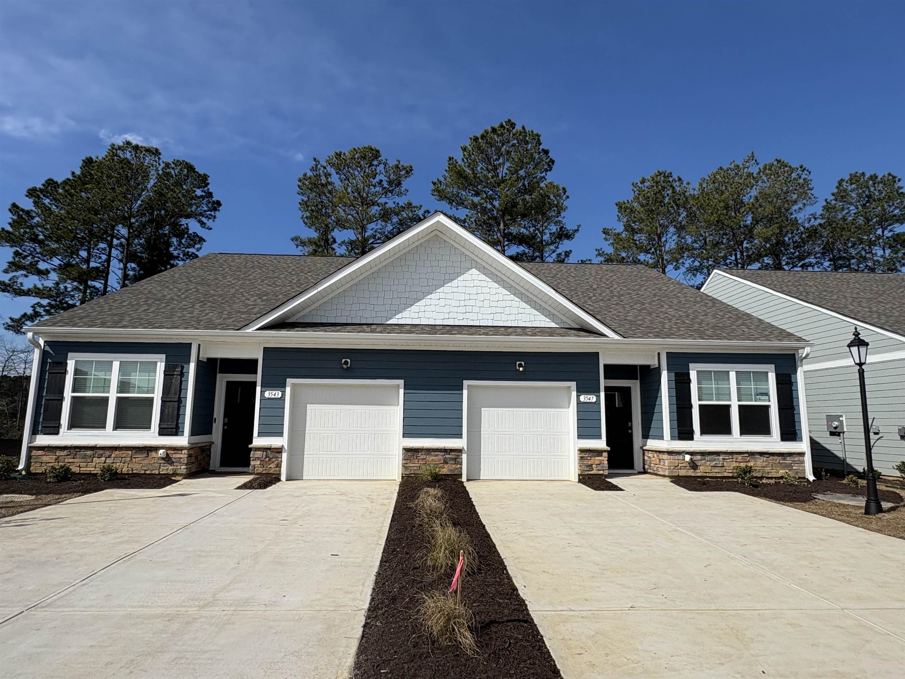 Welcome Brunswick Plantation! A gated community with 24 hours security, 27 hole Championship Golf Course on site (membership not included), 11,000 sq. ft. amenity center with meeting and activity rooms, fitness center, two pools (salted indoor and outdoor), indoor catering kitchen, outdoor grilling area, walk to restaurants onsite, multiple tennis and pickle ball courts. Close to shopping and dining in Calabash and the Myrtle Beach area in SC. Enjoy the laid back coastal lifestyle where all of your exterior maintenance is taken care of! A rare opportunity of a duplex being offered in Brunswick Plantation that also features an attached 1-car garage. Upon entry you are greeted with a very open layout. The split bedroom floor plan offers privacy when you have guests visiting you at the beach, along with functionality. The kitchen offers granite countertops, ample cabinets, a walk in pantry and stainless appliances including a refrigerator. A flex room with french doors is a perfect space for a home office, study or den. Enjoy the coastal air on the covered back porch for your morning coffee or at the end of the day. 2" faux wood blinds on standard windows. This is America's Smart Home! Ask an agent today about our industry leading smart home package that is standard in every home. *Photos are of a similar Belmont plan. (Home and community information, including pricing, included features, terms, availability and amenities, are subject to change prior to sale at any time without notice or obligation. Square footages are approximate. Pictures, photographs, colors, features, and sizes are for illustration purposes only and will vary from the homes as built. Equal housing opportunity builder.)