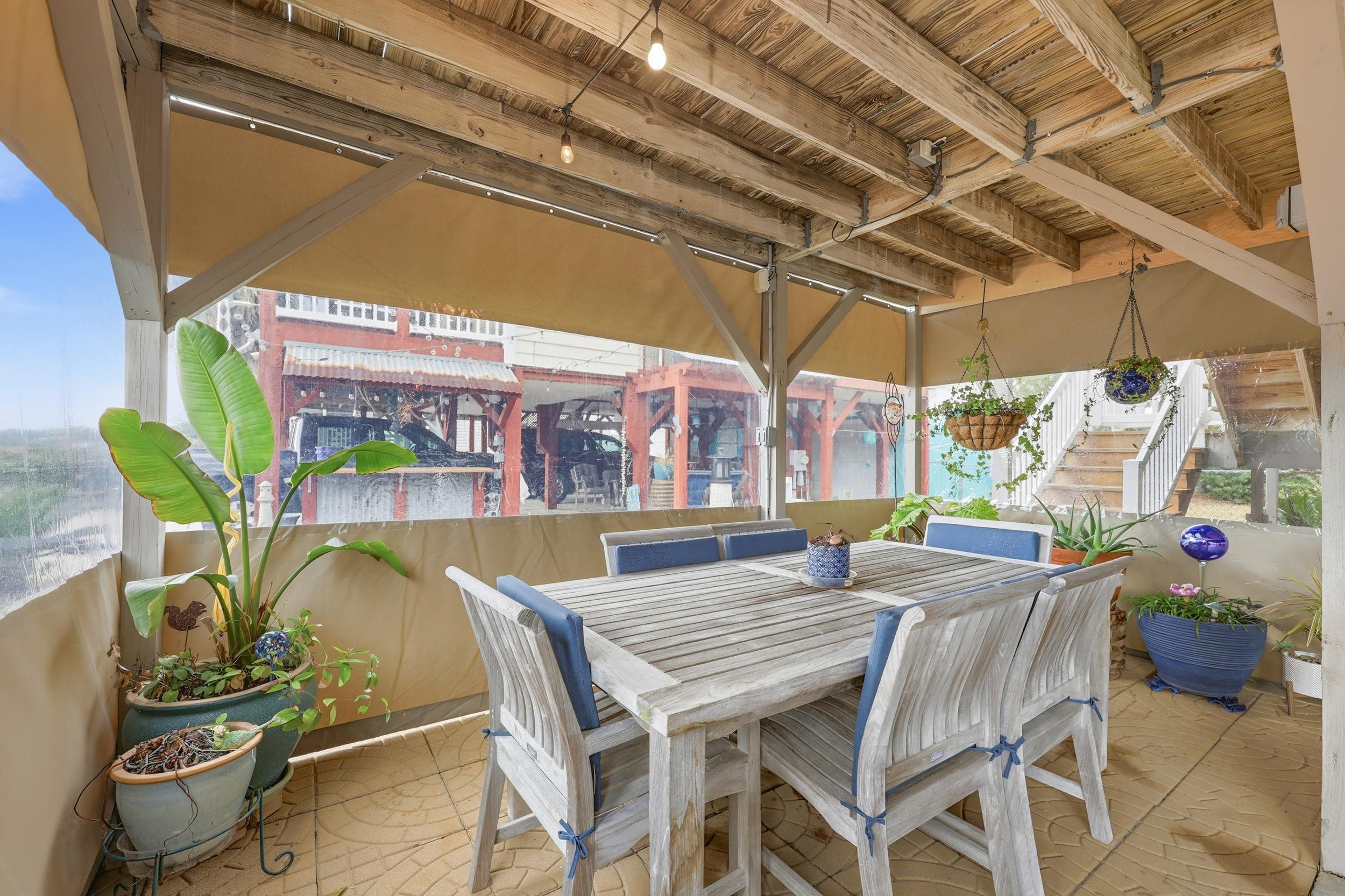Welcome to 404 29th Ave N, an immaculately maintained raised beach home located just three blocks from the ocean in the highly desirable Cherry Grove section of North Myrtle Beach. This property offers the perfect blend of coastal charm, thoughtful upgrades, and exceptional indoor and outdoor living spaces. The home immediately impresses with a spacious downstairs entertainment area, ideal for year-round enjoyment. Screens can be enclosed during cooler months to capture warmth from the fireplace or opened in the summer to enjoy coastal breezes and outdoor entertaining. The oversized two-car garage provides ample space for vehicles or a golf cart and includes a dedicated workshop area with abundant storage. The outdoor setting is equally impressive, featuring lush landscaping, a fenced-in backyard, and a full outdoor bathroom and shower. A granite fish-cleaning station adds convenience for beach and boating enthusiasts. On the second level, relax on the screened front porch while taking in beautiful views and a peaceful coastal atmosphere. Inside, the home showcases high vaulted ceilings, abundant natural light, upgrade showers in both bathrooms and a spacious, updated kitchen with generous cabinetry and countertop space. Two bedrooms and a full bathroom are located on the main living level, while the upper level offers two additional bedrooms connected by a Jack-and-Jill bathroom. Recent improvements include brand-new windows, sliding doors, garage doors, upgraded kitchen finishes, and newly constructed porches and decks, all completed within the last few years. The home is being sold fully furnished, making it truly turnkey. Ideally suited as a primary residence, second home, or income-producing investment, this property is within walking distance or a short golf cart ride to the beach, Boulineau’s, local restaurants, mini golf, and just minutes from Main Street. A rare opportunity to own a beautifully upgraded home in one of Cherry Grove’s most sought-after locations.