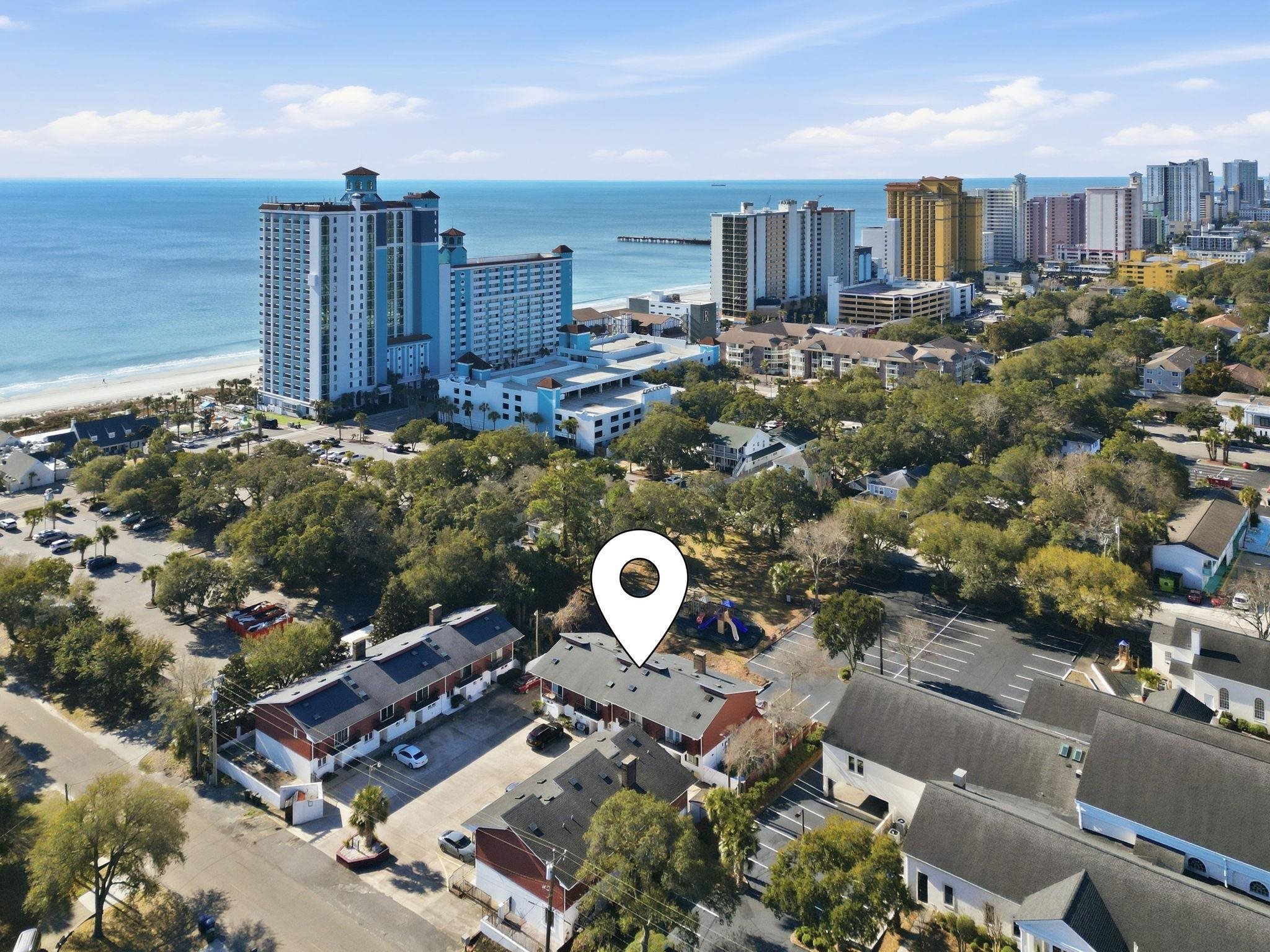 A block from the beach and NO HOA! Golf cart, motorcycle, and pet friendly. Also, short-term rentals allowed! This 3 bedroom, 3 full bath townhome in Myrtle Beach offers incredibly close proximity to the beach, less than a quarter of a mile, and a Grand Strand seafood favorite: The Sea Captain's house! Features include: spacious floor plan, laundry room, 1st floor full bath close to the front door for easy rinsing after sandy beach walks, two parking spaces, large back patio enclosed with privacy fence, new water heater, updated kitchen and primary bath, two step-in showers, skylights, and a decorative fireplace. There are only 11 townhomes in this smaller, quaint development that sits right at the border between downtown Myrtle Beach's vacation highlights and its slower paced residential sections. Don't hesitate! Make an appointment today. Not in town' Request a link to the 3D tour.